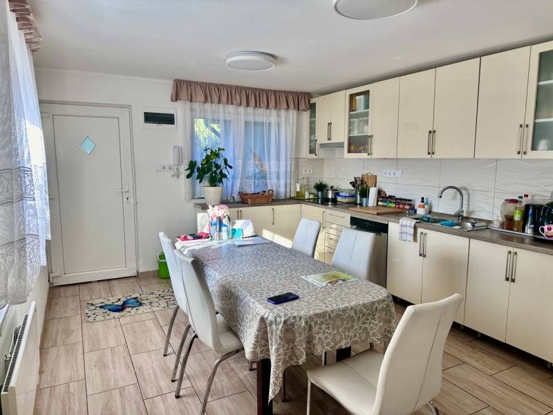 HALÁSZTELEK CSENDES RÉSZÉN, 2 GENERÁCIÓS, VÁLLALKOZÁSRA IS ALKALMAS CSALÁDI HÁZ!Az ingatlan akár 3 gyermekre igényelhető CSOK+-ra is alkalmas!A telek, sarkon helyezkedik el, így a 2 generáció, 2 külön bejáraton közelítheti meg saját lakrészét.Az első lakrészbe belépve egy tágas, beépített konyhabútoros konyha étkezővel fogad minket! Innen nyílik egy wc ami háztartási helyiségként is funkciónál, itt található a mosógép, valamint egy korszerű bojler is. Ebből a helyiségből tudunk felmenni a felső szintre. Az emeletre felérve, egy kis nappaliba érkezünk, ahonnan nyílik egy tágas, káddal ellátott fürdőszoba, valamint 2 szoba és egy kis közlekedő. A kisebb szobából egy erkélyre is kiléphetünk.A második lakrészbe, egy 17.5m2-es teraszról lépünk be, ahol egy nappali+konyha fogad bennünket. Innen tovább haladva, egy kádas, fürdőszoba+wc található, az utolsó helyiség pedig a hálószoba.A szuterénben jelenleg is működő tortaműhely üzemel, mely 24 m2 és egy zuhanyzós wc helyiség is helyet kapott itt.A ház fűtése jelenleg teljesen elektromos. A hűtésről, a ház több pontára beszerelt klímák gondoskodnak!Az ingatlan 2018-ban nagy felújításon esett át, mint víz és villanyvezetékek cseréje, átalakítás, valamint ekkor, 15 cm vastag hungarocell szigetelést is kapott! A nyílászárok műanyagok.A tulajdonosok, a házat részben bútorozottan szeretnék eladásra kínálni!Az ingatlan tehermentes, valamint 1/1 tulajdonnal rendelkezik! A környéken, minden könnyen elérhető, séta távolságra van. Több kisbolt, cukrászda, étterem, valamint óvoda, iskola és buszmegálló is van.Amennyiben felkeltettem érdeklődését keressen bizalommal, akár hétvégén is!FINANSZÍROZÁS:Nálunk mindent egy helyen intézhet:- hivatalos ingatlanközvetítés;- szakszerű jogi képviselet;- profi CSOK-PLUSZ, és hitelügyintézés: 16 Bank, több mint 100 konstrukció;VÁROM MEGTISZTELŐ HÍVÁSÁT!A részletes adatvédelmi tájékoztató folyamatosan elérhető az oldalon.