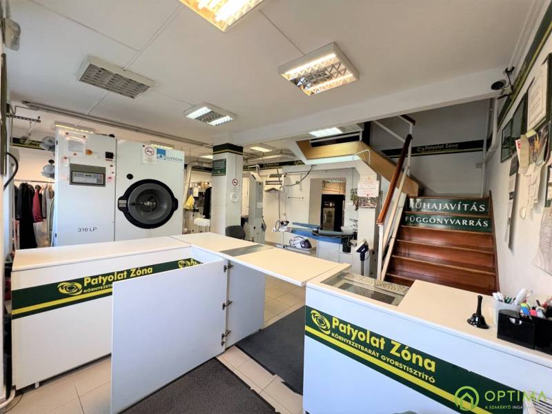 160 m2-ES, UTCAI BEJÁRATOS ÜZLETHELYISÉG / IRODAA VIII. kerületben, a II. János Pál pápa téren kínálom megvételre ezt a 160 m2 alapterületű üzlethelyiséget/irodát. Az ingatlan belső kétszintes, a bejárata közvetlenül az utcáról nyílik. Az üzlethelyiség 8 éve TELJES KÖRŰ FELÚJÍTÁSON esett át, mely magában foglalta az elektromos hálózat, a vízvezetékek, valamint a fűtésrendszer korszerűsítését is.A földszinten három nagyobb helyiség található, valamint egy raktár, egy öltöző és egy zuhanyzós fürdőszoba. A lépcsőfordulóban helyezkedik el egy plusz, közel 16 m2 alapterületű raktár. Az emelet is három különnyíló helyiségből áll, itt két iroda, valamint egy teakonyha került kialakításra. Az ingatlan a közelmúltban mosó-, vegytisztító szalonként üzemelt. Kiválóan alkalmas akár a tevékenység folytatására is. A képeken látható gépek jó állapotúak, melyek a mosó-, vegytisztításhoz szükségesek, ezek igény esetén alku tárgyát képezhetik. Az ingatlan kiválóan alkalmas bármilyen IRODAI TEVÉKENYSÉG ellátására, de akár KERESKEDELMI CÉLRA is jól használható. AKÁR SAJÁT VÁLLALKOZÁSA SZÁMÁRA, AKÁR BEFEKTETÉSI CÉLLAL KERES ÜZLETI INGATLANT, HÍVJON ÉS NÉZZE MEG EZT A KIVÁLÓ BELVÁROSI LEHETŐSÉGET!