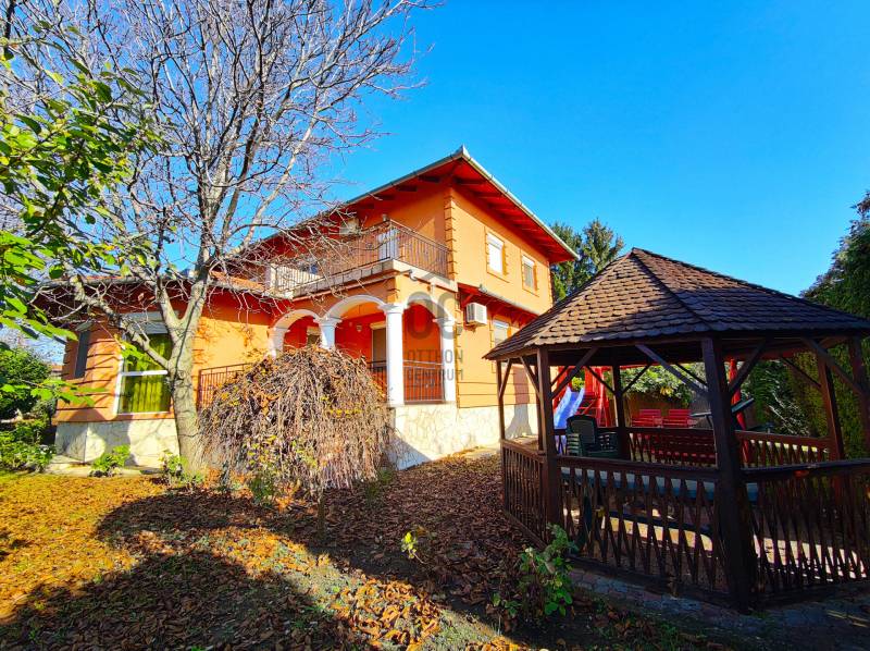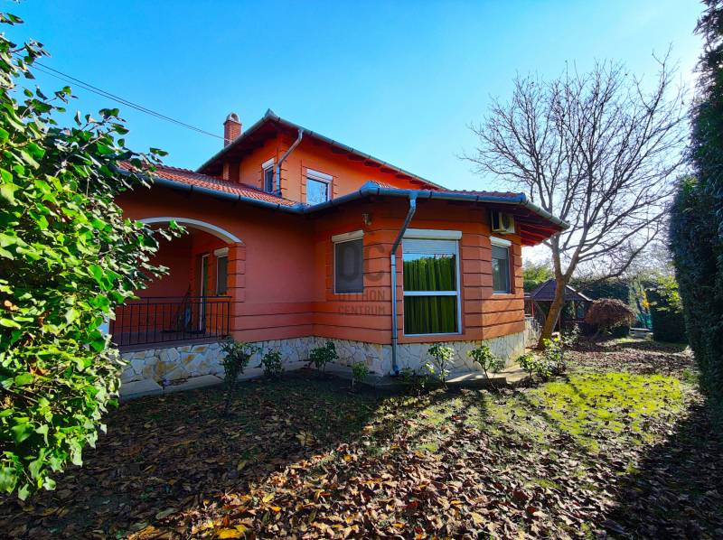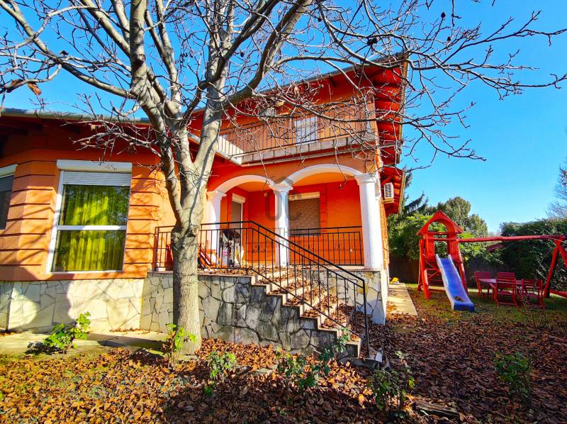 Eladó Érd Fenyves-Parkváros egyik csöndes utcájában egy 267 m2-es családi ház 1108 m2-es telekkel!Az ingatlan 2005-ben épült két szintes, duplakomfortos, tégla épület. Az alsó szinten található a konyha étkezővel, kamra, wc, szoba és egy tágas nappali, amely egész nap világos köszönhetően nagy méretű hőszigetelt ablakainak. Ezeken az ablakokon kitekintve a kertet láthatjuk, ahol minden megtalálható, hogy a család otthon is kikapcsolódhasson. Találunk itt 2 teraszt, kerti sütögetőt, filagóriát valamint a gyerekek számára kialakított játszóteret is.A felső szinten 3 szoba, társalgó, fürdő és terasz került kialakításra.Az alsó szintet van egy 2 beállós garázs is, de az udvarban elfér meg legalább 3 gépkocsi.Az épület fűtését egy gáz-cirkó kazán látja el. Arról, hogy a meleg a házban maradjon a külső hőszigetelés, valamint a hő és hangszigetelt ablakok gondoskodnak.A ház teljes egészében légkondicionált.Itt mindenki megtalálhatja a számára legszimpatikusabb szobát és még a nagymamának is jut egy szabad szoba, ha megérkezik egy hosszú hétvégére!Mivel a ház 2005-ben épült, így biztosan nem vesz zsákbamacskát, nem lesznek rejtett hibák, kellemetlen meglepetések!Kifejezetten ajánlom nagycsaládosoknak. De ha valaki szeretné felszínre hozni a benne szunnyadó megastar-t, neki segítségére lehet a rádóival felszerelt zuhanykabin! :-)Szóval ne késlekedjen mert lemarad!
