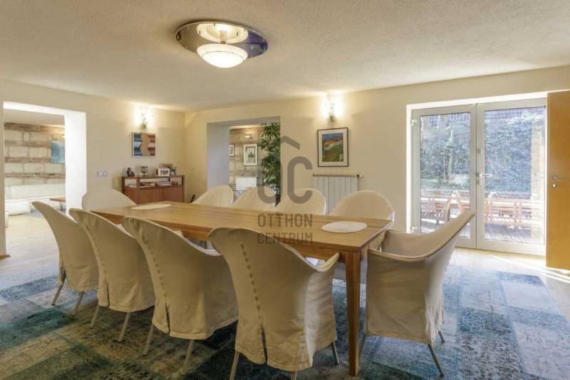 II. kerületben 10 perc autóútra a Mammut Plázától és az Angol Iskolától 3 perc autó útra Eladó ez a modern, fiatalos, 3 szintes családi ház.A házat jelenleg megbízható bérlő lakja még másfél évig, addig tart a bérleti szerződést, így jelenleg bérlővel együtt eladó. Több mint 4 ezer euro/ hó a bérleti díj!A ház egy 1062 nm-es telken fekszik, ősfás, erdős terület mellett. Az utca nagyon rendezett és ápolt, köszönhető az utcában lévő lakóknak, illetve a helyi önkormányzatnak, akik mindig elvégzik az évszakban megfelelő szépítő munkálatokat ( hólapátolás,csúszásmentesítés, fa levél söprés, fák metszése).A 640-nm-es házban minden megtalálható, ami egy vagy több generáció igényeit is kielégíti 2 nappali, és 7 hálószoba, kondi szoba, 75 nm-es fedett medence tér, szauna, gőzkabin, 4 fürdőszoba, boros pince, több nagyobb terasz, köztük fedett is, mosókonyhák.Ingatlant nagy terek jellemzik, valamint az öntözőrendszerrel ellátott szép nagy zöld kertben , míg ön grillezik, addig gyermekeire is tud figyelni miközben ők épp fogócskáznak, fociznak, illetve a kutyával vagy macskával játszanak.A 83 nm-es nappali különlegessége még a nappaliban található fenyőfa, ami keresztül megy az egész házon és az udvaron találkozhatunk a fa utolsó 2/3 -ával.3 fedett és 2 nyitott autóbeálló is van. A környék nagyon biztonságos ennek ellenére riasztórendszer és kamerarendszer is megtalálható.Minőségi berendezések vannak Artemide lámpák, Philippe Starck csapok, szaniterek, designer bútorok.Ajánlom nagy családosoknak, több generációnak, illetve cégeknek is iroda központnak.Részletek és megtekintés miatt várom megkeresését hétköznap és szombaton is!