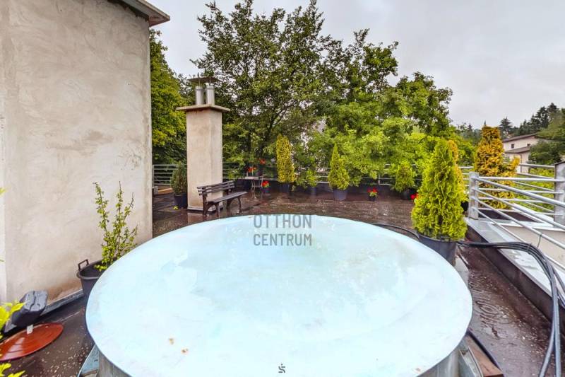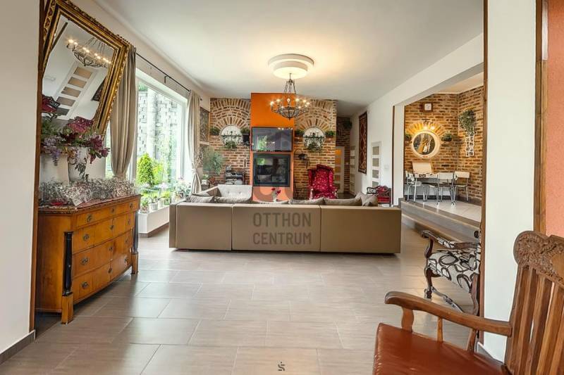 Eladó egy kétgenerációs családi ház, mely két család intim együttélésére kivállóan alkalmas.Érd, egyik legnívósabb illetve legdinamikusabban épülő helyén a Parkvárosban, eladásra kínálunk egy 10 éve épült, többgenerációs építésű családiházat. Az ingatlan meghitt hangulatát fokozza az őt körülvevő erdő és mediterrán jellegű növényzet, ahol több közismert személyiségnek illetve közszereplőnek is található az otthona. Továbbá a dinamikusan fejlődő rész annak köszönhető, hogy számos nagy villa, illetve projekt épülőben a környéken.A házról:Az előtérből, a család minden kényelmi igényét biztosító nagy nappali-étkezőbe érkezünk, amelyből az összes további szoba nyílik.A konyha, két lépcsőfoknak megfelelő szintkülönbséggel magasabban helyezkedik el.A reggeli ébredést követően, kávéját a közvetlen kertbe kilépve, virágok és a zöld gyep környezetében fogyaszthatja el.A hálószoba, a nagyméretű nyílászáróknak köszönhetően rendkívül világos.A háló szomszédságában van egy külön WC és kézmosó, szemben egy zuhanyzós fürdőszoba,valamint egy gardrób.A felső szintet egy külső lépcsőn közelíthetjük meg, ahol egy teljes nappali plusz 2 db. hálószoba, fürdőszoba - teljes lakószint került kialakításra, nagy terasszal. Ennek köszönhetően, akár két generáció is élhet nyugodtan egymás közelében, zavartalanul. Ennek a szintnek a kilátásra a zöld fenyvesekre nyíló panoráma. Az udvaron, egy nagy Tároló vagy (esetleg wellness helység), illetve 2 férőhelyes fedett kocsibeálló lett kialakítva, melynek tetején egy hangulatos tetőkert esetleg napozóterasz található,A háznak is van egy óriási tetőterasza az erdő ölelésében, csodálatos zöld panoráma, medence, sütögető és nyugalom várja a pihenni kívánó családtagokat és barátaikat.A ház mögöt teraszos telek található szintén remek kilátással a völgyre, amelyen a kertet tovább lehet bővíteni, alakítani. A ház intim az utcáról minimálisan lehet belátni.A ház jelenleg befejezésre vár, ugyanis a szigetelése megtörtént viszont a szín kiválasztása a leendő tulajdonosra vár.hívó szavak: zöldre nyíló panoráma, kertesház, nyugalom, kétgenerációs ház, frisslevegő, intim környezet.