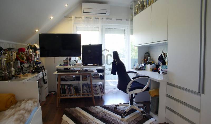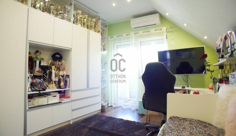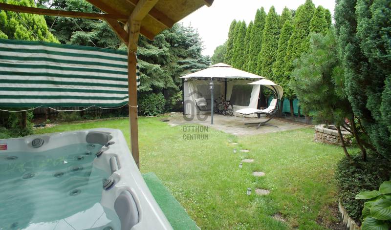 Örömmel mutatjuk be Önnek ezt a csodálatos, igazi otthonnak nevezhető családi házat, amely minden igényt kielégít. Ez a lenyűgöző ingatlan rendkívül tágas és kényelmes, tökéletesen alkalmas egy család számára. Engedje meg, hogy bemutassuk a helyiségeket és a különleges jellemzőket.Belépve az otthonba, azonnal át fogja érezni a kellemes légkört. A földszinten található a tágas nappali, ahol a család összegyűlhet együtt töltött időre. Az amerikai konyha modern és elegáns, és lehetővé teszi, hogy a főzés közben is közel maradjon a családjához és barátaihoz. Ezen a szinten továbbá egy hálószoba, egy konditerem, valamint egy zuhanyzós fürdőszoba és kamra található, ahol kényelmesen tárolhatja a háztartási eszközöket. A terasz, melyen egy nagyméretű jakuzzi található, ideális hely a pihenésre és a kikapcsolódásra.Az emeleten további négy hálószoba található, amelyek biztosítják a családtagok privát szféráját. Az emeleten továbbá egy fürdőszoba és két erkély is helyet kapott. A hálószobákban kialakított klíma biztosítja a kellemes hőmérsékletet, amelyhez a cirkófűtés is hozzájárul a hidegebb napokon. Szintén az emeleten található egy szauna, amely tökéletes lehetőséget kínál a test és a lélek felfrissítésére és ellazítására.Az ingatlan további előnyeit tekintve, érdemes megemlíteni a modern ház elektromos felszereltségét. Az 3 fázisú áram lehetővé teszi az elektromos autó töltését, amely környezetbarát megoldás a közlekedésre. A kertben öntözőrendszer található, amely megkönnyíti a növények gondozását, valamint fúrt kút áll rendelkezésre a locsoláshoz.A parkolási lehetőségekről sem feledkeztünk meg. Az ingatlanhoz tartozik egy három autónak elegendő beálló, azonban igény esetén van lehetőség garázs kialakítására is.A környék is rendkívül előnyös, hiszen közelben találhatóak bevásárlási lehetőségek, így kényelmesen és könnyedén beszerezhet mindent, amire szüksége van.Ha további információra van szüksége, vagy szeretné személyesen is megnézni az ingatlant, készséggel állunk rendelkezésére.