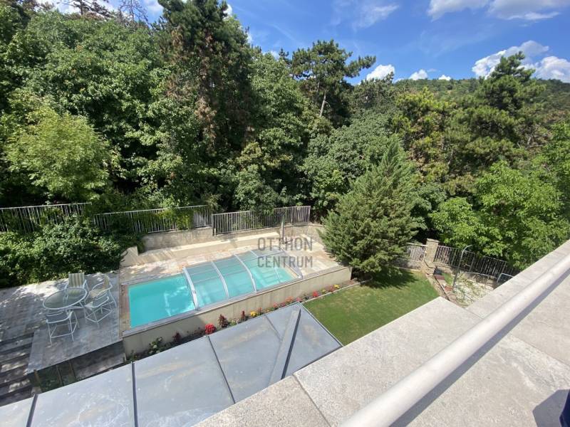 Megvételre kínálok a 2. kerület Pálvölgyben DUNAI PANORÁMÁVAL egy 2004 -ben épült, nettó 578 nm, 8 szobás családi házat, mely összesen 5 szinten helyezkedik el! A szintek közötti átjárást jelentősen megkönnyíti, hogy a házban egy 4 személyes lift is üzemel! Az ingatlan 3 helyrajzi számon található és akár 3 lakássá is alakítható. Ekkor a szintek közötti mozgás a lift programozásával, egy kulcskártyával megoldható lehet!Az ingatlan 745 nm gyönyörűen parkosított és gondozott telken fekszikk közvetlenül a Pilisi Parkerdő mellett.A ház 4 terasszal rendelkezik, melyek összterülete 130 nm. Három nagy teraszról valamint a tágas nappali étkezőjéből is gyönyörködhetünk az elvehetetlen panorámában! Parkolni a pinceszinten lévő garázsban lehet, mely jelenleg 3 autó befogadását teszi lehetővé, de ez akár bővíthető még 2 gépjármű befogadására.A környék rendkivül biztonságos, a 2. kerület egy presztizs környékén, erdő szélén, intim környezetben helyezkedik el. Ház jellemzői:- nettó 578 nm, 5 szint, 8 szoba, - 745 nm INTIM TELEK, - a házban LIFT üzemel, - kültéri MEDENCE ( 10m x 3m) sóbontó készülékkel, - a ház 3 lakássá alakítható (3 helyrajzi számon), - több generáció együttélésére is alkalmas,- két utcai bejárat,- DUNAI PANORÁMA,- összesen 130 nm terasz (60, 30, 25, 15 nm), - 3 szinten panorámás teraszok, - 285 cm belmagasság,- gázkazán (kedvező rezsivel),- klíma minden szinten, minden szobában,- fa tüzelésű kandalló a nappaliban,- INFRASZAUNA (2 személyes),- megújult homlokzat (2022)- kültéri gránit burkolatok (2022-ben készült el),- DK-i tájolás, - hatalmas fa nyílászárók, ragyogóan napfényes helyiségek, - riasztó, - 3 állásos garázs, mely még bővíthető 2 autó beállási lehetőséggel, - 2 felszíni beállóSzintenként:Garázs, azaz pinceszint:- 65 nm garázs, elektromos kapuval, tároló helyiségek, gépészet, Földszint (akár 1.lakrész)- akár egy önálló lakrész is lehet étkezős nappalival, hálószobával valamint konyhával és fürdőszobával. A nappaliból nyílik egy 15 nm terasz és a kert egy nagyobb része. 1. szint (akár 2. lakrész)Itt helyezkedik el egy hatalmas étkezős nappalit, melynek étkezőrészét hatalmas üveg nyílászárók ölelik körbe, így étkezés közben az egész család gyönyörködhet az elvehetetlen panorámában. A nappaliból két terasz is nyílik az egyik a kültéri medencés kertrész és a Pilis erdő tárul elénk, a másik 30 nm es teraszról a panorámát csodálhatjuk újra meg! Találunk itt még egy szobát, fürdőszobát és egy nagy konyhát is.2. szint ( a 3. szinttel akár 3. lakrész lehet)Ezen az emeleten jelenleg a hálószobák helyezkednek el, köztük a szülői hálóval, melynek különlegessége a az infraszauna, gardrób szoba és a hatalmas szülői fürdőszoba pihenősarokkal. Itt a teljes komfortérzetet növelve egy plusz fürdőszoba is beépítésre került, így ezen a szinten 2 fürdő is található. 3. szint (a 2. szinttel együtt akár 3. lakrész kialakítható)A 3. szinten 2 hálószoba , egy fürdőszoba és egy kis teakonyhát alakítottak ki! Az egyik hálószoba ablakai gyönyörű panorámával büszkélkedhetnek, míg a másik szobából közvetlen kijárás biztosított a ház legnagyobb 60 nm-es tetőteraszára. A panoráma természetesen itt is lenyűgöző, sőt!! Környék: A ház a Pilisi Parkerdő közvetelen szomszédságában fekszik, annyira, hogy hátsó kertrészéből kilépve közvetlen az erdőben találjuk magunk! Igazán intim, egyedülálló környezet! Az utcában szebbnél szebb és impozánsabb házak sorakoznak! A környék kimondottan presztizs milliő.A közelben buszmegálló található.Csend és nyugalom egy karnyújtásnyira a pezsgő várostól. Ide igazán hazatér az ember!Jöjjön és helyezze magát kényelembe új otthonában!Várom megtisztelő hívását a hét minden napján!