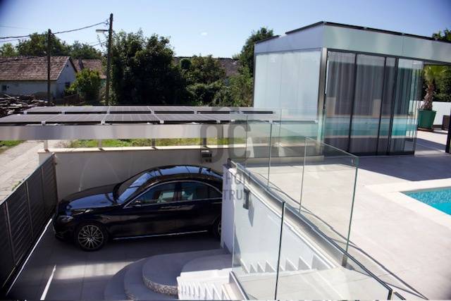 Passzív ház, Siófoktól 25 km-re, Iregszemcsén!Árcsökkenés!!!Az épület három szintes, az alsó szinten dupla garázs, finn szauna, konditerem, és a gépészet található. A földszinten egy teljesen új konyha, AEG gépekkel és gránit lapokkal felszerelve. Itt található egy fürdőszoba, különálló wc-vel és egy hálószoba.Az emelthez üveg lépcső vezet fel egy függönyfalon keresztül láthatóvá válik a teljes telek.A legfelső szinten kandallóval díszített kis konyha egy zenehallgató sarok és egy gardrób szekrény található. Ebben a térben egy nagyméretű fürdőszoba, wc szolgálja ki a tulajdonosát. Itt kapott helyet még egy hálószoba, amely nincs leválasztva, de elszeparálva lehet pihenni.A házat levegő-víz hőszivattyú és napkollektorok teszi energiahatékonnyá. Ezt a rendszert szolgálja ki a kapubejáróra és télikertre telepített napelemes rendszer.Az ideális hőmérsékletről a pinceszinten egy hővisszanyerős légcserélő, a földszinten padlófűtés - hűtés, az emeleten mennyezet hűtés-fűtés gondoskodik.A teljes telek 95 %-a le van burkolva, ebből csak a fűtött, automata öntözővel felszerelt pálmakert maradt ki.A kertben rozsdamentes télikert, rozsdamentes autóbeálló és kapu teszi gondozásmentessé az életet.Itt található a fűthető, változó mélységű medence, amelynek gépészete az alsó szinten van. A medencét napkollektorok fűtik, természetesen a hőszivattyú segítségét is igénybe lehet venni. A medence sóbontóval és UV fertőtlenítővel van ellátva, semmilyen vegyszert nem kell használni hozzá.A teraszon a sós vizes 6 személyes jacuzzi is a ház része.A házban nagyon sok telefonról vezérelhető, kontrollálható eszköz van, segítve az egyszerű, bárhonnan történő irányítást.További részletekért hívjon most!