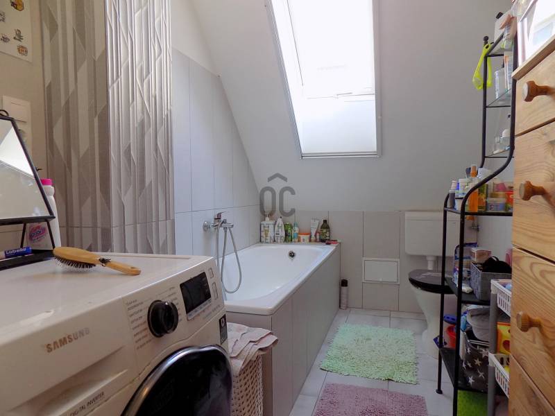 Nappali + 3 szobás sorházi lakás Érd központjában, erkéllyel, kerttel, kiváló közlekedés mellett.Vonat gyalog 3 perc, onnan vonattal M4 Metró 11 perc!Az ingatlan összközműves, gáz-cirkó (padló)fűtéses, 250 nm-es telekterülettel, a lakás bruttó 114 nm, téglaépítésű, világos.Az épületben kettő lakás alkot egy közös egységet, ennek a lakásnak a 85%-a, az előszoba, gardrób és lépcsőház kivételévelaz emeleten található, azaz a nagy része tetőtéri, a tulajdonjog ügyvédi használati megosztásban rendezett, hitel felvehető.A 2005-ben épült ingatlan, betonfödémes, 2021-ben felújításon átesett, teljes festés, új burkolatok, kőzetgyapot szigetelés 20 cm-es,a tető zsindelyfedésű, thermo üvegezésű minden ablak és erkélyajtó is redőnnyel, szúnyoghálóval felszerelt!Minden közlekedés, szolgáltatás, üzletek, iskolák és óvodák, a közvetlen közelben megtalálhatóak!