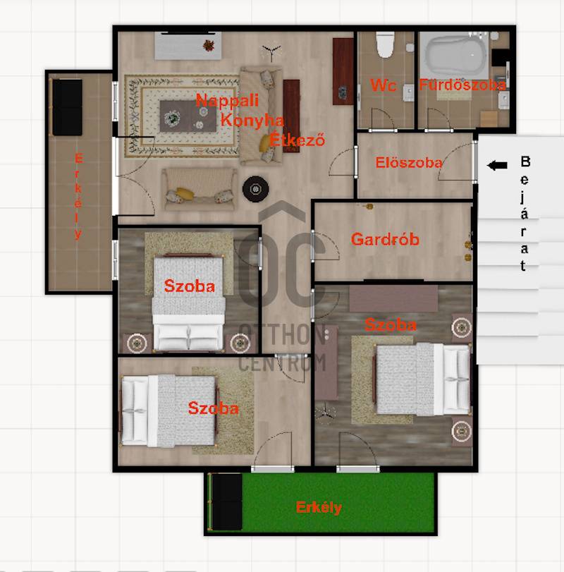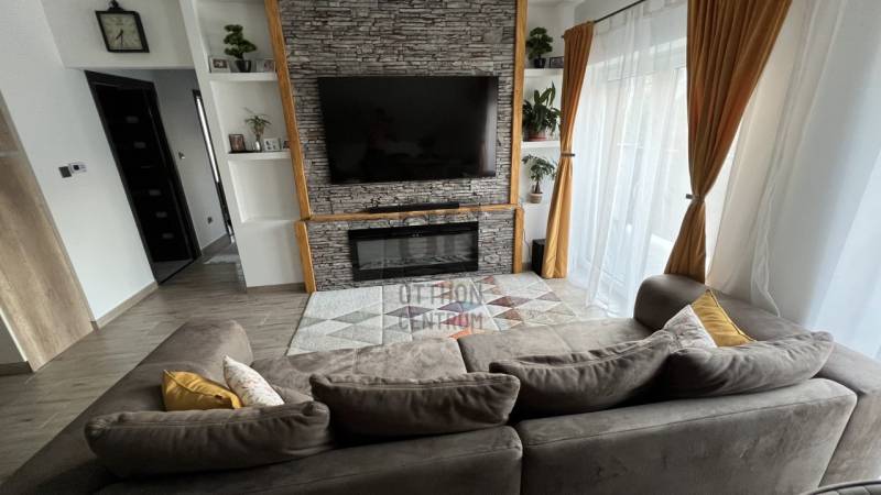 Hajdúszoboszló belvárosi részén, a Hungarospa (Strandfürdő) bejáratától, 400 m-re új építésű, 83/70 nm-es, 3 szobás, hőszivattyús fűtés-hűtés, erkélyes, 2 emeleti társasházi lakás eladó!A 15 lakást magában foglaló épület, modern, letisztult vonalaival, kényelmes, nyugodt életteret biztosít új lakóinak.Főbb jellemzők:- 30 cm tégla falazat, 15 cm grafit szigetelés,- 3 hálószoba- tágas nappali-konyha-étkező- gardrób- 3 rétegű hőszigetelt nyílászáró, kívül antracit, belül fehér színű- két erkély 6,5 nm- 6,5 nm- minden szobából kijárási lehetőség az erkélyekre- minőségi ROTO tetőtéri nyílászárók, belül szintén ROTO sötétítővel, kívül szintén ROTO hővédő elhúzható rolóval- nagyméretű nyomtatott üveg kép a fürdőkád felett- Geberit WC állvány + WELLIS WC- gardrób szobában mennyezetig érő, sok tároló helyet nyújtó szekrény- épített média fal a nappaliban (kő burkolat)- nagyméretű fürdő dupla mosdóval szintén WELLIS-es- magasfényű bútorlapos konyhaszekrény- társasház magas műszaki tartalma- napelem, hőszivattyús gépészeti rendszer,- padlófűtés, mennyezethűtés, kedvező rezsiköltség- beépített elektromos kandalló amivel akár fűteni is lehet, illetve a színét lehet változtatni- az egyik erkély jelenleg napozó ágyas, a másik pedig prémium műfüves napernyővel, kis kiülő szettel- a lakáshoz tartozik egy udvari gépkocsi beálló, vásárlása kötelező ára.: 3 M FtHa a hirdetés felkeltette érdeklődését, bővebb tájékoztatással, megtekintéssel kapcsolatban várom hívását! Hétvégén is!