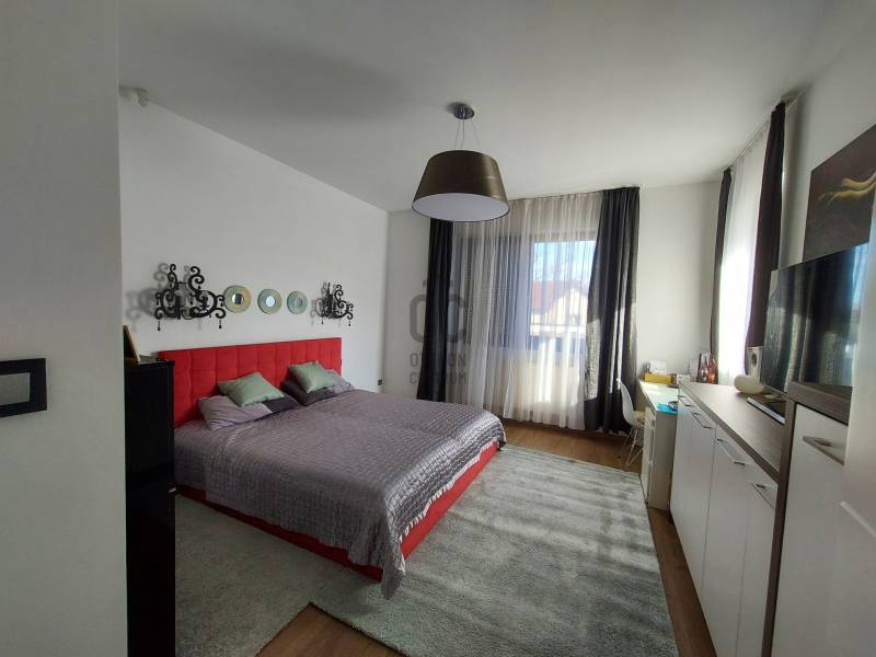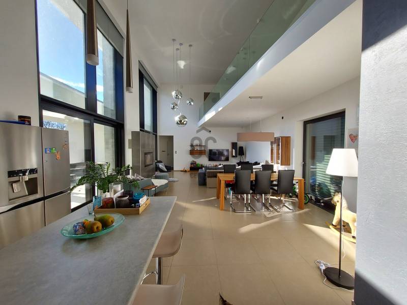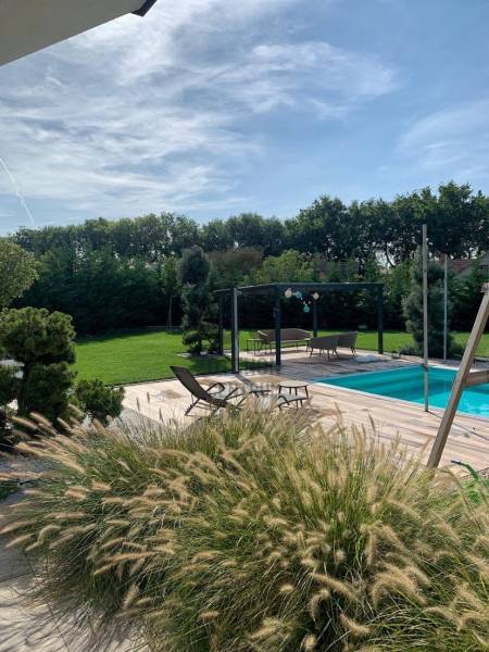 Értékesítésre kínálunk Debrecen- Homokkert csendes utcájában egy igényesen tervezett MODERN stílusú, dupla komfortos, nappali+ 4 szobás, LUXUS önálló családi házat, melynek nettó alapterülete 290 m2.Ez a kivételes ingatlan MAGAS MINŐSÉGŰ anyagok felhasználásával épült, minden részletében az igényesség és a kényelem jegyében született.A ház három szinten terül el, hogy maximális kényelmet biztosítson a családja részére. A földszinten található tágas nappali, ÓRIÁSI mennyezetig érő, német Gealan, három rétegű üvegablakokkal rendelkezik, melyek gyönyörű kilátást nyújtanak a hatalmas teraszra és a gondozott, parkosított 1370 m2-es kertre, melyben egy ellenáramoltatóval felszerelt, fűthető, fedett medence lett telepítve.A modern konyha a legmagasabb minőségű konyhai gépekkel van felszerelve, hogy a főzés és vendégvárás valódi élmény legyen.A földszinten három hálószoba található, melyek mindegyike kényelmes és világos, továbbá két fürdőszoba, mosókonyha, nagyméretű gardrób is helyet kapott. Az emeleten egy hatalmas GALÉRIA teszi hangulatossá az OTTHONT, folytatólagosan egy kialakított dolgozószobába jutunk, melyből egy holland műfűvel borított tetőterasz nyílik.Az alagsorban kialakításra került egy MOZISZOBA, gépészet, az 5 személyes finn és infra SZAUNA pihenősarokkal, zuhanyzóval és wc-vel.Az ingatlan melegét kondenzációs gázkazán biztosítja, padló, fal és radiátoros hőleadókkal, továbbá a nappaliban egy hangulatos kandalló is rendelkezésre áll, a nyári kellemes hőmérséklet split klímával megoldott. Az ingatlan további paraméterei a teljesség igénye nélkül:- DK-i tájolás- hővisszanyerős szellőzőrendszer- BWA vízlágyítórendszer- automata öntöző és csepegtető rendszer- riasztó és kamerarendszer- hőszivattyú és napelem rendszer előkészítve- grafitos hőszigetelés- egyedi gres burkolatok, minőségi HANSGROHE szaniterek- Semmelrock térkő burkolat- alumínium nyílászárók, elektromos alumínium redőnyökkel, zsaluziával, hővédő rolóval, rovarhálóval felszerelve- 22 m2-es garázs- automata távirányíthatós kapu- automata garázskapu- 32 m2-es hatalmas fedett terasz- 6,3 m x 3,8 m polikarbonáttal fedett úszómedence- Hydropool jacuzzi ( megegyezés szerint)- kerti pavilon, szalonnasütő, kerti játszótér a gyerekeknek- kerti LED hangulat világítás- közelben tömegközlekedés, számos oktatási intézmény, bevásárlási lehetőségek, éttermek, belváros percek alatt elérhetőEz a családi ház nemcsak egy otthon, hanem egy ÉLETSTÍLUS is.Ha magas minőségű életet és modern luxust keres Debrecen egyik kedvelt környékén, ne hagyja ki ezt a lehetőséget!További kérdéseivel, megtekintéssel kapcsolatban várom szíves hívását!