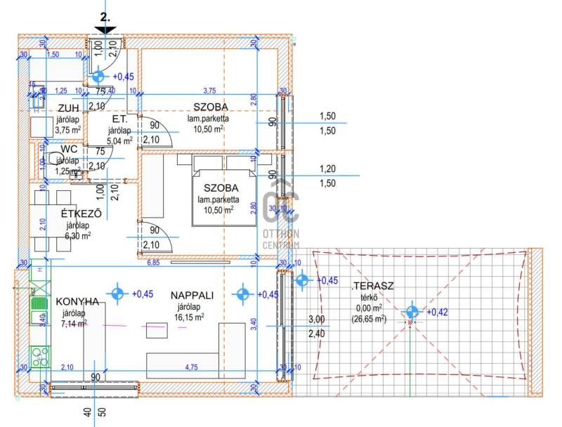 Ez az ingatlan a földszinten helyezkedik el, hasznos alapterülete : 60,63 m2 +26,65 m2 terasz + 43 m2 kertkapcsolattal.Konyha - étkező - nappali + 2 szobás, külön fürdővel, wc - vel.Projekt bemutatásaDebrecen, Kenézy kórház közelében, 8 lakásos társasház, 8 nagyméretű garázzsal eladó.A lakások kiváló lehetőséget nyújtanakazoknak, akik modern, kényelmes életteret keresnek kertvárosi környezetben.Elhelyezkedése : tudom, lerágott csont, de valóban közel található a BMW - hez, de egyúttal a belvároshoz is.Műszaki jellemzői : - Házközponti fűtés, lakásonként egyedileg szabályozható, illetve egyedileg mért.- Veismann kondenzációs turbókazánnal / vagy hőszivattyúval, padlófűtés, mennyezet hűtéssel- Ablakok 6 légkamrás , 3 rtg szigetelet műanyag- Egyébként minden elemében modern, szinvonalas építés, megbízható beruházó - kivitelezőtőlLakások : 4 db földszinti lakás terasz kapcsolattal , + 4 db 1. emeleti lakás erkély kapcsolattal.Garázsok mérete : 20,55 m2 - 47,37 m2 - ig.Minden kedvezmény igénybevehető : CSOK, CSOK HITEL, stb.Várható átadása : 2025. nyárHa felkeltettem az érdeklődést, kérem hívjon bizalommal !!