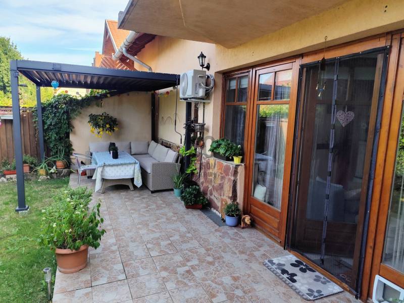A Balaton déli partján elhelyezkedő, Balatonlelle város központjában, de mégis csendes, nyugodt környezetben eladó egy 2004-ben épült, sorház jellegű házban található kétszintes lakóház.A földszinten autógarázs, mellette a főbejárat.A lakásba belépve jobbra egy WC-mosdó, mellette egy légtérben találjuk a nappali-konyha-étkező helyiséget, ahonnan közvetlen kiléphetünk a teraszra.A terasz egy sövénnyel körülvett, csendes belső kerttel együtt kiegészülve a relaxáció, a pihenés szigete.A nappaliban egy hangulatos kandalló van, onnan nyílik a fürdőszoba, ahol a korszerű gázkazán is található.Az előtérből juthatunk a tetőtérbe, ahol nappali, mellette gyereksarok, 2 hálószoba, zuhanyzó, külön WC és 2 erkély található.Ugyancsak az előtérből érhető el a 26.5 nm alapterületű pince helyiség.A lakás környéke rendezett, autóparkolásra a lakás előtt kialakított, közforgalomtól elzárt területen van lehetőség.Balatonlellén a homokos fövenyes strand, élményfürdő, szabad strand, hajóállomás 10 perc sétával érhető el.A strandon szórakozást, vendéglátást szolgáló létesítmények találhatók. Nyáron a fesztivál parkban színes szórakozás várja a vendégeket és az itt lakókat. Vasútállomás, autóbusz állomás, boltok, iskola, óvoda, bölcsőde a közelben van.Amennyiben felkeltettem érdeklődését, kérem hívjon bizalommal!