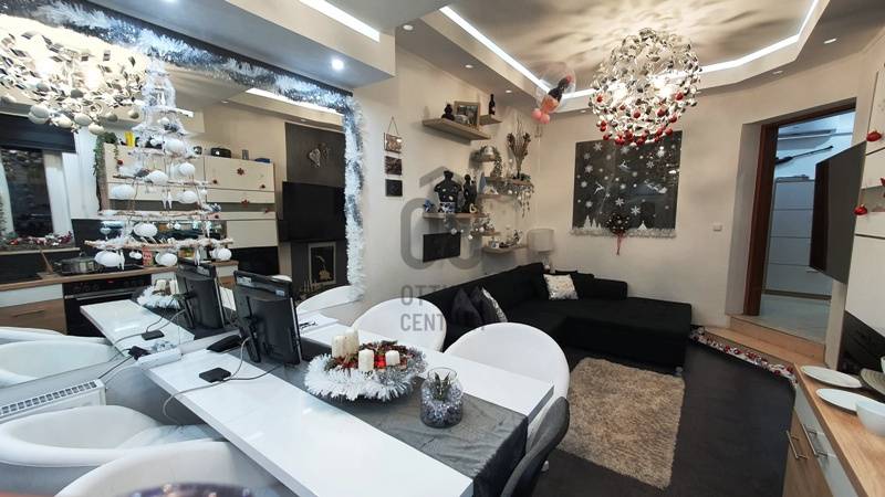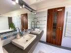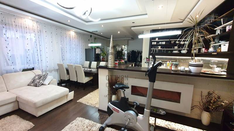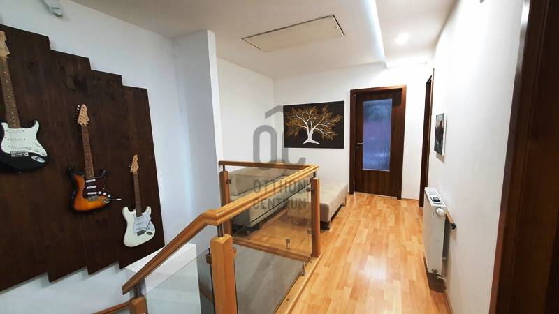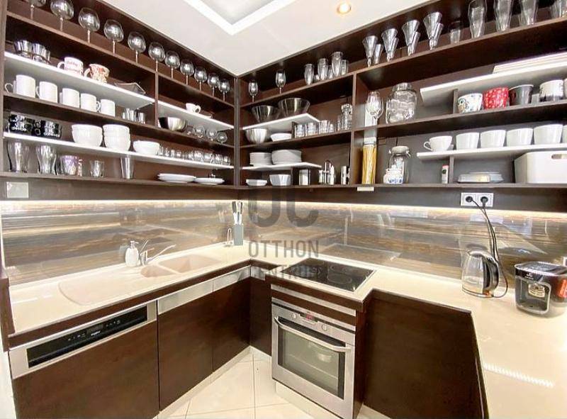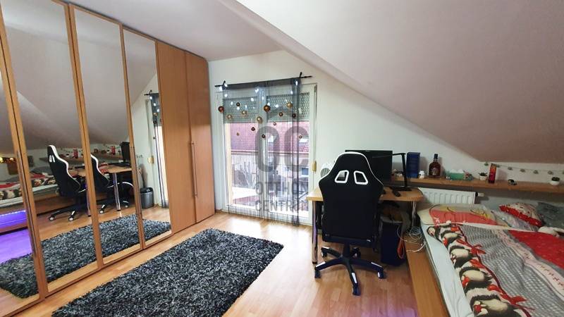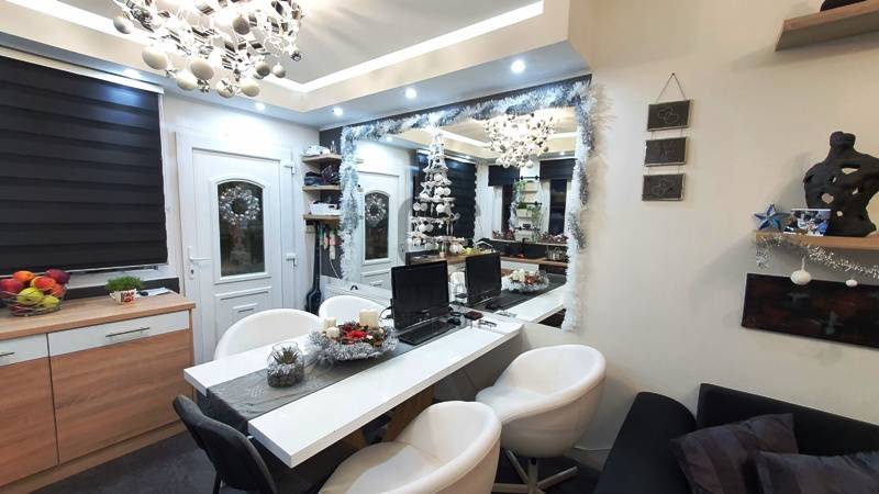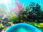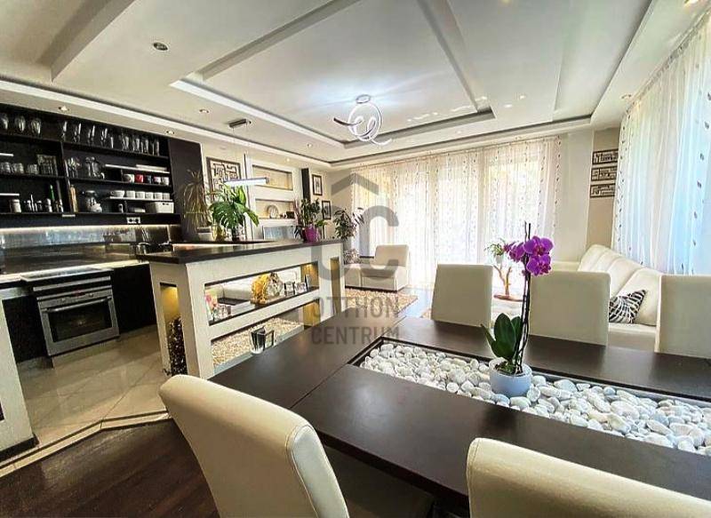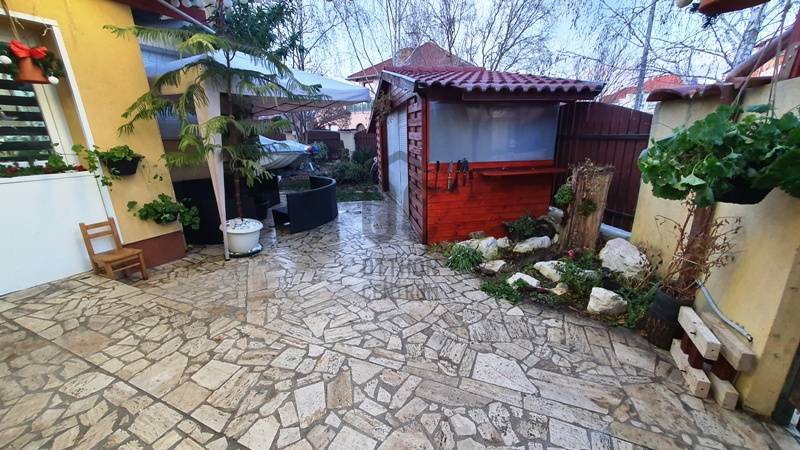 Dunakeszi Duna-parthoz és a központhoz közeli, mégis csendes, forgalomtól mentes utcájában, 2 generációs (és akár 3 generációssá alakítható!), kitűnő állapotú, modern, stílusos, sok extrával felszerelt ikerház fél eladó.A ház 380 m2-es telken áll, jelenleg 2 lakrészből áll, összesen bruttó 165 m2, 6 szobával, dupla komforttal és egy 17 m2-es fedett terasszal rendelkezik. Világos, kellemes, otthonos, élhető terei úgy kapcsolódnak, hogy akár egy harmadik generáció szeparált lakhatása is kialakítható, vagy egy egyszerű összenyitással egy nagy családi házzá (vissza)alakítható. A ház 2006-ban épült, 38-as Porotherm téglából, és 10 cm-es dryvit, szigetelést kapott, Bramac cseréppel fedett, hő és hangszigetelt nyílászárókkal, redőnyökkel és szúnyoghálóval felszerelt. Klimatizálás, riasztó és elektromos kandalló is van.A padlástérben egy 30 m2-es rész még szabadon alakítható.Téli teljes rezsiköltsége 46 000 Ft.A kert parkosított, öntözőrendszerrel ellátott. Itt kapott helyet egy medence és van továbbá egy kerti tó, és egy fúrt kút is, valamint egy 6 és egy 12 m2-es tároló.Jelenleg 2 db autóbeállási lehetőség van, egy fedett és egy fedetlen. (A 2 generációssá alakításkor a garázsból lakrész lett, amit egy egyesítés után vissza lehet állítani.Közlekedése, ellátottsága kiváló, tanintézmények, vásárlási lehetőségek és szolgáltatások, a Duna-part, buszmegálló percek alatt elérhető.Az összes beépített bútor és egyéb berendezés a vételár részét képezi, a többi bútor megegyezés tárgya lehet.Kérdéseivel keressen bizalommal akár hétvégén is! Időpont egyeztetés legalább az előző napon szükséges.