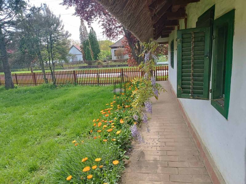 Egyedülálló ajánlat, ritka lehetőség! Igazi időutazás a Balatonnál! A mesébe illő épület az átmenőforgalomtól mentes, csendes település, nyugodt, széles utcájában található. Somogyszentpál Balatonfenyvesről közúton és kisvasúton is könnyen megközelíthető, igazi somogyias hangulatú mezőség. Az elmúlt 20 évben külföldi tulajdonban lévő, kb. 100 m2 hasznos alapterületű parasztház, az eladó által már 2 nagyobb felújításon is átesett. Az ingatlanról elmondható, hogy korához képest (1895-ben épült) jó statikai és műszaki állapotban van, de felújítandó. Igazi főnyeremény! Közművek tekintetében víz, villany, csatorna rendelkezésre áll, gáz a ház előtt az utcában. A meleg vizet villanybojler adja, a fűtésről minden szobában kályha illetve cserépkályha vagy sparhelt gondoskodik. Falazata vastag tömés fal, teteje nád. A népi építészet szerinti leghatékonyabb hőmegtartó rendszer. Télen nem fagy át, nyáron hűvös. Gerendás mennyezete szépen karban tartott, ép. A verandáról 2 bejárattal is rendelkezik. Egyedi stílusú belső terei: 4 szoba, konyha, 2 fürdőszoba és egy hatalmas, 30 m2es fedett teraszból áll. A tágas fürdőszobákban kézmosó, zuhanyzó, Wc és bidé került kialakításra. A belmagasság kifejezetten alacsony 210-230 cm, a beltéri ajtónyílások változók, némelyik 165 cm alacsony! Az 1344 nm kerten kívül a közvetlen szomszédos hátsó telek is a tulajdonos birtokában áll. Ezek nem képezik a vételárat, külön megállapodás szerint vásárolható meg. Kiválóan alkalmas gazdálkodásra, állattartásra, de bérbe is adhatja az egyik helyi gazdának. Az udvaron diófa, kőris, virágos kert, kerti csap és terasz.Ez az átmenőforgalomtól mentes település kiváló választás lehet Önnek és családjának. Somogyszentpál a Balatonfenyvesi kisvasút végállomása. A falu határában találhatóak a marcali halastavak és csatornarendszer. A környék nyugodt, rendezett. A Balaton közelsége révén, és a gondos faluvezetésnek köszönhetően egyre népszerűbb település a külföldiek körében. Rendelkezik saját postával, óvodával, bolttal. Közigazgatásilag a falutól mindösszesen 10km távolságra lévő Marcali járáshoz tartozik, ahol gyógy- és élményfürdő, üzletek, kórház, rendelők, gyógyszertár, bankok, közhivatalok és minden egyéb szolgáltatás is elérhetőek.Megtekintés előre egyeztetett időpontban lehetséges. Várom hívását!
