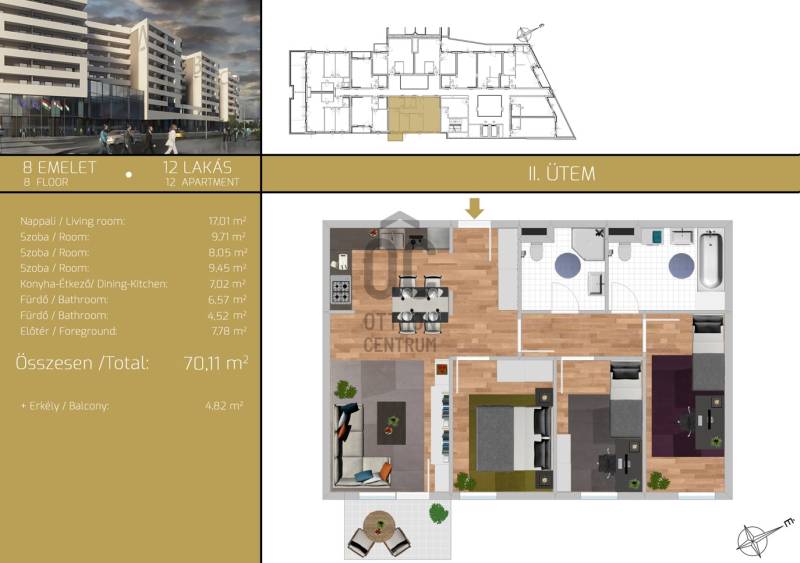 Újépítésű lakások-Megújuló energiávalEnergia takarékos 2026 elején költözhető újépítésű lakások.Budapest XIX. kerületének kiemelkedő közlekedési pontján épülő, modern lakónegyed olyan új közösségi teret hoz létre, ahol minden generáció megtalálja a helyét.Metró, vonat és több buszjárat, biztosítja, hogy nagyon rövid idő alatt Budapest centrumába, vagy a Liszt Ferenc repülőtérre jussanak az itt élők.Az épülő projekt lakásai alkalmasak, rövid és hosszú távú kiadásra, több generáció egymás mellett élésére.A lakóépület komplexum négy ütemben épül fel, jelenleg a II. ütem építése zajlik.Az épületegyüttesben összesen 350 lakás készül, ebből az I. ütemben 98 db, a II. ütemben 118 db. épül meg.Az I. ütem lakásai 2024 év végén átadásra kerültek.A lakások és az épületek között zárt átriumos folyosókon keresztül biztosított az átjárás.A földszint + 8 emelet magas épületet elegáns, fákkal, cserjékkel tarkított terek veszik körül.A lakások lépcsőházanként két-két lifttel közelíthetőek meg.A lakások típusai: Stúdió, 1 szobás, 2 szobás, 3 szobásMinden lakástípus elérhető jelenleg.A lakások jellemzői:Minden lakás rendelkezik erkéllyel vagy terasszal, és néhány exkluzív lakás pedig saját zöldrésszel.•A lakások hűtése és fűtése alacsony energia igényű, hőszivattyús rendszerű, mennyezeti technológiával biztosított•Tágas szobák és erkélyek, nagy, nyitott terű nappalirészek•Konyha, amely külön van, de mégis a nappali része•Nagy üvegfelületek, hőszigetelt üvegezésű műanyag nyílászárók formájában, amelyek sok természetes fényt biztosítanak•A szobákban nedvesség és cseppálló laminált padló•Igényes, minőségi kerámia padlók és falburkolatok a fürdőszobákban és WC-kben,•Az apartman típusától függően kádak vagy zuhanyzók állnak rendelkezésre•A közös helyiségek energia igénye napelemes rendszerrel megoldott.A gépkocsik elhelyezésére a teremgarázsban lesz lehetőség a -1 és -2 szinteken, ahol számos különálló és zárható tárolóhelyiség és elektromos töltési lehetőség is kialakításra kerül.Garázs:Méret:11,25nm-18,3nmAz árakról érdeklődjön az értékesítőnél.A jelen adatok tájékoztató jellegűek, ezért a Beruházó (sem a hirdető) azok változásával, vagy bármely attól való eltéréssel kapcsolatban semmilyen kötelezettséget, vagy felelősséget nem vállal.Az alaprajazokon ábrázolt berendezési tárgyak és bútorok, a burkolatok megjelenése nem képezi a szerződés tárgyát. A pontos felszereltségről a műszaki leírásban olvashat bővebben.Az aktuális lakáskínálatról és árakról érdeklődjön telefonon!Projekt bemutatásaEnergia takarékos újépítésű lakások.A II. ütem lakásai 2026 elején költözhetőek.Az V. ütem lakásai 2027 elején költözhetőek.Budapest XIX. kerületének kiemelkedő közlekedési pontján épülő, modern lakónegyed olyan új közösségi teret hoz létre, ahol minden generáció megtalálja a helyét.Metró, vonat és több buszjárat, biztosítja, hogy nagyon rövid idő alatt Budapest centrumába, vagy a Liszt Ferenc repülőtérre jussanak az itt élők.Az épülő projekt lakásai alkalmasak, rövid és hosszú távú kiadásra, több generáció egymás mellett élésére.A lakóépület komplexum több ütemben épül fel, jelenleg II. és az V. ütem építése zajlik.Az épületegyüttesben összesen 350 lakás készül, ebből az I. ütemben 98 db., a II. ütemben 118 db., az V. ütemben 58 db épül meg.Az I. ütem lakásait 2024 év végén a lakók birtokba vették. A lakások és az épületek között zárt átriumos folyosókon keresztül biztosított az átjárás.A földszint + 8 emelet magas épületet elegáns, fákkal, cserjékkel tarkított terek veszik körül.A lakások lépcsőházanként két-két lifttel közelíthetőek meg.A lakások típusai: Stúdió, 1 szobás, 2 szobás, 3 szobás, 4 szobásMinden lakástípus elérhető jelenleg.A lakások jellemzői: Minden lakás rendelkezik erkéllyel vagy terasszal, és néhány exkluzív lakás pedig saját zöldrésszel.•A lakások hűtése és fűtése alacsony energia igényű, hőszivattyús rendszerű, mennyezeti technológiával biztosított•Tágas szobák és erkélyek, nagy, nyitott terű nappalirészek•Konyha, amely külön van, de mégis a nappali része•Nagy üvegfelületek, hőszigetelt üvegezésű műanyag nyílászárók formájában, amelyek sok természetes fényt biztosítanak•A szobákban nedvesség és cseppálló laminált padló•Igényes, minőségi kerámia padlók és falburkolatok a fürdőszobákban és WC-kben, •Az apartman típusától függően kádak vagy zuhanyzók állnak rendelkezésre•A közös helyiségek energia igénye napelemes rendszerrel megoldott.A gépkocsik elhelyezésére a teremgarázsban lesz lehetőség a -1 és -2 szinteken, ahol számos különálló és zárható tárolóhelyiség és elektromos töltési lehetőség is kialakításra kerül.Garázs: Méret:11,5nm-18,25nmAz árakról érdeklődjön az értékesítőnél.Tároló:Méret 4,2nm-14,9nmAz árakról érdeklődjön az értékesítőnél.A jelen adatok tájékoztató jellegűek, ezért a Beruházó (sem a hirdető) azok változásával, vagy bármely attól való eltéréssel kapcsolatban semmilyen kötelezettséget, vagy felelősséget nem vállal.Az alaprajazokon ábrázolt berendezési tárgyak és bútorok, a burkolatok megjelenése nem képezi a szerződés tárgyát. A pontos felszereltségről a műszaki leírásban olvashat bővebben.Az aktuális lakáskínálatról és árakról érdeklődjön telefonon!