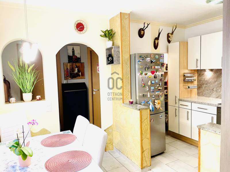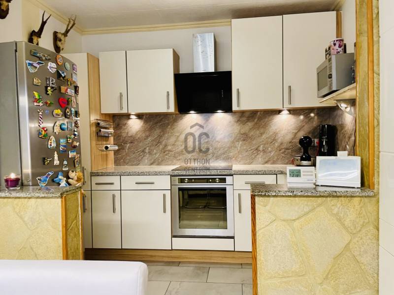 A csendes - nemrég új burkolatot kapott - utcában lévő ház egy társasházzá alakított családi házas udvar egyik épülete, melyhez külön lekerített saját kert tartozik. Az épület utcafronti része kőből, a hozzáépített rész téglából készült. A szigetelt ház tetőcserepét 2022-ben lecserélték ( kreaton róna vörösréz engóbozott hódfarkú). A beépített konyhabútor korszerű energiatakarékos gépekkel a vételár részét képezi.A melegről 5 éves Vaillant gáz-cirkó kazán gondoskodik, de rendelkezésre áll egy vegyes tüzelésű kazán is.A 140 nm-es kertben két helyiségől álló 20 nm-es villannyal ellátott tároló kapott helyet. Épített grillsütő is rendelkezésre áll. Itt még a kényelmet szolgálja a több helyen lévő víz- és áramvételi lehetőség. - műanyagy és fa nyílászárók redőnnyel felszerelve- minőségi fal és padlóburkolatok- klíma (hűtő-fűtő)- külső kamerarendszer- teljesen felszerelt, száraz, fűtött, több helyiségből álló pince biztosít kikapcsolódást ( akár borospincének is megfelel)- fényterápiás hidromasszázs kád- a ház előtt két autó parkolásához kialakított helyAz ingatlan per- teher- és igénymentes!Fertőrákos község Győr-Moson-Sopron vármegyében, a Soprontól mintegy tíz kilométerre északkeletre, közvetlenül az osztrák határ mellett fekszik. Kiemelkedő történeti és művészeti emlékekkel rendelkezik; szép természeti környezetben található, számos épülete műemlék.Ha felkeltettem érdeklődését, hívjon!Hitelre van szüksége?? Az Otthon Centrum az ország egyik legnagyobb és legmegbízhatóbb hitelközvetítőjeként, teljes körű és díjmentes hitelügyintézéssel, biztosításkötéssel áll rendelkezésére! Kérje személyre szabott ajánlatunkat Kollégáinktól!eladó, ház,fertőrákos,pince