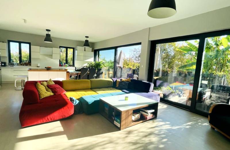 Ez az ajánlat biztosan tetszeni fog Önnek a személyes megtekintéskor a kitűnő minősége, remek beosztása, csodálatos kertje, panorámája miatt is.Örömmel ajánlom Önnek, amennyiben mindezek fontos szempontok az ÚJ OTTHONA megtalálásakor.Ha olyan otthonról álmodozik, ahol a nyugalom, a kényelem és a luxus összefonódik a modern életstílussal, akkor ne keressen tovább, mert megtalálta.HÁZRÓL:- bruttó 222 nm-es, 3 szintes,- déli tájolású, rendkívül világos, magával ragadó hangulatú,- 2019-ben épült, azóta folyamatosan karbantartott, gondozott,- amerikai konyhás nappali + 4 szobás, 3 fürdőszobás, gardrób szobás,- konyha mellett nagyon praktikus kamra található,- minden részletében átgondolt, letisztult formavilágú, modern megjelenésű, - a nappali élettérnél teljes falszélességű, hatalmas, 5 légkamrás, alumínium ablakokon gyönyörködhetünk a kilátásban,- 38 nm-es terasz kapcsolódik a nappalihoz, - legalsó szinten található a 2 állásos garázs,- INNOVATÍV ENERGIAFELHASZNÁLÁSÚ épület.Ahogy az a mellékelt alaprajzon is látszik a földszinten lett kialakítva a nappali élettér, az emeleten található két panorámás hálószoba, egy dolgozószoba, gardrób helyiség és két fürdőszoba. A fürdőszobákban zuhanyzó illetve kád is található. A legalsó szinten a kétállásos garázs, egy 12 nm-es stúdió szoba és a hőszivattyú (GREE) gépháza kapott helyet. Kérésre további képeket is küldök.KÖRNYEZET:- gyönyörű, különleges növényekkel beültetett, csendes SAJÁT KERT, - eső érzékelős locsoló rendszer, külön kerti vízórával,- a kertben saját játszótér,- gyümölcsfák, szeparált zöldséges mini-kert,- 2 autó számára beállási lehetőség.SZÁMOS ELŐNYE MELLETT TOVÁBBI POZITÍVUMOK:- 15 cm-es Austrotherm grafit külső hőszigetelés,- HŐSZIVATTYÚS HŰTÉS + FŰTÉS (padló + mennyezet fűtés valamint mennyezet hűtés)- 5 légkamrás, alumínium terasz-tolóajtók,- emeleten törésálló ablakok,- minden ablakon elektromos, prémium zsaluzia (Smart Home opcióval),- eloxált alumínium korlátok,- beépített egyedi gyerekszoba bútor,- beépített egyedi konyhabútor, konyhai gépekkel (Bosch) és konyhaszigettel,- riasztórendszer és napelem előkészítés.INFRASTRUKTÚRA:Kiváló intézményi infrastruktúra és remek közlekedés jellemzi a környéket. Közelben több közkedvelt oktatási intézmény, orvosi rendelő, POSTA, gyógyszertár, vásárlási és sportolási lehetőség is található. Autóval pár perc alatt elérhető az M7-es, M1-es autópálya, gyalog 3 perc séta a buszmegálló. Biztonságos, családias környezet, összetartó lakóközösség.Ne hagyja ki ezt a remek lehetőséget, hogy Öné legyen Budapest budai oldalának, új építésű, kertvárosi életstílusának egy darabja.Nézzük meg együtt, mert érdemes!