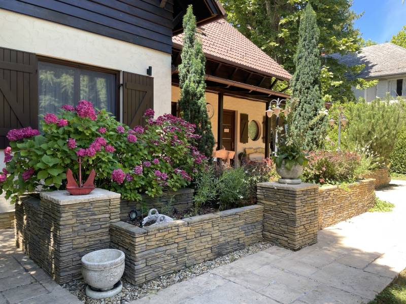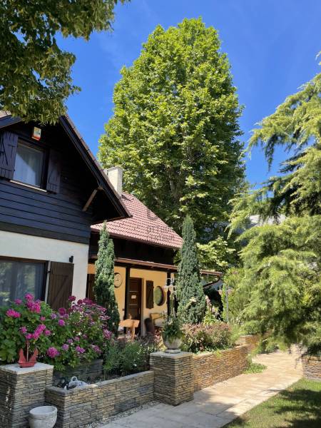 BALATONTONPARTTÓL 100 méterre egy CSODÁLATOS hangulatú, paradicsomi környezetben lévő ingatlant kínálunk eladásra!A vízközeli nyaraló és mesés kertjének látványa szemet gyönyörködtető és szívet melengető érzéssel tölti el csodálóját. A gondosan megtervezett harmonikus kialakítású anyaghasználat az arányok és a tökéletes pontossággal készült famunkáknak köszönhetően.A 793 nm-es telken elhelyezkedő minőségi anyagokból épített 162 nm alapterületű, 6 szobás, 2 fürdőszobás, konyha-étkező, hatalmas teraszok, tároló és egy dolgozó helyiséggel kialakított kiváló ingatlan. A növényekkel teli kerti oázisban egy kisház is helyet kapott ami további tárolási lehetőséget biztosít vagy külön álló lakóhelységként is funkcionálhat. A fákkal, cserjékkel és meseszép színpompás virágokkal körülölet kert középpontjában egy kerti pavilon is található, amely a nyári esték csodálatos helyszínéül szolgál egy családi vagy baráti vacsorák alkalmával, melyhez tartozik egy gonodosan kialakított kerti bográcsozó, sütögető, ahol az ízletes ételeket elkészíthetik.A víz közelsége az ősfákkal árnyékolt utcák a TÖKÉLETES elhelyezkedés és a házat körbevevő csendes és varázslatos milliő, biztonságot és nyugalmat nyújt az itt élők számára.A 100 méterre lévő szabad STRANDFÜRDŐN a mindennapi úszás vagy a családi fürdőzések és élményeken kívül a 400 méterre lévő VITORLÁSKIKÖTŐ is kényelmesen elérhető, így egy remek vitorlázást követően hamar a ház nyugalmában élvezhetik tovább a pihenést. A környék közlekedési szempontból is kiváló, Budapestről csupán 1,5 óra az ország legszebb autópályáján az M7-esen.A méretre készített bútorok és egyéb berendezési tárgyak az ingatlan részét képezik.Bármilyen kérdése van az ingatlannal kapcsolatban, kérem keressen bizalommal minket, hogy ez a remek környezet az Önöké lehessen!