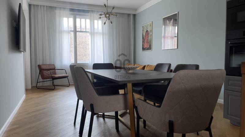 Kiadó a 7. kerületben, a Wesselényi utcában egy 80 nm-es, 3 szobás, 5. emeleti (lift van), kiváló állapotú, gyönyörűen berendezett tégla lakás.LAKÁS:- A lakás kifejezetten világos keleti fekvésének köszönhetően, egyszerre otthonos és modern, jó érzés megérkezni- Berendezéssel, bútorokkal együtt, gépesítve kerül kiadásra - hűtőszekrény, MOSOGATÓGÉP, tűzhely, asztal székekkel, kanapé + 2 db.franciaágy, dekorok stb. - CSAK KÖLTÖZNI KELL- 2 hálószoba, 2 fürdőszoba- Alacsony rezsiköltséggel fenntartható, házközponti fűtés gondoskodik a melegről, emellett egy hűtő-fűtő klíma is helyet kapottTÁRSASHÁZ:- A társasház rendezett, külső és belső homlokazata nagyon j állapotú, folyamatosan karbantartják az épületet- A liftet 3 éve teljesen felújjítottákKÖRNYÉK:- Kiváló elhelyezkedésének köszönhetően rengeteg kulináris, bevásárlási vagy éppen szórakozási lehetőség van elérhető közelségben- Egyetemisták figyelem, számos oktatási intézmény elérhető a közelben, a tömegközlekedés kiváló- Klauzál tér és a Zsinagóga közelében található, a belvárosi elhelyezkedésnek köszönhetően minden megtalálható a közelben, ami a mindennapokban szükségesFeltételek:Dohányzás nem megengedettA bérléshez az első havidíjon felül 2 havi kaució szükségesAmennyiben elnyerte tetszését és szeretné megtekinteni az ingatlant, hívjon bizalommal!