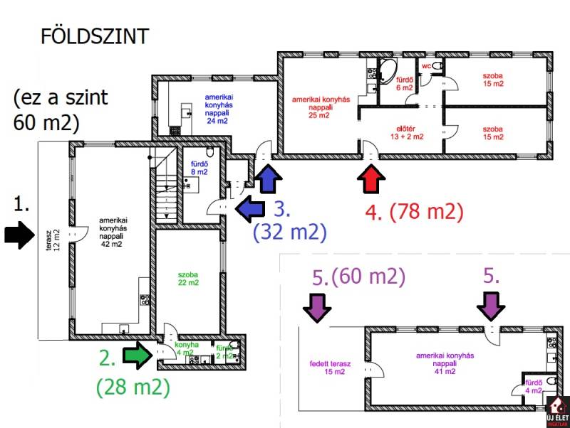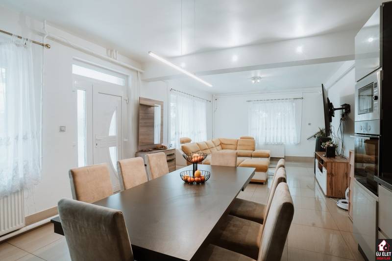 Eladó Gödöllő, Fenyves városrészén, a Fenyvesi Nagyúton egy jelenleg 6 darab apartmannak kialakított, 516 m2 hasznos alapterületű (bruttó 600 m2-es) épület, egy 1.408 m2-es telken.A telken jogilag is 2 db lakóház épült.A 3 szintes lakóházban 2 apartman, a 2 szintes lakóházban 3 apartman, és a tágas melléképületben 1 apartman lett kialakítva.A legnagyobb lakás az utcafronti házban, 3 szinten helyezkedik el. Összesen 240 m2. (az alaprajzon az 1-es apartman)A földszinti rész 60 m2, ami valójában egy tágas amerikai konyhát, a lépcsőházat és a teraszt jelenti.Az 1. emeleten 3 szoba, a kádas fürdőszoba és az erkély található, 90 m2-en.A 2. emeleten pedig beépíthető pluszban bruttó 90 m2. Vagy a lenti apartmant bővíthetjük még 3-4 szobával és egy újabb fürdőszobával, vagy kialakítható akár egy új, amerikai konyhás + 3 szobás + fürdőszobás apartman. (Az áram, víz, csatorna, fűtés feljön erre az emeletre, de ez a szint nincs kiépítve.)Innen az ablakból, az erkélyről GYÖNYÖRŰ PANORÁMA tárul a szemünk elé. A két épület közül ez a ház épült korábban, 1984-ben, és ez tavaly TELJESKÖRŰEN FEL LETT ÚJÍTVA. A villanyvezetékek, a gépészet, az ablakok, a burkolatok, a konyhabútor, minden új. (Igény esetén, mivel a lépcsőház az épület szélén található és kívülről még van hely a telken, így megoldható, hogy az emeleti részek, akár kívülről, közvetlenül megközelíthetőek legyenek.)Ugyanennek az épületnek a földszintjén, egy oldalsó bejárattal egy 28 m2-es kis apartman is helyet kapott. (az alaprajzon a 2-es apartman)A másik épület 2007-ben épült. Ez a ház földszint + egy emelet magas. (30 cm-es Porotherm téglából épült + szigetelés.)A földszinten két apartman található.Az egyik egy tágasabb nappali + 2 szobás, 78 m2-es, sarokkádas külön fürdő, külön wc-vel rendelkező modern apartman. (az alaprajzon a 4-es apartman)A másik kisebb, összesen 32 m2-es lakrész.Itt jelenleg egymás mellett van maga a lakás és a fürdőszoba, amit külön ajtón keresztül közelíthetünk meg, de megoldható, hogy a fürdő a lakásból belülről nyíljon, vagy a fedett terasz egy kis részének beépítésével egy tágas előszobából nyílhatna a szoba is és a fürdőszoba is. (az alaprajzon a 3-as apartman)Ennek az épületnek az emeletén, külső lépcsőn megközelítve, egy nappali + 2 szobás, bruttó 78 m2-es lakásba jutunk. (az alaprajzon a 6-os apartman)A fűtés mindkét lakóházban, azaz a fentebb felsorolt apartmanokban gázkazán és vegyes tüzelésű kazánnal is megoldható.A melléképületben kialakított apartmanban csak fa tüzelésű kazán van.A melléképületben kialakított apartmanban pedig egy stúdiólakás lett kialakítva. (60 m2). A tágas térből csak a fürdőszoba van külön helyiségben. Tartozik hozzá egy méretes fedett terasz is. (az alaprajzon az 5-ös apartman)De megoldható, hogy kényelmesen leválasszunk egy hálószobát is.Vagy ha nyitottak vagyunk némi átalakításra, akkor 2 pici apartman is lehet belőle. Ezesetben egy plusz fürdőszobát kell ide kiépítenünk. De ez megoldható.A telken 2 db vízóra, 2 db villanyóra és 2 db gázóra található. Egyik a 3 szintes épületé, a másik pedig a többié.Az apartmanok egy része felújított, a más része felújításra szorul.Kiváló lehetőség befektetőknek, vagy bárkinek, aki a kiadott ingatlanjaiból szeretne megélni....és ha nem ijed meg egy kis átalakítástól, akkor a 6 helyett, akár 8 apartman is kiépíthető.(A fentebb leírtak szerint.)Siófoki csere vagy kisebb ingatlan beszámítása szóba jöhet.Hívjon, akár az esti órákban, akár hétvégén is!