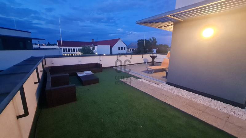 Belvároshoz közel mégis csendes helyen kiadó egy négyszobás penthouse lakásA Belvároshoz és Déli Ipari Parkhoz egyarán közel (EcoPro, Vitesco, KRONES, CATL, SEMCORP), (mindössze 8 perce autóval, vagy 18 percre busszal) de mégis csendes helyen, kiadó egy néhány éve épült, kiváló állapotú háromszobás lakás!Az ingatlan kiváló adottságokkal rendelkezik, mivel a hozzá tartozó hatalmas terasz páratlan lehetőséget kínál a szabadidő eltöltésére!A tágas és fényes nappali-étkező mellett 3 különnyíló szoba, valamint 2 fürdőszoba és egy minden igényt kielégítő gardrób található a lakótérben.A negyedik szoba berendezése igény szerint alakítható, akár dolgozószoba, vagy hálószoba kialakítása is megoldható! Az épületen elhelyezett napelemeknek és a modern szigetelésnek köszönhetően a lakás fenntartási költsége kedvező.A kellemes hőérzetről a téli időszakban padlófűtés, míg nyáron mennyezethűtés gondoskodik! A konyha minden szükséges eszközzel felszerelt, mikró, mosogatógép, sütő, főzőlap, rejtett páraelszívó.A lakóközösség kicsi, tagjai kedvesek!A lakáshoz egy saját garázs tartozik, amelynek költségét, már tartalmazza a bérleti díj! A társasház előtt 2 további autó parkolása is megoldható.A szerződéskötéshez 2 havi kaució és az első havi bérleti díj szükséges.A környék infrastruktúrája, biztosítja a kényelmes mindennapokat, mivel iskola, gyógyszertár, orvosi rendelő, McDonalds, Interspar is található egy rövid séta távolságra.A lakás, február 1.-től bérelhető!Forduljon hozzám bizalommal, akár hétvégén, vagy az esti órákban is!