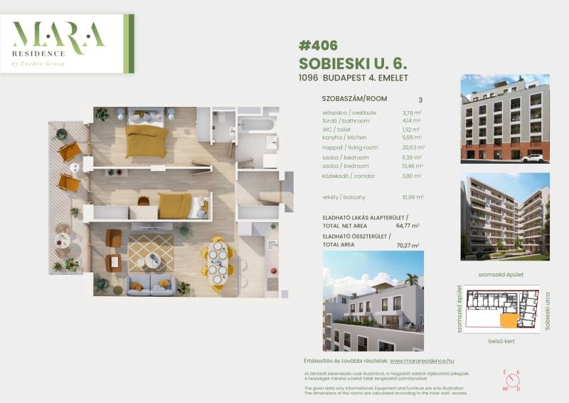 Projekt bemutatásaAzoknak, akik nem szeretik a több száz lakásos társasházakat, kitűnő lehetőség ez a 67 lakásos társasház Ferencvárosban.Dinamikusan fejlődő közvetlen környezet- további értéknövekedési potenciál!A LAKÁSOK 80%-a MÁR ELKELT!A MARA RESIDENCE-től egy sarokra számos villamosmegálló található (2,24, 28, 37, 51, 51A), de a Klinikák és a Nagyvárad téri metro megálló is csak kb.10 perc, illetve a 4-6-os villamos vonala is 10-15 perc sétával elérhető. Így a város bármely pontjára könnyen és gyorsan eljuthat.A belvárosi lokációnak köszönhetően, a közelben sokféle üzlet és szolgáltatás érhető el. Egy kellemes sétával kiváló kulturális és szórakozási lehetőségek között válogathatnak az környéken élők. Legyen szó egy jó szórakozóhelyről, múzeumról, moziról, vagy színházról, nem kell messze menni.A társasház közvetlen környezetében számtalan kellemes étterem, bár található, de aki csak egy kis levegőre vágyik az egy sarokra megtalálja a Kerekerdő Parkot vagy sétálhat egy nagyot a közeli Dunaparton.KÖNNYŰ, GARANTÁLT BÉRBEADHATÓSÁG, MAGAS BÉRLETI DÍJAKA környéken található, részben a közelmúltban épült egyetemi tömbök és irodaházak közelsége miatt egyre több külföldi diák, valamint a közelben, multinacionális nagyvállalatoknál dolgozó, stabil anyagi háttérrel rendelkező munkavállaló szeretne a területen lakást bérelni. Ugyanakkor a rendelkezésre álló bérbeadó, jó minőségű ingatlanállomány ezt az igényt egyelőre nem képes kiszolgálni.A bérleti díjak évről-évre emelkednek, ezáltal biztosítva a befektetési céllal vásárlóknak megfelelő hozamot.ÉRTÉKÁLLÓ, BIZTONSÁGOS BEFEKTETÉSA megújult lakókörnyezetet biztosító IX. kerület kiváló elhelyezkedésével, gondozott parkjaival, kellemes utcáival, szép épületeivel, kiváló infrastruktúrájával az utóbbi évtizedekben tömegesen vonzza az ide költözni vágyókat. Emiatt a lakások ára folyamatosan emelkedik és akkor sem kell aggódnia, ha újra értékesíteni szeretné majd, hiszen azt bármikor könnyen megteheti.HA NAGYOBB LAKÁSBA KÖLTÖZNIE A CSALÁDJÁVAL?Használja ki a Családi Otthonteremtési kedvezmény (CSOK), hiszen nálunk minden igényt kielégítő újépítésű családi otthonok közül is válogathat, melyekhez ki tudja használni a most elérhető állami támogatásokat. A CSOK mellé használja ki az áfa visszatérítést és illetékmentességet is!KÖZÖSSÉGI ÉLMÉNYA társasház 7.emeletének tetőteraszán egy 80m2-es közösségi grillterasz kerül kialakításra. Családi, baráti események kiváló helyszíne lehet majd ez kényelmes közösségi tér.Az alaprajzokat a lehető legjobban átgondoltuk, de előfordulhat, hogy Önnek más elképzelései vannak így még MÉG LEHETŐSÉGE VAN AZ ALAP - RAJZOK MÓDOSÍTÁSÁRA, ami magában foglalja akár az elektromos szerelvények elhelyezését és hasonló, a mindennapokban fontos apróságok egyeztetését is, amihez belsőépítész és lakberendező kollégáink szakértő segítséget nyújtanak!Személyes konzultációnk során nem csak az alaprajzi elrendezésre és optimalizálására van lehetősége, de számíthat ránk abban is, hogy az alapkínálatunkban szereplő burkolóanyagok közül megtalálja az egyéniségéhez legközelebb állót. Célunk, hogy az Ön lakása olyan legyen, amilyet megálmodott.VEVŐKIJELÖLÉS! Bármikor kiszállhat! Ha Ön úgy dönt, hogy már az átadás előtt eladná leszerződött ingatlanját, bármikor kereshet rá új Vevőt. Vevőkijelöléssel kötött szerződés esetén, szívesen átszerződünk az Ön által megjelölt ügyféllel. A vevőkijelöléssel kötött szerződés feltételeiről, várjuk érdeklődését.KEDVEZŐ FIZETÉSI ÜTEMEZÉS: 2 M Ft regisztrációs díj, majd 15 napon belül előszerződés aláírásakor a vételár 15%-ig kiegészítve, 85% pedig műszaki átadást követően. Tervezett átadása: legkésőbb 2027.01.negyedévHOGY ÖNNEK A LEGKÉNYELMESEBB LEGYEN AZ INGATLANVÁSÁRLÁS ÉS A HASZNOSÍTÁS EGYARÁNT:-BELSŐÉPÍTESZETI TANÁCSADÁS-LAKBERENDEZÉSI TANÁCSADÁS, LÁTVÁNYTERVEZÉS-HOME STAGING – Bérbeadásra felkészítés-KONYHA és BEÉPÍTETT BÚTOR TERVEZÉS, KIVITELEZÉS-RESALE és MÁSODÉRTÉKESÍTÉS-DÍJMENTES HITEL és CSOK ÜGYINTÉZÉS is része a szolgáltatásainknak.Várjuk megtisztelő érdeklődését