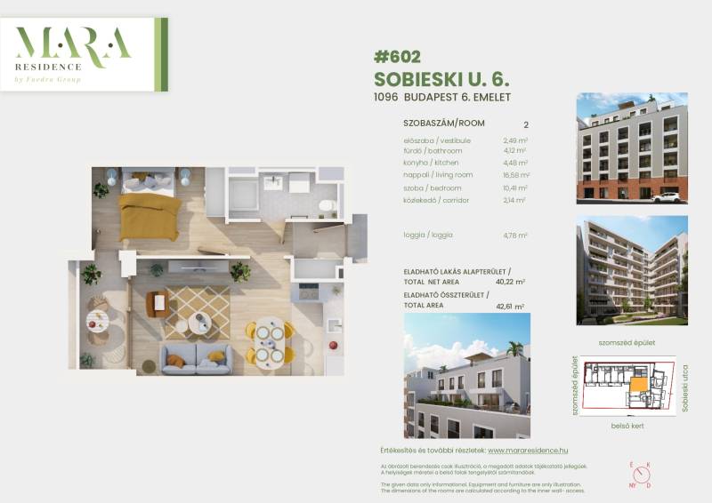Projekt bemutatásaAzoknak, akik nem szeretik a több száz lakásos társasházakat, kitűnő lehetőség ez a 67 lakásos társasház Ferencvárosban.Dinamikusan fejlődő közvetlen környezet- további értéknövekedési potenciál!A LAKÁSOK 80%-a MÁR ELKELT!A MARA RESIDENCE-től egy sarokra számos villamosmegálló található (2,24, 28, 37, 51, 51A), de a Klinikák és a Nagyvárad téri metro megálló is csak kb.10 perc, illetve a 4-6-os villamos vonala is 10-15 perc sétával elérhető. Így a város bármely pontjára könnyen és gyorsan eljuthat.A belvárosi lokációnak köszönhetően, a közelben sokféle üzlet és szolgáltatás érhető el. Egy kellemes sétával kiváló kulturális és szórakozási lehetőségek között válogathatnak az környéken élők. Legyen szó egy jó szórakozóhelyről, múzeumról, moziról, vagy színházról, nem kell messze menni.A társasház közvetlen környezetében számtalan kellemes étterem, bár található, de aki csak egy kis levegőre vágyik az egy sarokra megtalálja a Kerekerdő Parkot vagy sétálhat egy nagyot a közeli Dunaparton.KÖNNYŰ, GARANTÁLT BÉRBEADHATÓSÁG, MAGAS BÉRLETI DÍJAKA környéken található, részben a közelmúltban épült egyetemi tömbök és irodaházak közelsége miatt egyre több külföldi diák, valamint a közelben, multinacionális nagyvállalatoknál dolgozó, stabil anyagi háttérrel rendelkező munkavállaló szeretne a területen lakást bérelni. Ugyanakkor a rendelkezésre álló bérbeadó, jó minőségű ingatlanállomány ezt az igényt egyelőre nem képes kiszolgálni.A bérleti díjak évről-évre emelkednek, ezáltal biztosítva a befektetési céllal vásárlóknak megfelelő hozamot.ÉRTÉKÁLLÓ, BIZTONSÁGOS BEFEKTETÉSA megújult lakókörnyezetet biztosító IX. kerület kiváló elhelyezkedésével, gondozott parkjaival, kellemes utcáival, szép épületeivel, kiváló infrastruktúrájával az utóbbi évtizedekben tömegesen vonzza az ide költözni vágyókat. Emiatt a lakások ára folyamatosan emelkedik és akkor sem kell aggódnia, ha újra értékesíteni szeretné majd, hiszen azt bármikor könnyen megteheti.HA NAGYOBB LAKÁSBA KÖLTÖZNIE A CSALÁDJÁVAL?Használja ki a Családi Otthonteremtési kedvezmény (CSOK), hiszen nálunk minden igényt kielégítő újépítésű családi otthonok közül is válogathat, melyekhez ki tudja használni a most elérhető állami támogatásokat. A CSOK mellé használja ki az áfa visszatérítést és illetékmentességet is!KÖZÖSSÉGI ÉLMÉNYA társasház 7.emeletének tetőteraszán egy 80m2-es közösségi grillterasz kerül kialakításra. Családi, baráti események kiváló helyszíne lehet majd ez kényelmes közösségi tér.Az alaprajzokat a lehető legjobban átgondoltuk, de előfordulhat, hogy Önnek más elképzelései vannak így még MÉG LEHETŐSÉGE VAN AZ ALAP - RAJZOK MÓDOSÍTÁSÁRA, ami magában foglalja akár az elektromos szerelvények elhelyezését és hasonló, a mindennapokban fontos apróságok egyeztetését is, amihez belsőépítész és lakberendező kollégáink szakértő segítséget nyújtanak!Személyes konzultációnk során nem csak az alaprajzi elrendezésre és optimalizálására van lehetősége, de számíthat ránk abban is, hogy az alapkínálatunkban szereplő burkolóanyagok közül megtalálja az egyéniségéhez legközelebb állót. Célunk, hogy az Ön lakása olyan legyen, amilyet megálmodott.VEVŐKIJELÖLÉS! Bármikor kiszállhat! Ha Ön úgy dönt, hogy már az átadás előtt eladná leszerződött ingatlanját, bármikor kereshet rá új Vevőt. Vevőkijelöléssel kötött szerződés esetén, szívesen átszerződünk az Ön által megjelölt ügyféllel. A vevőkijelöléssel kötött szerződés feltételeiről, várjuk érdeklődését.KEDVEZŐ FIZETÉSI ÜTEMEZÉS: 2 M Ft regisztrációs díj, majd 15 napon belül előszerződés aláírásakor a vételár 15%-ig kiegészítve, 85% pedig műszaki átadást követően. Tervezett átadása: legkésőbb 2027.01.negyedévHOGY ÖNNEK A LEGKÉNYELMESEBB LEGYEN AZ INGATLANVÁSÁRLÁS ÉS A HASZNOSÍTÁS EGYARÁNT:-BELSŐÉPÍTESZETI TANÁCSADÁS-LAKBERENDEZÉSI TANÁCSADÁS, LÁTVÁNYTERVEZÉS-HOME STAGING – Bérbeadásra felkészítés-KONYHA és BEÉPÍTETT BÚTOR TERVEZÉS, KIVITELEZÉS-RESALE és MÁSODÉRTÉKESÍTÉS-DÍJMENTES HITEL és CSOK ÜGYINTÉZÉS is része a szolgáltatásainknak.Várjuk megtisztelő érdeklődését