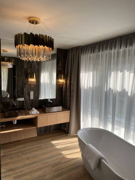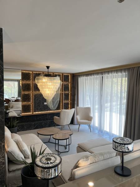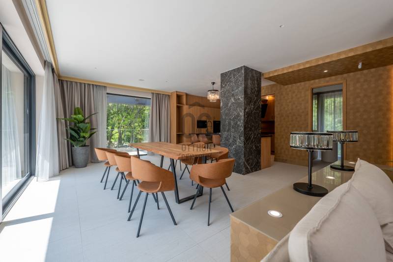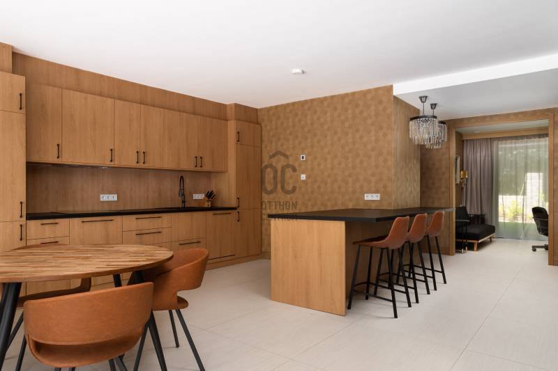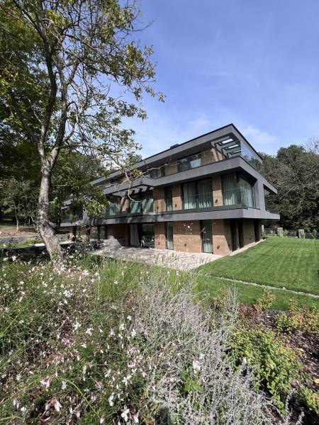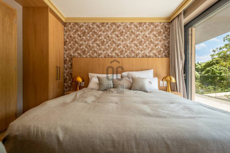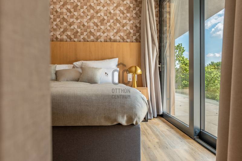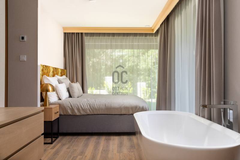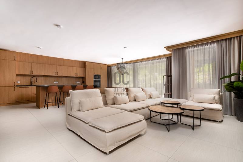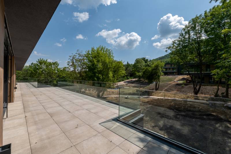 322 m2 saját kertkapcsolatProjekt bemutatásaAZONNAL KÖLTÖZHETŐ!Zöld környezet, intimitásHárshegy legintimebb részén, a XII. kerület tőszomszédságában, félig az erdőben!A csendes zsák utca a II. kerület legzöldebb és legcsendesebb utcája!A minimál stílusban épülő lakások teljesen berendezve, az egyik legismertebb belső építész tervei alapján kerültek átadásra, a látványterveknek megfelelően, átlag fölötti minőségben egy számos referenciával rendelkező beruházótól.A hatalmas üvegfelülettel tűzdelt benapozott élhető lakások padlótól mennyezetig futó nyílászárókkal minimál stílusban hatalmas teraszokkal kerülnek kialakításra, a természetvédelmi terület ölelésében.Az épületből kilépve vagy akár a teraszra kiülve a madárcsicsergésen felül az erdei friss levegő elfeledteti a stresszes mindennapokat. A teljes ellazuláshoz hozzájárul a projektben épülő épületek közti poolhouse, amely medence szolgáltatását a 3 kis épület lakói vehetik igénybe.A földszinti lakásoknál privát kertkapcsolat, az emeletieknél nagyméretű terasz.Az épület műszaki felszereltsége tükrözi a minőséget: a külső falak, 38 cm-es Porotherm téglából, a válaszfalak Ytongból,a lépcsőház és lakásokat elválasztó falak hanggátló téglából készültek.- hőszivattyús rendszerrel táplált padlófűtés és mennyezet fűtés és hűtés- hatalmas alumínium nyílászárók 3 rétegű üvegezéssel- több ponton záródó biztonsági ajtók- Smart Home rendszer - A szaniterek, burkolatok, belső ajtók, bútorok, ágyneműk, függöny stb. mindent tartalmaz a vételár, tulajdonképpen csak a ruhákat kell vinni- Az alapfelszereltség részét képezi a hatalmas alumínium lamelákkal rendelkező motoros zsalúzia is.Az amerikai, francia, spanyol iskola 10-15 perc. A Széll Kálmán tér 10 perc.A közelben megtalálható minden szolgáltatás (vegyesbolt,bevásárlóközpont, egészségügyi szolgáltatások, sportolási lehetőségek) A lakásokhoz 2 db garázshely és 1 db tároló kötelezően vásárolandó.