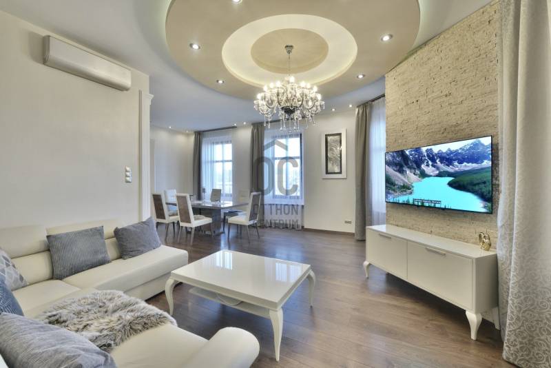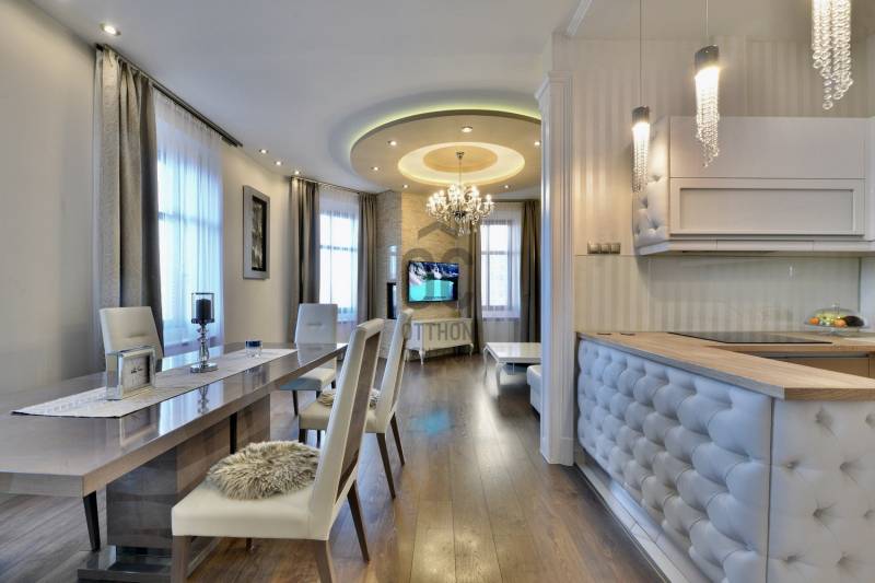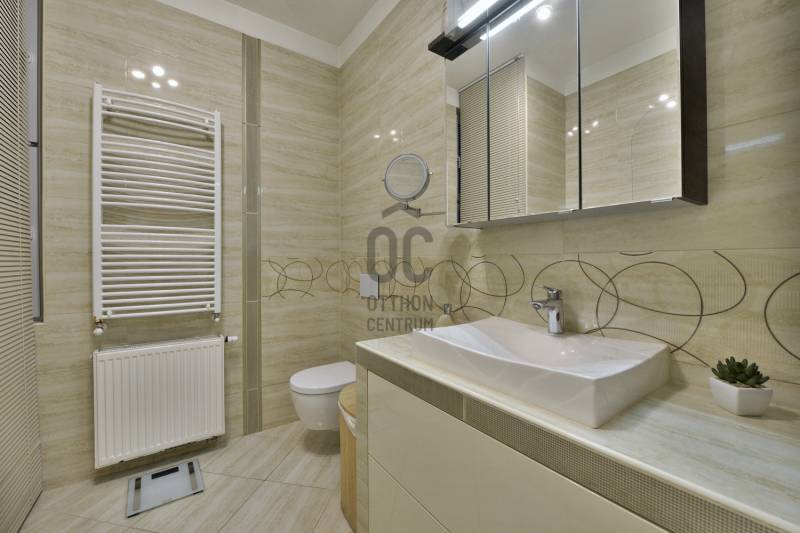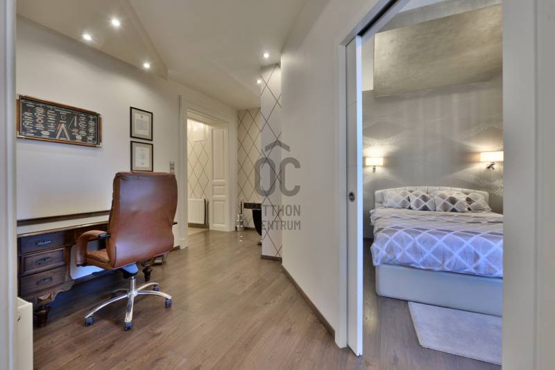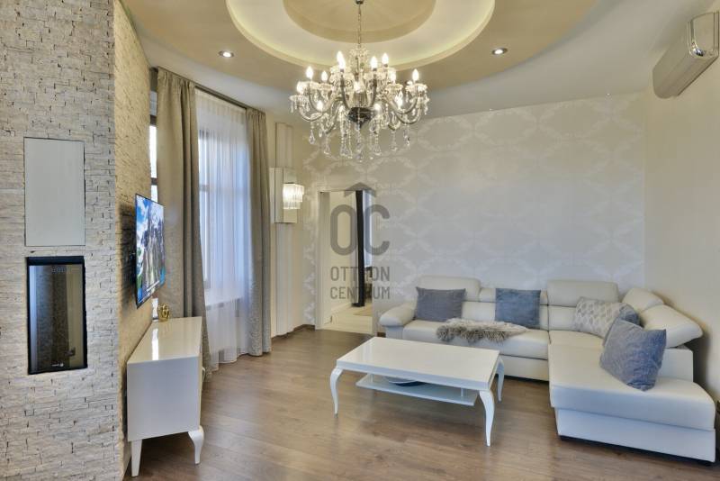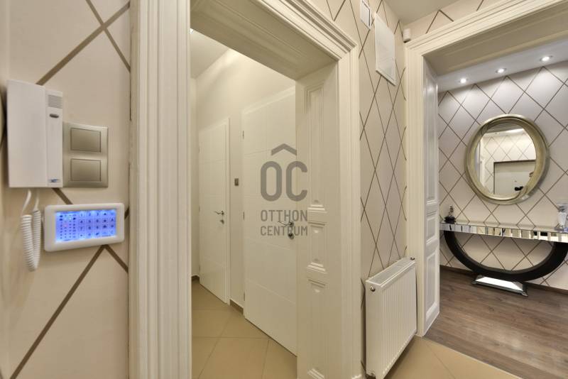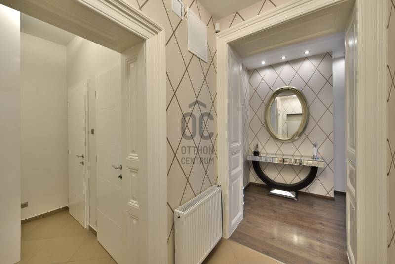 A lakás belsőépítész által egyedien megtervezett és prémium anyagokkal felújított 2014-ben teljes körű felújításon esett át, ami magában foglalja: új szigetelt padló betonalapot, új villanyvezetékeket mindenhol, vadonatúj nyílászárókat, biztonsági bejárati ajtót, áramkapacitás bővítését, szigetelést a plafonban és az oldalfalakban is, gázkazán kiépítését, modern életterek kialakítását, új beltéri burkolatokat és ajtókat. Max City-s elegáns tapétákkal és belső burkolatokkal, tágas és világos helyiségekkel, nagypolgári térérzettel.A felújítás során kialakításra került :- nagy gardróbszoba,- hálószoba, - dolgozósarok, - 40 nm-es nappali-konyhával együtt,- vendégszoba, illetve - egy-egy tároló-mosó helyiség.Saroklakás, utcai nézetű, zárt lépcsőházból nyílik.Rendkívül világos 6 db nagy, utcai ablaknak köszönhetően, nem található épület előtte a fronton, ami takarná a kilátást, és nem is építhető elé egyéb ingatlan.A gépesítés az ár részét képezi: teljesen felszerelt konyha kb. 6 millió forintos jelenlegi értéken, gardrób-szekrények kb 3 millió forintos jelenlegi értéken, lámpatestek. A nem beépített bútorok nem a vételár részei.Biztonság: extra biztonsági ajtó (gyártó: DTP) + riasztóA ház homlokzata 2000-ben teljesen meg lett újítva. A lépcsőház teljes körű felújítása ezekben a hónapokban zajlik (szigetelés, festés, nyílászárók felújítása)A lakáshoz opcionálisan bérelhető teremgarázs hely kb. 100 m-re a lakástól.Opcionálisan a ház pincéjében egy kb 15 nm-es felújított tároló is megvehető a lakáshoz, amelynek további 5 millió forint az ára.