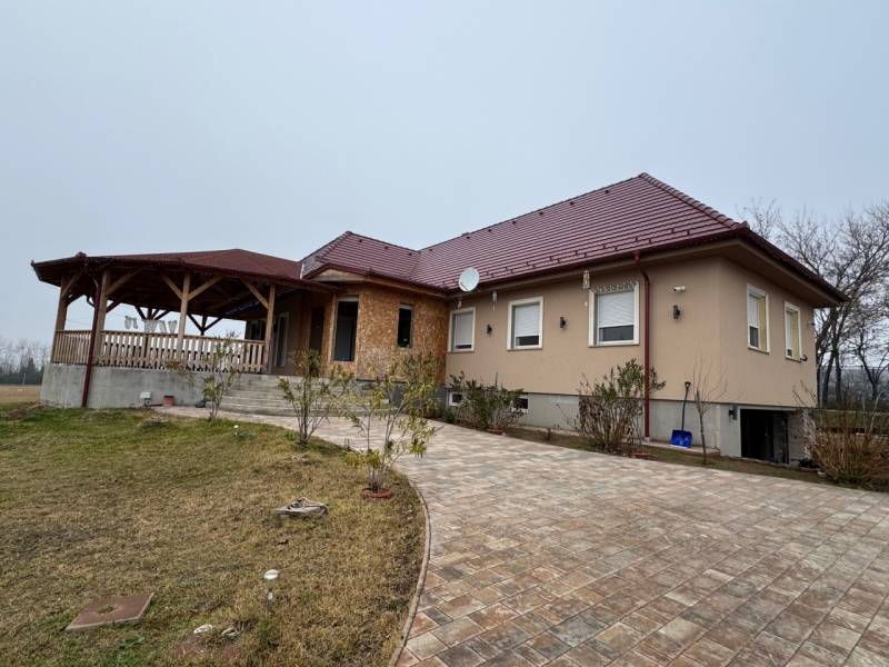 Otthonok és megoldások.Kecskemét, Talfája külterületi részén, a Tesco közelében, kertvárosi övezetben, 1,2 Ha területen 145 nm, nappali + 4 szobás, 5 éve épült családi ház eladó.A házban gépesített konyha, 5 darab hűtő-fűtő légkondicionáló, gázkazán padlófűtéssel, cserépkályha, riasztórendszer, kiépített kamerarendszer található.A területen 25 KW-os napelempark lett kiépítve, ami nullás villanyfogyasztást eredményez. A ház alatt 85 nm burkolt, pince-garázs található, 80 nm terasz, beépíthető 100 nm padlástér kiváló lehetőség nagycsaládosok részére.Az épület kivett udvar besorolású, a terület szántónak van minősítve egy helyrajzi számon. Alkalmas lótartásra, vagy bármilyen kisebb mezőgazdasági célra. Körbe van teljesen kerítve, a bejutás két kovácsoltvas, távirányítható kapun keresztül lehetséges.A telken 50 méter mély fúrott kút van.CSOK-ra és hitelre alkalmas az ingatlan.Ha felkeltettem az érdeklődését, tekintse meg velem!