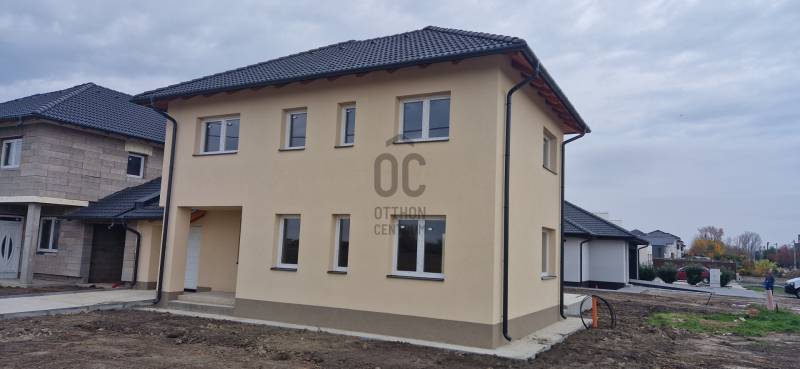 Debrecenben a Tégláskert új házakkal beépült részén, a Gázvezeték utcai forgalomtól távol, eladó egy nettó 187 m2-es, nappali-amerikai konyha + 5 szobás intim ikerház, ahol csak a garázsok érnek össze, de dupla falazattal és köztük hanggátló szigeteléssel, közel 500 m2 telekrésszel.A kivitelezés jelenleg szerkezetkész állapotban van, külső vakolás kész, a színezés után a belső munkák folytatódnak. A nyílászárók beépítésre kerültek és a tető is elkészült. A végleges belső kialakítás jelenleg még változtatható, igény szerinti helyiséglista megvalósítható. Alapból két fürdőszoba lett tervezve és három WC, de a nappali + 5 szobához az emeleten kialakítható egy harmadik fürdőszoba is, épített zuhanyzóval vagy káddal is.Az ár kulcsrakész állapotot takar, amelybe 5 kW napelemes rendszer, 12 kW hőszivattyús rendszer, térkőburkolatok és elektromos autó töltő állomás kiépítése is beletartozik. Részletes műszaki tartalommal és megtekintési időponttal kapcsolatban várjuk hívását a hét minden napján! Az ingatlanból az adásvételi szerződés megkötését követően 4 hónap múlva új otthona lehet!