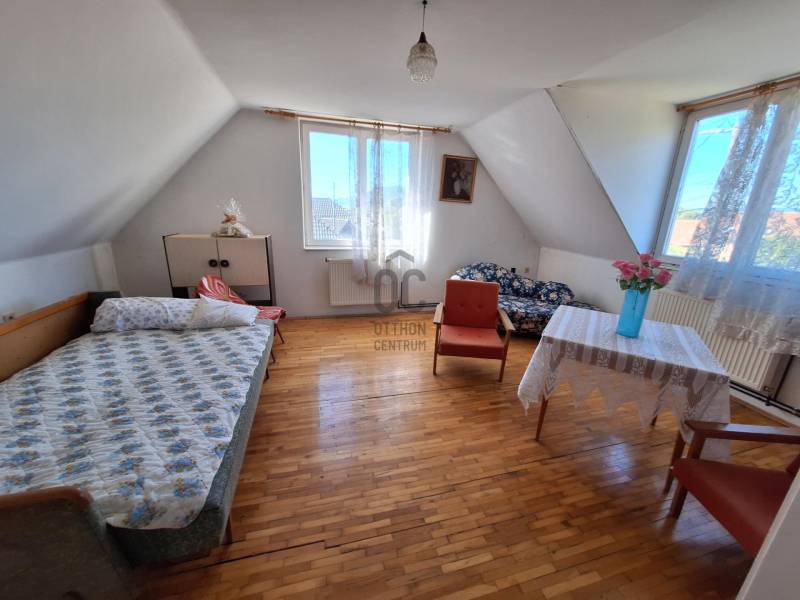 Tapolca déli részén, nagyszerű otthonná alakítható családi ház eladó!Csendes környezetben, de mégis közel a központhoz eladó vált egy tágas, nagy családi ház. Az ingatlan könnyen megközelíthető, iskola, óvoda, bevásárlási lehetőség is a közelben, akár gyalogosan is könnyen elérhetőek.A 471 nm-es belterületi, körbekerített telken álló ház két szinten összesen 150 nm. Ehhez került még hozzáépítésre egy fedett garázs, valamint tároló, ahol a kazánház is található.A ház alsó szintjén teraszon át lépünk be a házba, ahol egy nagy előszoba található, melyből 3 nagy tágas szoba nyílik. A konyha étkezővel és spájzzal, valamint a fürdőszoba is a földszint része. A teraszról pedig még egy külső tároló is elérhető.Az emeleten 3 gyönyörű, világos, nagy ablakos szoba és egy fürdőszoba, valamint 2 Wc is található.A déli szobák ablakából szép, a Szent-György hegyre néző panoráma tárul elénk.Az ingatlan melegét radiátorok adják, a fával való fűtésről egy vegyes tüzelésű kazán gondoskodik.Amennyiben kérdése merülne fel az ingatlannal kapcsolatban vagy szeretné azt megtekinteni, kérem keressen amegadott elérhetőségek egyikén!