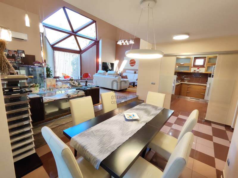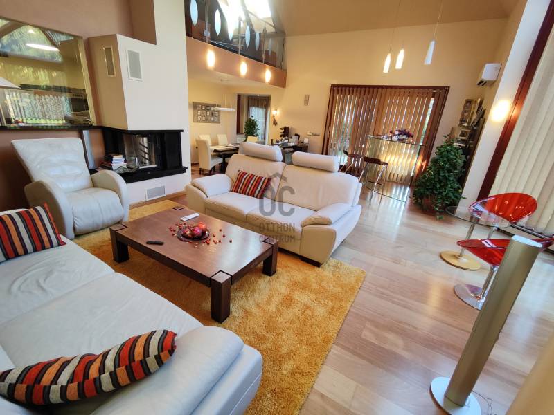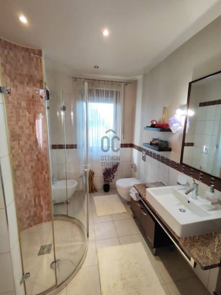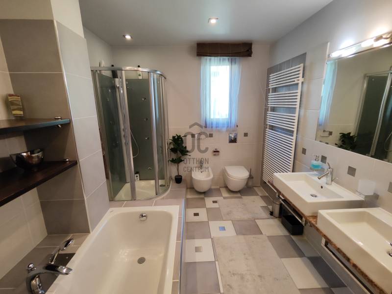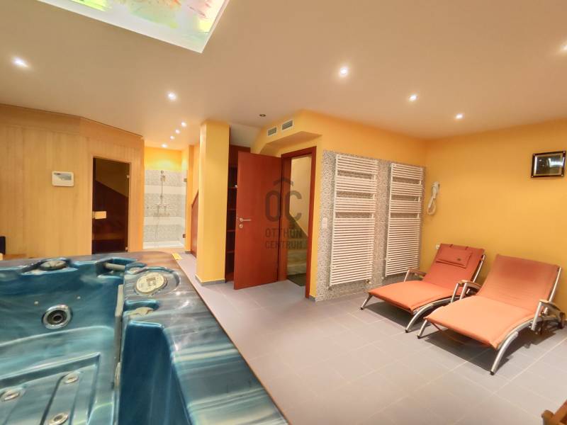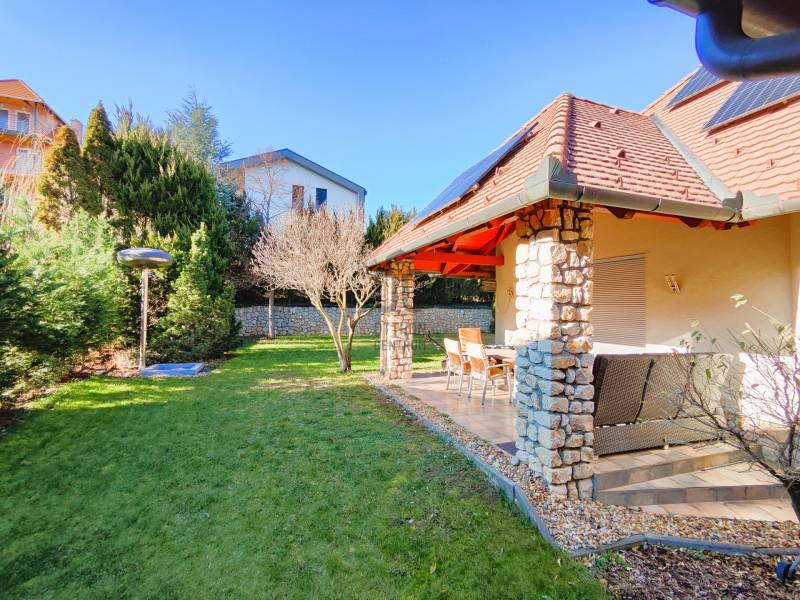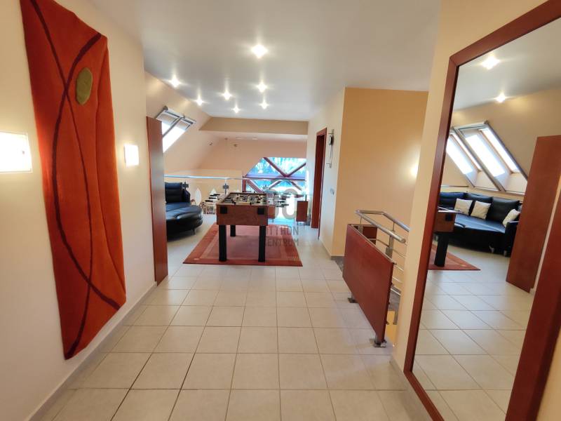 Kiemelt megbízás irodánk kínálatában!Eladásra kínálom Hévíz egyik legkedveltebb utcájában található remek kialakítással rendelkező igényes családi házat!A ház melegéről gáz-cirkó fűtés, padlófűtésen és radiátorokon keresztül, illetve hűtő-fűtő klímák gondoskodnak. A ház tetején napelemeket helyeztek el, a garázsban elektromos autótöltő is helyet kapott.A ház riasztóval és kamerarendszerrel is rendelkezik, az udvaron automata öntözőrendszer található.A földszinten: előszoba, tágas nappali, terasz, konyha, étkező, közlekedő, fürdőszoba, WC/kézmosó, 3 szoba, melyből az egyik gardróbszobával és fürdőszobával is rendelkezik.A felső szinten: nappali, fürdőszoba, mosókonyha, közlekedő, dolgozószoba, 2 szoba, melyből egy erkélyes.A pinceszinten: wellness részleg szaunával és edzőteremmel, WC/kézmosó, dupla garázs, tároló és kazánház kapott helyet.Ha a hirdetés felkeltette figyelmét, megtekintés céljából hívjon bizalommal!Hévíz:Az Ön által kiválasztott ingatlan a Nyugat-Balatoni Régióban 8 km-re a Balatontól található. Így bármely évszak legyen, bármely korosztály számára kikapcsolódási lehetőséget jelenthet ezen fürdők SZÉLES SKÁLÁJÚ WELLNESS SZOLGÁLTATÁSAI! Csodálatos zöld környezetben várja Önt a világon egyedülálló Hévízi gyógytó. A tó körül elterülő erdős parkok és a város védett növényvilága a nyugodt pihenés és gyógyulás záloga. A fürdőváros tiszta levegője és barátságos atmoszférája, az itt-élők vendégszeretet mind fokozzák a gyógyhatást. A tó egész évben várja vendégeit, mivel a víz hőmérséklete télen sem csökken 22 C° alá, nyáron pedig eléri a 38 C°-ot is. A forrásbarlangból másodpercenként előtörő 410 liternek köszönhetően a tó vize három és fél nap alatt teljesen kicserélődik, ezáltal folyamatosan tiszta marad.