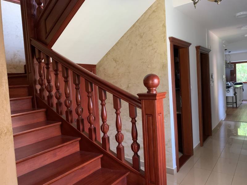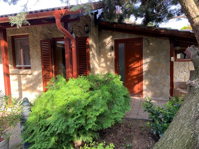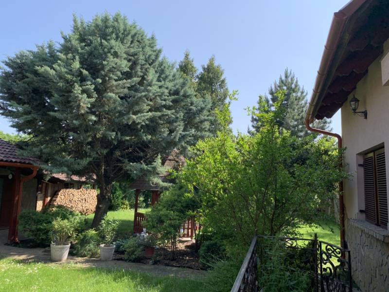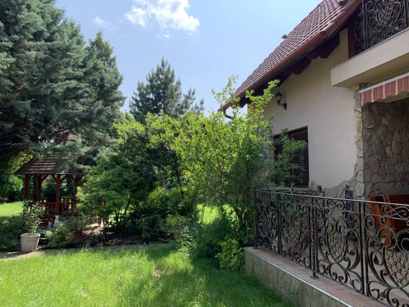 Komárom kedvelt utcájában, a városközpontban, újszerű állapotú, mediterrán stílusú családi ház eladó!Az ingatlan bővítéssel és ráépítéssel érte el jelenlegi méretét. A lakóterület 230nm, melyben 4 szoba és 2 nappali, konyha, 2 fürdőszoba, folyosó, WC kapott helyet. Az egész épületben a fa meleg hangulata dominál. Az emeleten látszó gerendák, a fürdőszobában teakfa burkolat, a fakorlát a lépcsőfeljáróban, az egyedi készítésű fa beltéri ajtók, mind melegséget árasztanak.A tágas konyha beépített bútorzata és Siemens beépített gépei a vételár részét képezik.A lakásban helyet kapott egy kombinált finn-, és infraszauna, mely sótéglával és fényterápiával kiegészített. Az otthoni wellness élményt az emeleti fürdőben található Wellis gőzkabin-tusoló és Wellis fürdőkád teszi teljessé.Az épületen belül helyet kapott egy Hörmann kapuval nyíló garázs, a mellette lévő terület több autó számára biztosít parkolást.A ház fűtését és melegvíz ellátását kondenzációs gázkazán biztosítja, melyet egész évben segítik a tetőn elhelyezett napkollektorok. Az ingatlan padló-, fal-, és mennyezetfűtéssel rendelkezik. A hűtő-fűtő klíma, a cserépkályha és az elektromos kandalló minden évszakban biztosítja a kellemes hőmérsékletet.A fa nyílászárók hőszigeteltek, betörésbiztos üvegezésűek. A földszinten az árnyékolásról fa spalettarendszer, az emeleten automata redőnyrendszer gondoskodik.Az épület kívülről kőburkolatot kapott. A faszerkezet látványa és a kovácsoltvas egyedi hangulatot biztosít.A zárt, parkosított, 901 nm nagyságú telken helyet kapott egy különálló kisház, melyben 1 szoba, konyha és fürdő található. A kerti bútorok és szerszámok tárolását külön épület biztosítja.Gyönyörű látvány az udvar közepén elhelyezkedő tó, melyet rengetek növény ölel körbe.Az ingatlan rendkívül jó elhelyezkedésű, a mindennapi élethez szükséges szolgáltatások, üzletek, iskola, óvoda, buszmegálló, stb. pár perces sétatávolságra találhatók.Kiválóan alkalmas akár több generáció együttélésére, vagy vállalkozás székhelyének.Ha újszerű állapotú ingatlant keres és fontos a belvárosi elhelyezkedés, ez egy remek lehetőség!