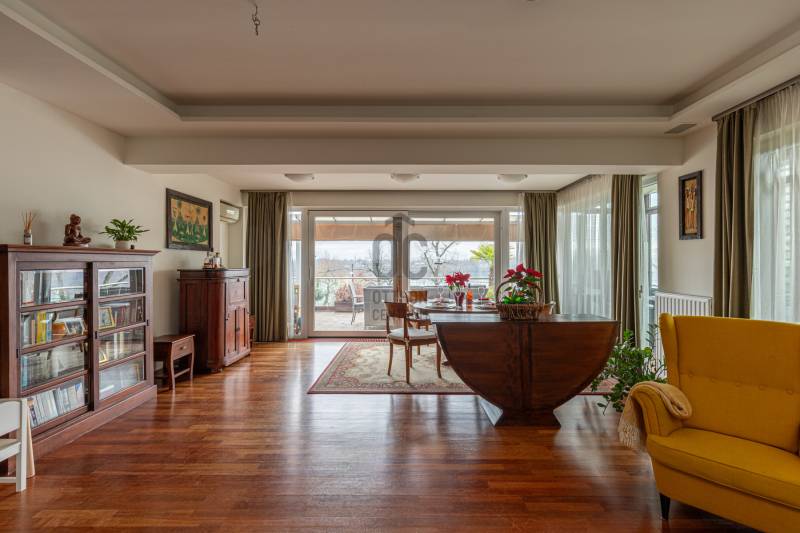 Budapest III. kerületében, a Duna-part egyik legigényesebb lakóparkjában várja új tulajdonosát egy 103m²-es, 3 szobás, 1 fürdőszobás, modern lakás, amelyhez egy lenyűgöző, 60m² -es terasz is tartozik, ahonnan élvezheti a közvetlen Duna-parti panorámát.FŐBB JELLEMZŐK:-Tágas, világos terek prémium burkolatokkal – modern és elegáns kialakítás.-Amerikai konyha: teljesen gépesített, stílusos és praktikus megoldásokkal.-Dolgozószoba: ideális otthoni munkavégzéshez vagy tanuláshoz.-Fürdőszoba: kádas és zuhanykabinos kialakítás az extra kényelemért.-Klíma minden helyiségben: a tökéletes hőmérsékletért télen-nyáron.-Terasz: Élvezze a Duna közelségét, a friss levegőt és a természet nyugalmát!Két teremgarázs beállóhely külön megvásárolható (16 M Ft/db), illetve egy 9m²-es tároló is elérhető (7 M Ft).A RÓMAI WELLNESS OTTHON II. KÉNYELMI SZOLGÁLTATÁSAI:-Wellness részleg: Szauna, fitneszterem és fűthető kültéri medence gyerekeknek kialakított résszel – itt minden nap feltöltődéssel kezdődhet vagy zárulhat, legyen szó pihenésről vagy aktív kikapcsolódásról.-Játszótér a gyerekeknek: A legkisebbek is biztonságban, kellemes környezetben játszhatnak, miközben a szülők pihenhetnek.-Grillező rész: Tökéletes helyszín baráti összejövetelekhez, családi grillpartikhoz.-Gyönyörűen parkosított környezet: Az egész lakópark gondosan karbantartott, dísznövényekkel és zöldterületekkel övezett, melyeket professzionális kertészek ápolnak, hogy a lakók mindig rendezett és igényes környezetben élhessenek.-24 órás portaszolgálat és kamerarendszer: Maximális biztonság és nyugalom minden lakónak.A KÖRNYÉKRŐL – ÉREZD A RÓMAI VARÁZSÁT!A Római-part az a hely, ahol a nyugodt természet és a pezsgő közösségi élet találkozik!-Duna-parti séták: A lakás közvetlen közelében gyönyörű parti sétány várja, ahol friss levegőn, csendes, zöld környezetben élvezheti a természet közelségét.-Szombati termelői piac: Helyi termelők friss zöldségei, gyümölcsei és kézműves finomságai garantálják, hogy mindig kiváló minőségű ételek kerüljenek az asztalra.-Kiváló éttermek és kávézók: A lakóparktól pár perces sétára hangulatos vendéglátóhelyek kínálnak gasztronómiai élményeket, legyen szó egy romantikus vacsoráról vagy családi ebédről.-Sport és szabadidő: A Római-part a sport szerelmeseinek is paradicsom – kajak-kenu kölcsönzők, bicikliutak és szabadtéri edzőterek mind a közelben találhatók.-Nyugodt, családias légkör: Ez a környék tökéletes választás azoknak, akik el akarnak szakadni a belvárosi forgatagtól, de nem szeretnének lemondani a kiváló közlekedési lehetőségekről.-A közelben számos buszmegálló és HÉV is elérhető, így tömegközlekedéssel is rendkívül kényelmesen megközelíthető.MIÉRT EZ AZ INGATLAN?Ez a lakás nem csupán egy otthon, hanem egy életérzés! Egy hely, ahol a modern luxus találkozik a természet nyugalmával. Élvezze a Duna közelségét, a Római-part nyújtotta pezsgő közösségi életet, és a lakópark kényelmi szolgáltatásait.Egyedi igényekre szabott lakáshitelekkel állunk rendelkezésére.Bankfüggetlen hitelcentrumunk az országban elérhető összes bank és hitelintézet ajánlatát versenyezteti az Ön számára díjmentesen.Munkatársaink nagy szakmai tapasztalattal várják Önt az előre egyeztetett időpontban akár a normál munkaidő után is.Bővebb információért és a megtekintéssel kapcsolatban hívjon bizalommal!