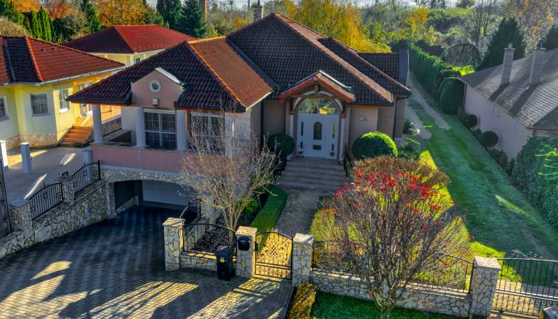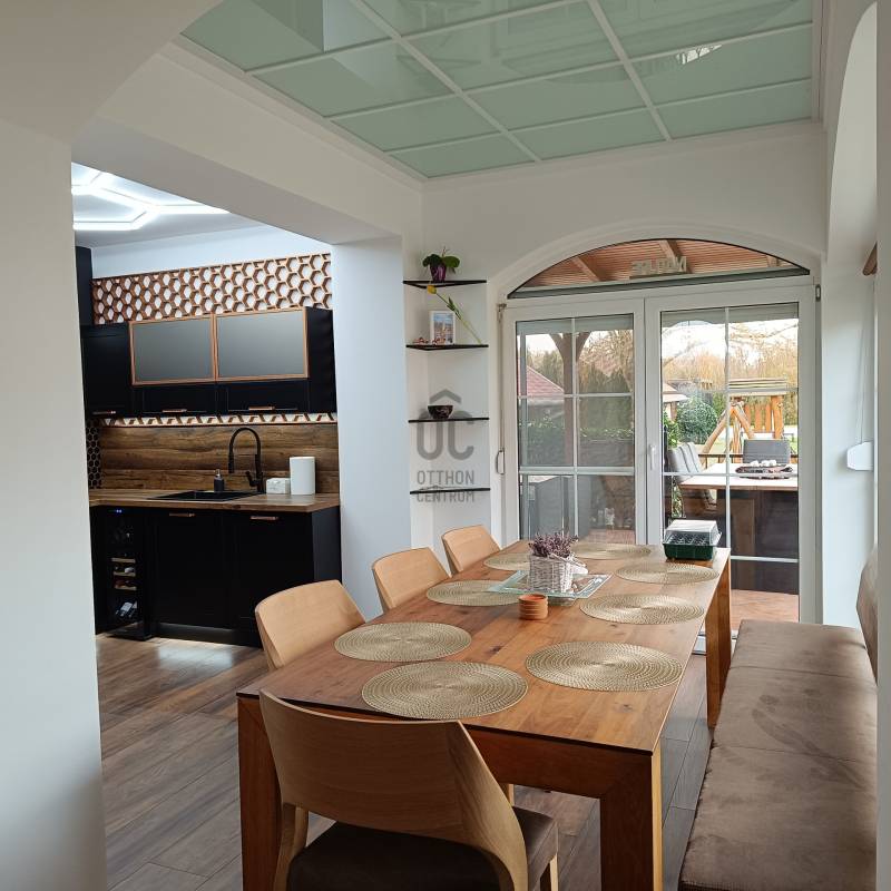 Nagykanizsa legvonzóbb kertvárosi részén földszintes 210 m2-es családi ház, úszómedencével, igényes kialakítással ELADÓ!Nagykanizsa legkedveltebb kertvárosában kínálom megvételre az alábbi prémium minőségű családi házat, a hozzá tartozó 1528 m2 területtel.Csendes, nyugodt mellékutcában, Palin kellemes lakó-pihenő zöld övezetében helyezkedik el az ingatlan. Kedves, barátságos, segítőkész fiatal szomszédság jellemzi a környéket.A kertvárosban óvoda, általános iskola, játszótér, élelmiszer bolt, pizzéria, pékség, gyógyszertár, orvosi rendelő, szolgáltató egységek működnek.Tökéletes választás minden korosztály számára, hiszen innen a városközpont 5 km távolságon belül elérhető, végig kerékpárúton megközelíthető.Ajánlom mindazoknak, aki luxus minőségű ingatlant keresnek, tágas, világos terekkel, hatalmas üvegfelületekkel, energiatakarékos - alacsony rezsi költséggel.Tökéletes elosztásával, prémium minőségű hideg-és meleg burkolatokkal, egyedi tervezésű megoldásokkal igazi gyöngyszem a piacon.Az ingatlan jellemzői:- 2005-ben épült, magas műszaki tartalommal- 210 m2 hasznos alapterületű- a földszint + pinceszint helyiségei: 3 hálószoba, nappali, konyha, étkező- terasz kapcsolattal, előszoba, közlekedő, gardrób, mosókonyha, 2 fürdő-WC-vel, 1 WC, lépcsőfeljáró, garázs stb.-2023-ban felújításra került a konyha, fürdőszobák, WC, előszoba prémium minőségű spanyol burkolatokkal- 3 fázis rendelkezésre áll /3 x 25 A/- ablakok hőszigetelt műanyag szerkezetűek, rolóval, szúnyoghálóval és árnyékolóval felszereltek- a ház fűtését Vaillant gázcirkó kazán végzi, mellyel a helyiségek kellemes temperálását gazdaságosan működteti - hűtő-fűtő klíma a szobákban, nappaliban- a ház riasztó rendszerrel ellátott- öntözőrendszer külön vízórával felszerelt - külső homlokzat 10 cm vastag szigetelést kapott- a ház hátsó, dél- nyugati részén 20 m2 fedett terasz került kialakításra, közvetlen udvar kapcsolattal- CSOK, HITEL igényelhető, melyet bankfüggetlen hitelszakértőnk ingyenesen bonyolít irodánkban A ház alatt található 30 m2 dupla garázs, a házon belül is elérhető, mely elektromos kapuval ellátott. Az udvar 1528 m2 nagyságú, melyen épített, fedett kerti kemence kapott helyet. Az udvar további részén 2023-ban egy impozáns 30 m2 nagyságú úszómedence is kialakításra került. Mellette egy 25 m2 csodaszép fedett kerti pihenőhely biztosítja a családi és baráti összejövetelek önfeledt kikapcsolódását és pihenését.A kertben egy 75 m2 melléképület dupla garázzsal és tároló funkcióval is bővült.Öntöző rendszer kialakított.A telek teljesen körbe kerített, tujasorral beültetett. Ebben a csodaszép házban, minden álma valóra válhat, ne maradjon le róla!Ha hirdetésem felkeltette érdeklődését, várom hívását!Irodánk teljes körű, ingyenes szolgáltatást nyújt kereső ügyfeleinknek.Szakszerű tanácsadással, hitel ügyintézéssel, energetikai tanúsítvány elkészítésével és kedvező díjszabású ügyvéddel nyújtunk segítséget.