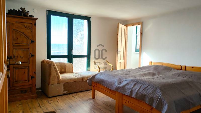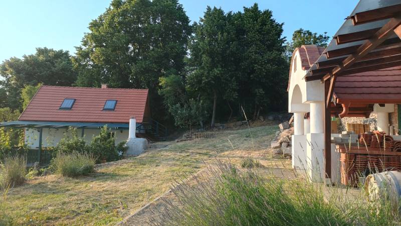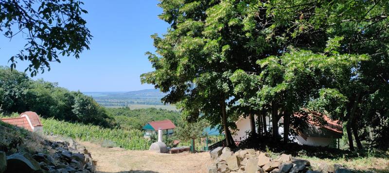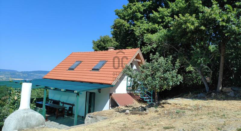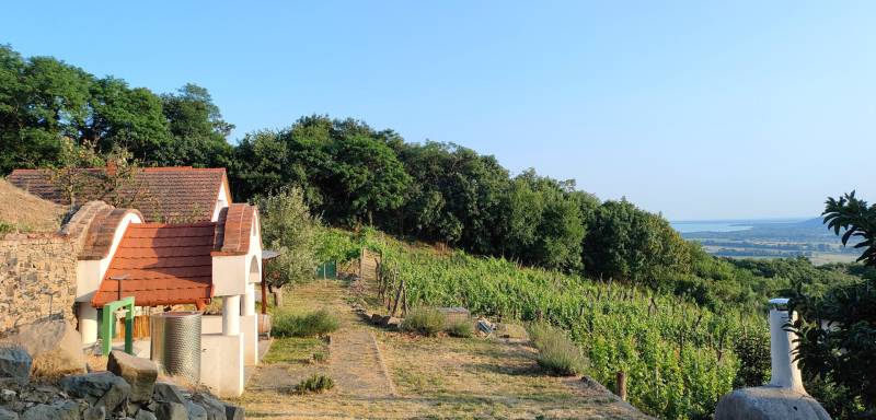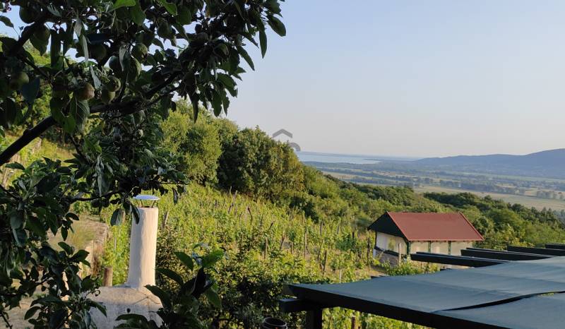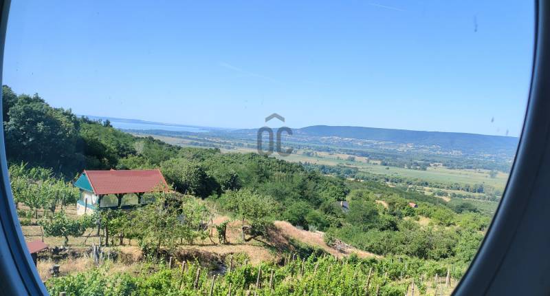 Szent György-hegyen Balatonra örök panorámával bíró varázslatos birtok, amiről mindenki álmodik!Kiemelt megbízás kizárólag az OTTHON CENTRUM kínálatában!Az ingatlanpiacon évről évre felértékelődő Badacsonyi borvidék egyik kiemelkedő gasztro, bor és turisztikai lokációja a Szent György-hegy, melynek nyugati oldalán helyezkedik el ez a különleges fekvésű présház nyaralós ingatlan.A hegyre felvezető aszfaltozott dűlőút mentén egy idő után elfogynak a présházak s amikor már csak az erdő ölel körül bennünket minden oldalról, akkor érkezünk meg ehhez a kivételes adottságú, több szintes, jó állapotú birtokhoz.A természetközeli présház és a különálló hatalmas, 60 m2-es, varázslatos hangulatú, remek állapotban lévő kereszt alaprajzú, teljesen föld alatti borospince elvehetetlen panorámával rendelkezik a Balatonra és a környező hegyekre. A jó gazda által folyamatosan gondozott minőségi borszőlőnek és a vételár részét képező komplett borászati felszerelésnek köszönhetően akár már ebben az évben is a saját borát kínálhatja szeretteinek és barátainak!Az egész terület rendkívül otthonos és hangulatos, tökéletes nyugalmat és intimitást sugároz az erdőkkel körülölelt telek, a hangulatos épület, a gondozott szép szőlősorok ~ pontosan azt a \"Balatoni életérzést\" adja amit oly sokan keresünk s amelyet évről évre egyre kevesebb eséllyel találhatunk meg ebben a térségben. Mára általános a szőlőhegyeken a sűrű beépítettség, az egyre csökkenő szőlős vagy erdős terület ~ mindez ezen az ingatlanon másképp van.Az új tulajdonosa ennek a birtoknak nem egyszerűen egy ingatlant vásárol, ennél sokkal többet kap, olyasmit is, amely pénzben nehezen kifejezhető.Jöjjön el és élje át, tapasztalja meg ezt az élményt!Az épület az elmúlt években szinte teljes körű felújításon esett át, mely érintette a burkolatokat, nyílászárókat, gépészeti és elektromos rendszereket, tetőszerkezetet.A 19,2 m2-es pinceszinten jelenleg egy tároló van. A földszinten egy 12 m2-es konyha-étkező, egy 17,6 m2-es szoba és az abból nyíló 6,4 m2-es hálószoba kaptak helyet, valamint a konyhából nyílik még egy 5,4 m2-es mosdó-zuhanyozó-wc vizesblokk és egy 2,1 m2-es kamra is. A kívülről lépcsőn megközelíthető padlástérben egy, az erdőre és a Balatonra is panorámás 31,3 m2-es nagy belmagasságú hálószoba található. Az épület vízellátását bő és állandó vízhozamú 100 éves kút biztosítja. Ha kedvünk támad a szabadban sütögetni, úgy az egyedileg épített kerti kemencében is megtehetjük, amely csak pár lépésre helyezkedik el a nyaraló előtti 28 m2-es burkolt, árnyékolt terasztól. Az ingatlan két helyrajzi számon, az alábbi adatokkal nyilvántartott. Egyik telek 1375 m2 nagyságú, szőlő művelési ágú, a másik 2258 m2 telekterületű, szőlő, fásított terület és gazdasági épület megnevezésű.Az ingatlan a mellette található, önálló helyrajzi számmal rendelkező 2766 m2 területú, szőlő és gazdasági épület megnevezésű - rendszerünkben NY012263 regiszrációs számmal szereplő - birtokkal együtt is megvásárolható, aminek eredményeként egy rendkívüli, egyedülálló birodalom tulajdonosává válhat!Ilyen adottságú eladó területet manapság már nehezen találhatunk itt a Szent György-hegyen, de az egyre szigorodó építési előírások és kötelmek miatt építeni még kevésbé tudunk.Befektetésnek, turisztikai kiadásban gondolkodóknak, szőlészeti gazdálkodóknak és családi nyaralónak egyaránt kitűnő választás.A szőlős birtok a földtörvény alá eső ingatlan, így kifüggesztés köteles, a hatósági eljárást követően azonban azonnal birtokba vehető és hasznosítható, de az esetleges átépítési elképzelések kapcsán az építész tulajdonos is tud javaslatokat adni.Ha felkeltettem érdeklődését hívjon bizalommal, a hét minden napján szívesen megmutatom, amíg még elérhető a kiváló ajánlat!