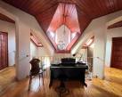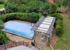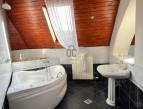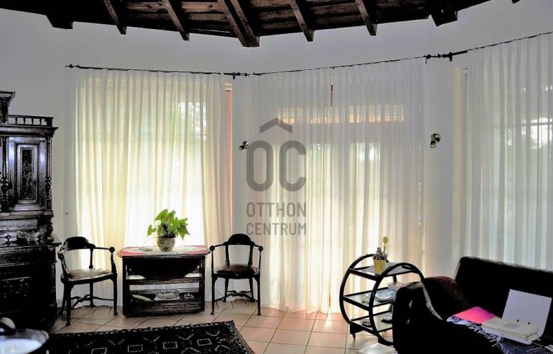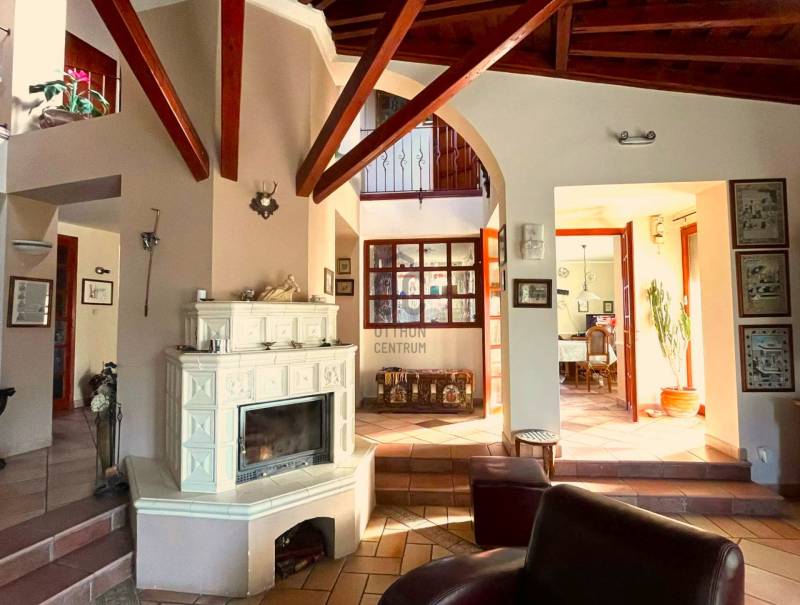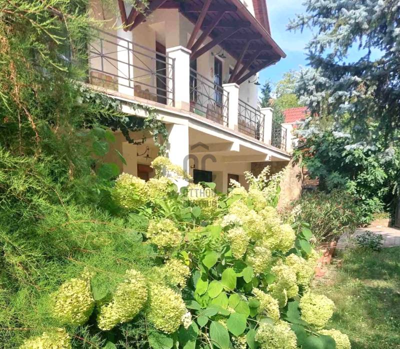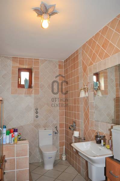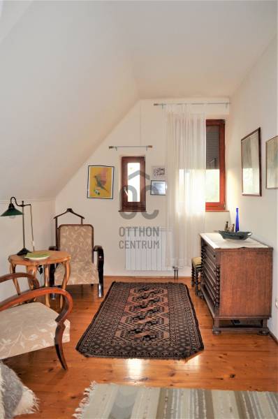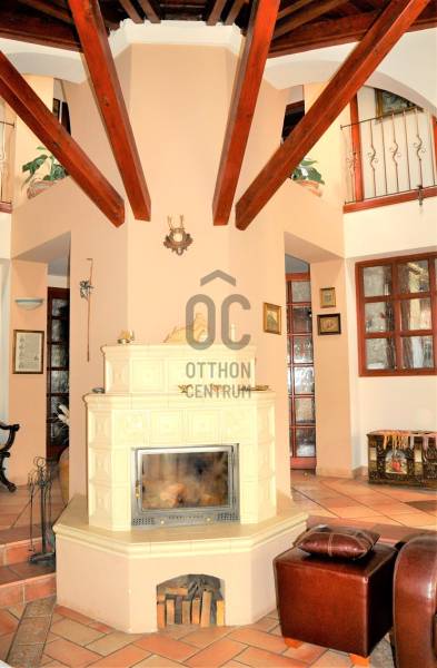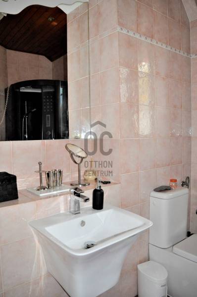 Eladó Telkiben, csendes mellékutcában, DNy-i fekvésű, nettó 300 nm (csak lakóterület) bruttó 410 nm (garázzsal, terasszal, plusz egyéb) kitűnő állapotú, luxus családi ház. Az egyedi belső tér elosztású ingatlan jellemzői az igényes kivitelezés, kiváló; - minőségi anyagok, tágas világos terek. A földszinten nappali, étkező-konyha, nagyméretű szoba, fürdőszoba, WC-kézmosó, kamra, közlekedő, előszoba és hatalmas terasz található. A nappaliban kandalló, a konyha közelében kéménybe kötött grillező lett kialakítva. a Tetőtérben közlekedő, kettő hálószoba, kettő fürdőszoba, galéria és loggia van. A szuterén szinten szobákat, gardróbot, háztartási helyiséget, fitnesz helyiséget (szaunával, zuhannyal), WC-kézmosót, tárolót, egyéb helyiséget, közlekedőt, fürdőszobát (zuhany és pezsgőfürdő), és fedett teraszt találunk. A kertben medence van gépészettel kialakított, fűthető. Extraként említésre méltó a ház teljes szigetelése, automatizálás, redőny, szúnyogháló, naproló, nappaliban kandalló, különleges burkolatok és szaniterek, egyedi bútorok és konyhai gépek, Viessmann kazán, hőszivattyú, riasztórendszer, biztonsági rendszerek és elemek, kaputelefon. A gondozott, parkosított kertben válogatott örökzöldek, lombhullatók, cserjék, virágok, sziklakert található. A kertben még kialakításra került egy méretes terasz pergolával (árnyékolóval). A garázs előtt nyitott, térkövezett beálló van, kettő autó parkolására alkalmas.