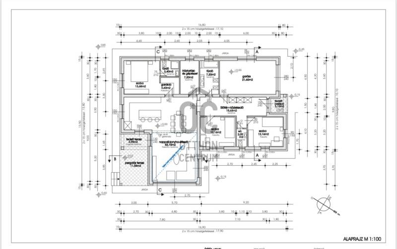 Budajenő Templomvölgy villaparkban 2800 m2-es saroktelken 3 darab önálló családi ház épül,melyeknek műszaki tartalma az alábbiak szerint kerül kivitelezésre. A kivitelezésnek vannak olyan részletei, melyek eltérnek a kivitelitervdokumentációtól, ezen esetben a műszaki tartalom mérvadó. Megjegyzendő, hogy ezen eltéréseka korszerűbb anyagok felhasználása, és a tapasztalatból adódó jobb és praktikusabb élhetőség miattkerülnek változtatásra. A családi házak osztatlan közös telken (használati megosztással) önálló egységként körbe kerítve kerülnek értékesítésre.Várható átadás 2025 december, de ez értékesítés esetén lehet korábbi időpont!Épületszerkezet kialakítás:- 50 x 80 cm vasalt gerenda sávalap betonozva, teherhordó talajszerkezetre- 30 cm széles vasalt zsalukő lábazat betonozva, melyet 15 cm vasalt lemezbeton köt össze- 30 cm vastag Wienerberger Porotherm 30 N+F vázkerámia tégla ( ún. okostégla )- 15 x 15 cm – es gerendázott födémszerkezet, padlástér teljes felületén borított- állószékes, kiszellőztetett tetőszerkezet, antracit szürke „sima” betoncserép borítással.- a talajjal érintkező teljes aljzat ( alsó vízszintes konstrukció ) 35 cm vastagságúVíz- és hőszigetelések:- a 15 cm – es vasalt lemezbeton teljes felületén egy rétegű GV 45 bitumenes lemez,lángolvasztással rögzítve, talajpára ellen.- padlószerkezetben 10 cm vastag EPS lépésálló hab.- az épület külső lábazat részén, a „hóhatár” ( 40 cm ), függőlegesen egy rétegű GV 45 bitumeneslemez, lángolvasztással rögzítve, külső csapadékvíz ellen- külső falazatokon ( homlokzaton ) 15 cm vastag EPS grafit hab, lábazat ( alsó ) részen 30 cmmagasságig 15 cm vastag XPS ( zárt cellás ) hab, vízfelszívás ellen.- födémszerkezetben 30 cm vastag kőzetgyapot hőszigetelés- vizes helyiségekben kent vízszigetelés, feszültségmentesítő lemezzelNyílászárók, redőnyök:- kívül antracit szürke, belül fehér színű 5 légkamrás, több ponton záródó műanyag szerkezetek- a nappali szoba – terasz kapcsolattal, ugyanezen szerkezet, emelő-toló kivitelben- az alakos ( felül háromszög ) fix üvegfal, ugyanezen színekben, de alumínium szerkezettel- bejárati ajtó több ponton záródó, ugyanezen színekben, de alumínium szerkezettel- minden nyílászáró ( kivétel: bejárat ajtó és garázskapu ) rejtett redőnyszerkezettel, lefutósínekkel, motoros működtetésre előkészítve. A műanyag vagy alumínium palást rendelhető.- kültéri párkányok alumínium antracit színben, belső párkányok műanyag fehér színben- beltéri nyílászárók, utólag szerelhető tokszerkezettel, 150.000.- Ft/db értékhatárig választható( a 160 m2 alapterületű házaknál a belső tolóajtó 350.000.- Ft/db értékhatárig választható )- Garázskapu EcoTor 40 3000x2465mm hőszigetelt szekciónált kapu, RAL7016 antracit, bordanélküli, sima felületű motoros működtetéssel 2 db távirányitóval.Burkolatok:- beltéri hideg- és melegburkolatok 14.000.- Ft/m2 értékhatárig választható- kültéri térkőburkolat 8.000.- Ft/m2 értékhatárig választható- poziơv sarkokon élvédővel, flexibilis fugával, negaơv sarkokban sziloplaszttal- melegburkolat 3 rétegű keményfa svédpadló, lábazata színazonos keményfa- konyhába kérhető meleg- és hidegpadló isFalak kül- és beltérben:- nemesvakolat – kétszeri glettelés – rabic háló – hőszigetelő lemez ( dűbelezve ) - falszerkezet –cementes vakolat – kétszeri glettelés – kétszeri festés- külső homlokzat nemesvakolat világos színben, alsó lábazat műgyanta sötét színben- beltérben ( Poli-Farbe Intaller ) egységesen fehér, a fehér színtől és ezen anyagtól eltérő színesfelületképzés külön ajánlatot képezElektromos rendszer:1. Elektromos rendszer- az ingatlant 3X32A árammal lesz megtáplálva- H tarifa órára az előkészítés kiépítése- szobánkként 1 lámpa és 1 kapcsoló valamint 4 konnektor kiállás, 1 db tv, 1 db int.- fürdőszobába 2 kapcsoló 2 lámpa és 2 konnektor kiállás valamint elektromos törülközőelektromos megtáplálása- nappaliba 1+1 alternatív kapcsoló, 2 lámpa és 8 konnektor kiállás, valamint internet és tvkábelek kiállásai- konyha-étkezőbe 2+2 alternatív kapcsoló, 2 lámpa és 8 konnektor kiállás plusz a sütőnekés a tűzhelynek egy külön, erősebb áramkör- előszoba és toalettben 1 kapcsoló, 1 lámpa és 1 konnektor- bejárat előtt 1 db lámpakiállás és egy kapcsoló- külső világítás 4 db lámpakiállás 2 db kapcsoló 2db konnektor- nyílászárókon motoros redőnyökre előkészítés 230V kiépítése- gyengeáramú szerelés: internet, tv, riasztórendszer, kapucsengő részére falban,védőcsőbe helyezett vezetékekkel.- Wifi hálózat kábelezése 2db végpont kiépítése- riasztórendszer kábelezése szobánkként mozgás érzékelőre,- kaputelefon audios rendszer beltéri egység a nappaliban elhelyezve.- külső kapu motorizálva alakítjuk ki ami a garázs távirányítójáról fog működni.- villámvédelem: 28/2011 (IX. 6.) BM rendelet szerint a 20 m-nél alacsonyabb épületrefelfogót és levezetőt nem kell kiépíteni.Gépészeti rendszer:1. Fűtési/ hűtési rendszer- a fűtést, hűtést és a melegvizet 1 db Panasonic Aquarea T-CAP All in One háromfázisú hűtőfűtő levegő víz hőszivattyú biztosítja- energiahatékonyság: fűtésnél: A+++-használati melegvíz készítésnél: A+- a hőszivattyú beltéri egysége gyári 180 literes rozsdamentes acél használati-melegvíztartállyal rendelkezik.- berendezés Wi-fi modullal ellátva, így mindig bárhonnan elérhető és vezérelhető- helyiségek fűtését mindenhol padlófűtés biztosítja. Vezérlést Wavin Sentio automatikairendszerrel oldjuk meg, mely a wavin sentio applikációval neten ker