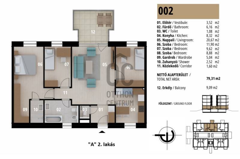 \"A\" épület fszt.2. lakás: 89.555.714.- + ÁFA- nappali- 3 hálószoba- konyha-étkező- 2 fürdőszoba- külön WC - kézmosóval- erkély (10 nm).Projekt bemutatásaKIVÉTELES LEHETŐSÉG DEBRECENBEN, ÁPRILISBAN KÖLTÖZHETŐ!* Vásároljon úgy lakást, hogy visszaigényli a vételár 5%-át és így, akár be is bútorozhatja otthonát! OTTHON VAGY BEFEKTETÉS A BELVÁROSTÓL 5 PERCRE!* Modern, fiatalos, gépesített konyhabútorral beépített lakások már költözhető állapotban!Debrecen rohamosan fejlődő részén, a Belváros közelében, 7 épületből álló lakópark épül, melynek első üteme befejeződött.A 28 lakásos, liftes, modern társasházban kínálunk új építésű, erkélyes lakásokat.A nappali +1 háló (46 nm) 59,9 MFt, nappali + 2 háló (69 nm) 82,7 MFt és nappali + 3 háló (85 nm) 94 MFt-ért választhat otthont saját részre vagy befektetési céllal.Garázs (9,5MFt), felszíni parkoló (4,9MFt), tároló (1,68MFt) vásárolható hozzá, mely nem kötelező!Egyedi megjelenés, elegáns kialakítás és építészeti megoldások, valamint korszerű műszaki tartalom jellemzi az épületet, mely megfelel a mai kor igényeinek és energiafelhasználási elvárásainak, így a lakások energiatakarékosak, gazdaságosan üzemeltethetőek lesznek.A tervezés során elsődleges szempont volt a családoknak ideális elosztású, mindenki számára élhető térrel rendelkező otthonok kialakítása.Egyedülálló megoldás hosszútávon otthonteremtés céljából, de akár befektetési lehetőségként is, mivel értékálló, biztonságos.Infrastruktúrája ideális, gyalog, tömegközlekedéssel, kerékpárral kerékpárúton, vagy gépjárművel a Belvárostól pár perces távolságra.A közelben minden adott, úgy a bevásárlási és szórakozási lehetőségek, mint az oktatási, egészségügyi intézmények.Válassza a megbízhatóságot és a minőséget, jöjjön el személyesen és válasszon a kiváló adottságú lakások közül otthont!Átadás: 2025. április.Ne maradjon le erről a páratlan lehetőségről!