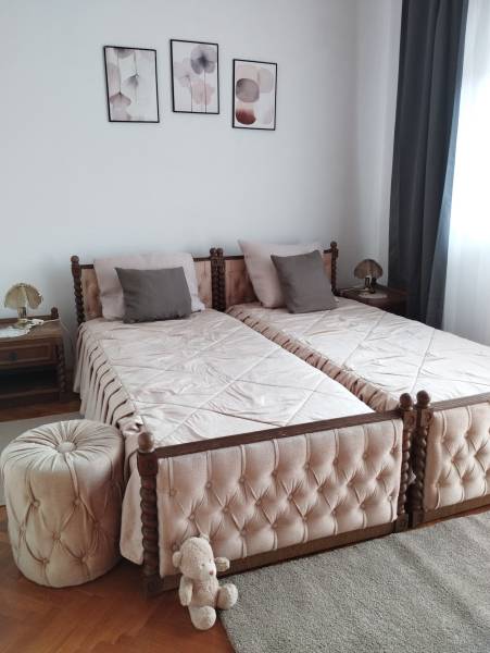 Eladóvá vált Zircen egy 985-es telken álló, 1985-ben épült kétszintes, közel 200nm-es kétgenerációs családiház. A bejárat az udvar felöli 34nm-es teraszról nyílik, amin át belépünk az előtérbe. Ezen a szinten kapott helyet a konyha, egy szoba, zuhanyzós fürdőszoba+wc,és az impozáns méretű (40nm!!) nappali. A teraszról közelíthető meg a kazánház is, ahol a lakás melegéért felelelős kondenzációs gázkazán és a gázbojler van, egy tároló helyiség, valamint innen is át lehet menni a szekcionált kapuval ellátott garázsba. A felső szinten teljes értékű lakás lett kialakítva négy nagyméretű szobával, közlekedővel, konyha-étketővel, kádas-tusolós fürdőszoba, külön wc-vel, valamint egy tároló helyiséggel. A két kertre néző szobából külön erkélyek nyílnak. Lehetőség van a lakótér további bővítésére a tetőtérben is, az ide felvezető kényelmes lépcső már elkészült.A ház tökéletes statikai állapotban van, 2000-től folyamatosan korszerűsített és igényesen karbantartott. Minden nyílászáró hőszigetelt műanyag. A fűtés radiátoros hőleadással történik, de a kellemes hőérzetet segíti még két szép cserépkályha is. A körbekerített telek, mérete miatt lehetőséget ad a tulajdonosnak hobbikertészkedésre, pihenésre, baráti összejövetelekre.A kertben alápincézett melléképület is áll, ami használható nyárikonyhaként, vagy szerszámtárolóként is.Az ingatlan tulajdonságaiból adódóan alkalmas lehet vállalkozásra is akár vendégházként, irodaházként, vagy kisebb lakások kialakítására.Amennyiben hirdetésem felkeltette érdeklődését, keressen bizalommal a megadott elérhetőségeken!Az ingatlan előzetes egyeztetés után megtekinthető!Az ingatlanról videót is készítettünk, tekintse meg weboldalunkon! Regisztrációs szám: H496666Irodánk teljes körű HITEL-, BABAVÁRÓ és CSOK ügyintézéssel, biztosítással, energetikai tanúsítvány készítésével, valamint megbízható ügyvédi háttérrel segíti Ügyfeleit.eladó / Bakony / Zirc/ ház /kétgenerációs
