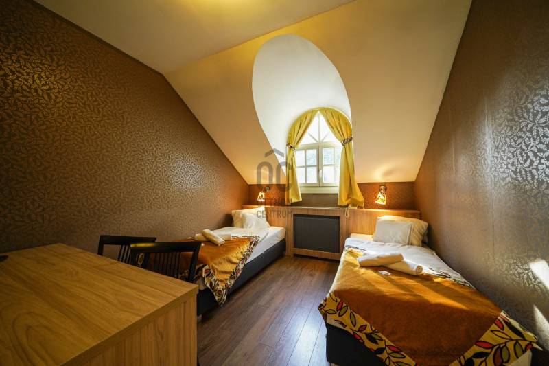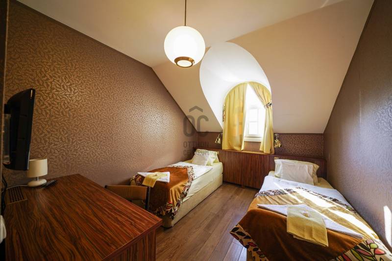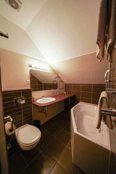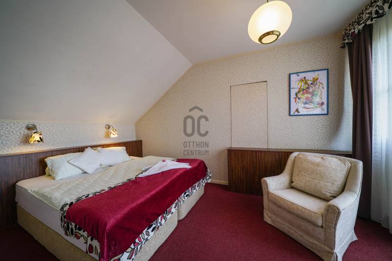 Leányfalu szívében, Pest vármegyében, egy kivételes lehetőség várja azokat a vállalkozásokat, akik egy használt ingatlant keresnek, amely nem csupán a jelenlegi igényeknek, hanem a jövőbeli terveiknek is maximálisan megfelelhet.Az ingatlan alapterülete 695 négyzetméter, míg a telek mérete 2168 négyzetméter, amely bőséges teret biztosít a kreatív elképzelések megvalósításához.A ház 13 szobával és 13 fürdőszobával, továbbá két kétszobás lakosztállyal rendelkezik,így ideális választás lehet akár szálláshely, irodaház, vagy más kereskedelmi célú ingatlan kialakításához.A jó állapotú ingatlan modern gázfűtési rendszerrel, hőszivattyúval és napelemekkel van ellátva, amely biztosítja a komfortos környezetet a vendégek és az alkalmazottak számára egyaránt.A panorámás elhelyezkedés lehetőséget nyújt arra, hogy a mindennapi munka mellett a természet szépségét is élvezhessék, hiszen a környék csendes, nyugodt, és biztonságos.Az ingatlan elhelyezkedése nem csupán a természeti környezet miatt vonzó, hanem a közlekedési lehetőségek szempontjából is. Leányfalu jól megközelíthető autóval, és a közeli településekhez viszonyítva kedvező tömegközlekedési kapcsolatokkal is rendelkezik, így Budapest is könnyedén elérhető.A zöldövezeti környezet és a csendes utcák ideális feltételeket biztosítanak a vállalkozások számára, akik a nyugalomra és a professzionális munkakörnyezetre vágynak.Amennyiben saját használatú ingatlant keres, mely méreteivel és impozáns lehetőségeivel a piacon szinte egyedülálló, jöjjön és nézze meg, szeressen bele…Két tárgyaló, télikert, recepció, étterem, konyha található a földszinten, az alagsori részben jakuzzi és két infraszauna lett kialakítva.Hatalmas, fedett terasz, cca 10 autó beállására alkalmas parkoló is rendelkezésre áll.Az emeleti szinten lévő szobák könnyedén alakíthatóak, akár egy-egy hatalmas hálószoba, külön fürdővel és WC-vel, illetve több vendégszoba is kialakítható.Itt csak a fantáziája tud határt szabni a lehetőségeknek.Komoly szándékkal, komoly lehetőségek...