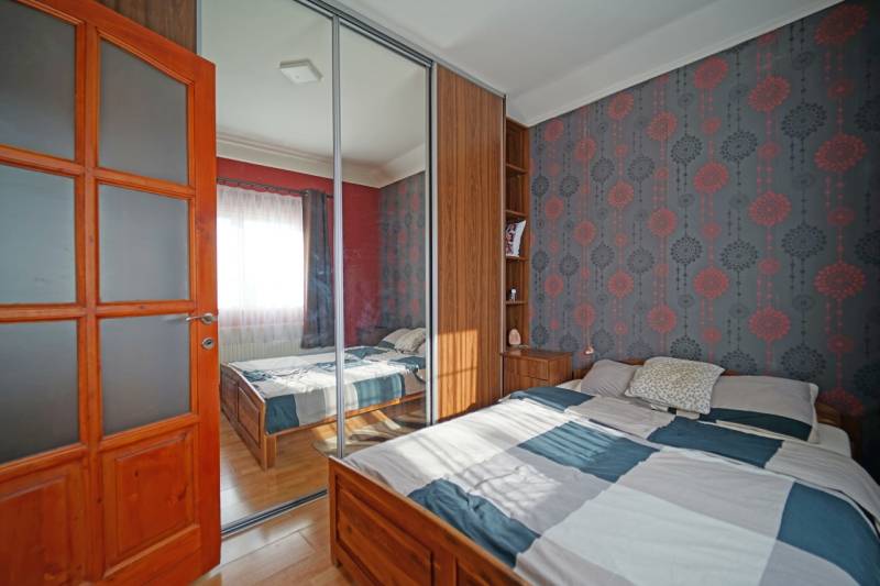 Aszódon a Béke utcába 8. szám alatt 381 m2-es összközműves telken eladó egy panorámás, három generációs tégla építésű, kétszintes családi ház.Az ingatlant 2006-ban újították fel, dryvit szigeteléssel lett ellátva, nyílászárói fa és műanyag thermo kivitelűek. Fűtését és meleg víz ellátását 2017-ben korszerűsített 2db kondenzációs kombi gázkazán látja el.A felső lakás 136 m2-es, ami magába foglalja a két fűtött garázst is (19,4, 25,4m2), melyek elektromos garázsajtóval lettek ellátva. Az 54m2-es nappaliból gyönyörű panoráma látható a 15 m2-es terasz irányába. A 9,92 m2-es hálószoba is panorámás kilátással rendelkezik. További két szoba található ezen a szinten és egy igényes anyagokkal felújított fürdőszoba is. Az alsó szinten két lakás helyezkedik el. A nagyobbik (76m2)szintén panorámás kilátással rendelkezik. Itt 32,6 m2-es amerikai konyhás nappali és két nagy szoba (15,2m2, 23,2m2) és egy 5 m2-es fürdőszoba lett kialakítva.A harmadik lakás 45,3 m2-es. Itt 17 m2-es a nappali 8,4m2-es részben egybenyitott konyhával, 10 m2-es szoba és közlekedő és egy 7m2-es fürdőszoba taláható!Számos beépített bútor és a három konyha is a vételár részét képezik.A közművek almérőkkel rendelkeznek. A kertben a beton burkolatú udvar rész alatt 30m2 tárolásra alkamas helyiség van. Amennyiben hirdetésem felkeltette az érdeklődését vagy egyéb információra van szüksége ,hívjon bizalommal!