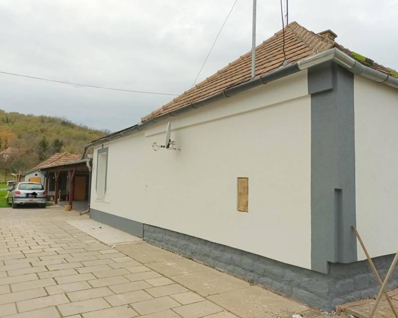 A Balatontól alig 35 km-re, Zalabér településen kínálom megvételre ezt a felújított, 127 nm-es családi házat.Az ingatlanban 3 szoba, hatalmas, 32 nm-es nappali-étkező, konyha, fürdőszoba, külön Wc-kézmosó, közlekedő, előszoba, kamra helyiségek találhatóak.Az elmúlt években az épület felújításra került, külső falszigetelést, színezést is kapott. A villamos-, vízvezeték-, és szennyvízhálózat teljesen megújult, a tető cserép héjazata átvizsgálásra került, a sérült darabokat cserélték. Hőszigetelt műanyag nyílászárók lettek beépítve, az ablakokat redőnyökkel szerelték fel.A szobákba parketta és laminált padlóburkolat került, a többi helyiségben járólap található. Az otthon melegét jelenleg vegyes tüzelésű kazán, a hőleadást új radiátorok biztosítják, de a gázcsonk is telken belül található.Az 1 158 nm-es telken található házhoz tartozik egy hatalmas, fedett, 60 nm-es terasz, több tároló helyiség is. Az udvaron ásott kút is fellelhető, a kertben veteményezésre alkalmas terület van. Az udvar szép, rendezett, a környezet csendes, nyugodt.Zalabérnek rendkívül kedvező a földrajzi elhelyezkedése, hiszen csodaszép környezetben, Hévíztől 33 km-re, Keszthelytől és a Balatontól alig 35 km-re, Sümegtől 23 km-re, a Szajki-tavaktól 16 km-re, Zalaszentgrót városától 6 km-re, Zalaegerszeg városától pedig 25 km-re található.A települést szőlőhegyek és erdők veszik körül. Az ár irányár! Jöjjön el, nézze meg és tegyen rá ajánlatot!Amennyiben az ingatlan elnyerte a tetszését, hívjon bizalommal és megtekintésre időpontot egyeztetünk!Szolgáltatásaink körében szakszerű tanácsadással, bank-semleges hitel-ügyintézéssel és kedvező díjszabású ügyvéddel nyújtunk segítséget!