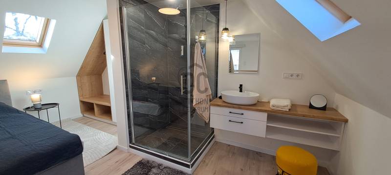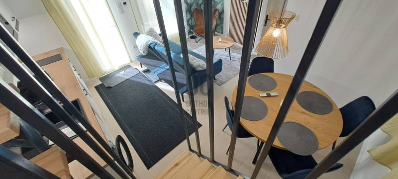 Tisztelt Érdeklődő!Ha Ön is a nyugalmat és a természet közelségét keresi, miközben befektetésben is gondolkodik, akkor ez a Makó, Maros-parti üdülősorán elhelyezkedő, felújított nyaraló apartman tökéletes választás!A 384 m²-es osztatlan közös tulajdonú telken található tetőtér beépítéses tégla iker apartman 2-es lakása 2 szobával, 40 négyzetméteres alapterülettel rendelkezik, így akár a család, baráti társaság vagy vendégek fogadására is ideális. A nappali – konyha a földszinten, míg a háló és a fürdő a tetőtérben került kialakításra. A tágas belső terek modern és igényes kialakításúak: a konyha és nappali járólappal burkolt, míg a hálószoba vízálló laminált padlót kapott A komfortot tovább növeli, hogy a hálószobában saját mosdó és tuskabin található. A WC a földszinten kapott helyet.A ház kívül-belül felújított, korszerű műszaki megoldásokkal felszerelt. Az elektromos padlófűtés és az okos Ariston bojler gondoskodik a kellemes hőmérsékletről, illetve a melegvízről. A padlófűtés wifin keresztül is szabályozható. A hőszigetelt műanyag nyílászárók, a tetőtér kőzetgyapot szigetelése és az épület külső hőszigetelése biztosítják az energiatakarékosságot és a hosszú távú fenntarthatóságot. A közművek: elektromos áram 3x20A, jelenleg közös a vízóra a 1-es lakással, de külön körön a két lakás, előkészítve almérők felszerelésére. Szennyvíz gyűjtése 1000 literes tartályban Klíma előkészítés, tv antenna előkészítés, illetve már telepített kamera az utcafronton, mely internetről vezérelhető.A Maros-part mindössze 200 méterre található, a városi strand, a kalandpart és a lombkoronasétány szinte karnyújtásnyira van. A városközpont pedig autóval 7 perc, kerékpárral 10 perc, gyalogosan 35- 40 perces sétával elérhető.Az apartman teljes berendezéssel kerül átadásra, így azonnal birtokba vehető. A rendezett kertben a pihenést szolgálja majd egy leendő közös szauna, melynek az elektromos előkészítése megtörtént. Parkolás közvetlenül az apartman előtt biztosított.Akár saját nyaralóként, akár befektetési célra keres ingatlant, ez a lehetőség ritkaság a piacon. Ne maradjon le róla! A két apartman egyben is megvásárolható, 54,9 MFt-os áron.Érdeklődjön most és tekintse meg személyesen, akár mindkét lakást!Makóról bővebben itt: http://mako.hu/makoi-seta/Legyen tisztában pénzügyeivel, mielőtt elkötelezi magát! Ebben díjmentesen az Ön rendelkezésére áll bankfüggetlen hitelközvetítőnk.Vevőinket profi és kedvező díjazású ügyvédi háttérrel is segítjük a szerződéskötés során.Az ingatlanról rövid bemutató videó is készült. Ha ezt a hirdetést az Otthon Centrum weboldalán nézi, akkor a videó azonnal indítható a képgaléria elején. Ha egy másik weboldalon találta ezt a hirdetést, kérem, nyissa meg az Otthon Centrum weboldalát, kattintson a „Regisztrációs szám keresése” menü pontra, és írja be ezt a regisztrációs számot a keresőbe: NY012373 Itt meg tudja tekinteni az ingatlanról készült videót és még több képet, vagy írjon nekem, és szívesen elküldöm a felvételt, képeket.#eladoingatlan #nyaralo #befektetes #otthoncentrum #modernotthon #pihenes #termeszetkozelben #okosotthon #ingatlanpiac #ocmako #kikapcsolodas #dreamhome #otthoncentrummako #veledmindenlepesnel #almokatepitunk #bluecottage #marospartiapartman #oc #biztositas #hitel