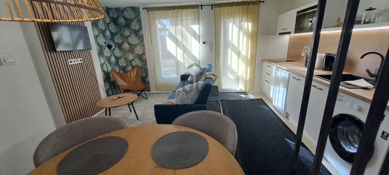 Tisztelt Érdeklődő!Ha Ön is a nyugalmat és a természet közelségét keresi, miközben befektetésben is gondolkodik, akkor ez a Makó, Maros-parti üdülősorán elhelyezkedő, felújított nyaraló apartman tökéletes választás!A 384 m²-es osztatlan közös tulajdonú telken található tetőtér beépítéses tégla iker apartman 1-es lakása 2 szobával, 40 négyzetméteres alapterülettel rendelkezik, így akár a család, baráti társaság vagy vendégek fogadására is ideális. A nappali – konyha a földszinten, míg a háló és a fürdő a tetőtérben került kialakításra. A tágas belső terek modern és igényes kialakításúak: a konyha és nappali járólappal burkolt, míg a hálószoba vízálló laminált padlót kapott A komfortot tovább növeli, hogy a hálószobában saját mosdó és tuskabin található. A WC a földszinten kapott helyet.A ház kívül-belül felújított, korszerű műszaki megoldásokkal felszerelt. Az elektromos padlófűtés és az okos Ariston bojler gondoskodik a kellemes hőmérsékletről, illetve a melegvízről. A padlófűtés wifin keresztül is szabályozható. A hőszigetelt műanyag nyílászárók, a tetőtér kőzetgyapot szigetelése és az épület külső hőszigetelése biztosítják az energiatakarékosságot és a hosszú távú fenntarthatóságot. A közművek: elektromos áram 3x20A, jelenleg közös a vízóra a 2-es lakással, de külön körön a két lakás, előkészítve almérők felszerelésére. Szennyvíz gyűjtése 1000 literes tartályban Klíma előkészítés, tv antenna előkészítés, illetve már telepített kamera az utcafronton, mely internetről vezérelhető.A Maros-part mindössze 200 méterre található, a városi strand, a kalandpart és a lombkoronasétány szinte karnyújtásnyira van. A városközpont pedig autóval 7 perc, kerékpárral 10 perc, gyalogosan 35- 40 perces sétával elérhető.Az apartman teljes berendezéssel kerül átadásra, így azonnal birtokba vehető. A rendezett kertben a pihenést szolgálja majd egy leendő közös szauna, melynek az elektromos előkészítése megtörtént. Parkolás közvetlenül az apartman előtt biztosított.Akár saját nyaralóként, akár befektetési célra keres ingatlant, ez a lehetőség ritkaság a piacon. Ne maradjon le róla! A két apartman egyben is megvásárolható, 54,9 MFt-os áron. Érdeklődjön most és tekintse meg személyesen, akár mindkét lakást!Makóról bővebben itt: http://mako.hu/makoi-seta/Legyen tisztában pénzügyeivel, mielőtt elkötelezi magát! Ebben díjmentesen az Ön rendelkezésére áll bankfüggetlen hitelközvetítőnk.Vevőinket profi és kedvező díjazású ügyvédi háttérrel is segítjük a szerződéskötés során.Az ingatlanról rövid bemutató videó is készült. Ha ezt a hirdetést az Otthon Centrum weboldalán nézi, akkor a videó azonnal indítható a képgaléria elején. Ha egy másik weboldalon találta ezt a hirdetést, kérem, nyissa meg az Otthon Centrum weboldalát, kattintson a „Regisztrációs szám keresése” menü pontra, és írja be ezt a regisztrációs számot a keresőbe: NY012371 Itt meg tudja tekinteni az ingatlanról készült videót és még több képet, vagy írjon nekem, és szívesen elküldöm a felvételt, képeket.#eladoingatlan #nyaralo #befektetes #otthoncentrum #modernotthon #pihenes #termeszetkozelben #okosotthon #ingatlanpiac #ocmako #kikapcsolodas #dreamhome #otthoncentrummako #veledmindenlepesnel #almokatepitunk #bluecottage #marospartiapartman #oc #biztositas #hitel