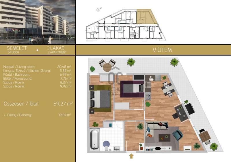 Energiatakarékos, 2026 végén költözhető újépítésű lakások.Budapest XIX. kerületének kiemelkedő közlekedési pontján épülő, modern lakónegyed olyan új közösségi teret hoz létre, ahol minden generáció megtalálja a helyét.Metró, vonat és több buszjárat, biztosítja, hogy nagyon rövid idő alatt Budapest centrumába, vagy a Liszt Ferenc repülőtérre jussanak az itt élők.Az épülő projekt lakásai alkalmasak, rövid és hosszú távú kiadásra, több generáció egymás mellett élésére.A lakóépület komplexum több ütemben épül fel, jelenleg az V. ütem építése zajlik.Az épületegyüttesben összesen 350 lakás készül, ebből az I. ütemben 98 db., a II. ütemben 118 db., az V. ütemben 58 db épül meg.Az I. ütem lakásai 2024 év végén átadásra kerültek. A II. ütem lakásai 2026. elején kerülnek átadásra.A lakások és az épületek között zárt átriumos folyosókon keresztül biztosított az átjárás.A földszint + 8 emelet magas épületet elegáns, fákkal, cserjékkel tarkított terek veszik körül.A lakások lépcsőházanként két-két lifttel közelíthetőek meg.A lakások típusai: Stúdió, 1 szobás, 2 szobás, 3 szobásMinden lakástípus elérhető jelenleg.A lakások jellemzői:Minden lakás rendelkezik erkéllyel vagy terasszal, és néhány exkluzív lakás pedig saját zöldrésszel.•A lakások hűtése és fűtése alacsony energia igényű, hőszivattyús rendszerű, mennyezeti technológiával biztosított•Tágas szobák és erkélyek, nagy, nyitott terű nappalirészek•Konyha, amely külön van, de mégis a nappali része•Nagy üvegfelületek, hőszigetelt üvegezésű műanyag nyílászárók formájában, amelyek sok természetes fényt biztosítanak•A szobákban nedvesség és cseppálló laminált padló•Igényes, minőségi kerámia padlók és falburkolatok a fürdőszobákban és WC-kben,•Az apartman típusától függően kádak vagy zuhanyzók állnak rendelkezésre•A közös helyiségek energia igénye napelemes rendszerrel megoldott.A gépkocsik elhelyezésére a teremgarázsban lesz lehetőség a -1 és -2 szinteken, ahol számos különálló és zárható tárolóhelyiség és elektromos töltési lehetőség is kialakításra kerül.Garázs:Méret:11,25nm-18,3nmÁr: 4,85 M Ft- 6,15M FtA jelen adatok tájékoztató jellegűek, ezért a Beruházó (sem a hirdető) azok változásával, vagy bármely attól való eltéréssel kapcsolatban semmilyen kötelezettséget, vagy felelősséget nem vállal.Az alaprajzokon ábrázolt berendezési tárgyak és bútorok, a burkolatok megjelenése nem képezi a szerződés tárgyát. A pontos felszereltségről a műszaki leírásban olvashat bővebben.Az aktuális lakáskínálatról és árakról érdeklődjön telefonon!Projekt bemutatásaEnergia takarékos újépítésű lakások.A II. ütem lakásai 2026 elején költözhetőek.Az V. ütem lakásai 2027 elején költözhetőek.Budapest XIX. kerületének kiemelkedő közlekedési pontján épülő, modern lakónegyed olyan új közösségi teret hoz létre, ahol minden generáció megtalálja a helyét.Metró, vonat és több buszjárat, biztosítja, hogy nagyon rövid idő alatt Budapest centrumába, vagy a Liszt Ferenc repülőtérre jussanak az itt élők.Az épülő projekt lakásai alkalmasak, rövid és hosszú távú kiadásra, több generáció egymás mellett élésére.A lakóépület komplexum több ütemben épül fel, jelenleg II. és az V. ütem építése zajlik.Az épületegyüttesben összesen 350 lakás készül, ebből az I. ütemben 98 db., a II. ütemben 118 db., az V. ütemben 58 db épül meg.Az I. ütem lakásait 2024 év végén a lakók birtokba vették. A lakások és az épületek között zárt átriumos folyosókon keresztül biztosított az átjárás.A földszint + 8 emelet magas épületet elegáns, fákkal, cserjékkel tarkított terek veszik körül.A lakások lépcsőházanként két-két lifttel közelíthetőek meg.A lakások típusai: Stúdió, 1 szobás, 2 szobás, 3 szobás, 4 szobásMinden lakástípus elérhető jelenleg.A lakások jellemzői: Minden lakás rendelkezik erkéllyel vagy terasszal, és néhány exkluzív lakás pedig saját zöldrésszel.•A lakások hűtése és fűtése alacsony energia igényű, hőszivattyús rendszerű, mennyezeti technológiával biztosított•Tágas szobák és erkélyek, nagy, nyitott terű nappalirészek•Konyha, amely külön van, de mégis a nappali része•Nagy üvegfelületek, hőszigetelt üvegezésű műanyag nyílászárók formájában, amelyek sok természetes fényt biztosítanak•A szobákban nedvesség és cseppálló laminált padló•Igényes, minőségi kerámia padlók és falburkolatok a fürdőszobákban és WC-kben, •Az apartman típusától függően kádak vagy zuhanyzók állnak rendelkezésre•A közös helyiségek energia igénye napelemes rendszerrel megoldott.A gépkocsik elhelyezésére a teremgarázsban lesz lehetőség a -1 és -2 szinteken, ahol számos különálló és zárható tárolóhelyiség és elektromos töltési lehetőség is kialakításra kerül.Garázs: Méret:11,5nm-18,25nmAz árakról érdeklődjön az értékesítőnél.Tároló:Méret 4,2nm-14,9nmAz árakról érdeklődjön az értékesítőnél.A jelen adatok tájékoztató jellegűek, ezért a Beruházó (sem a hirdető) azok változásával, vagy bármely attól való eltéréssel kapcsolatban semmilyen kötelezettséget, vagy felelősséget nem vállal.Az alaprajazokon ábrázolt berendezési tárgyak és bútorok, a burkolatok megjelenése nem képezi a szerződés tárgyát. A pontos felszereltségről a műszaki leírásban olvashat bővebben.Az aktuális lakáskínálatról és árakról érdeklődjön telefonon!