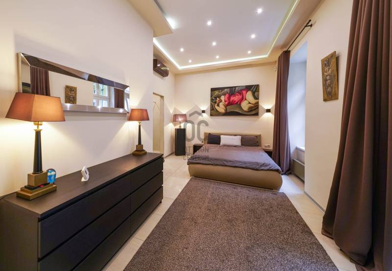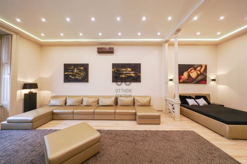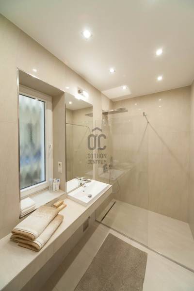 LUXUS A BELVÁROS KÖZEPÉN!ÉLJEN IGÉNYES KÖRNYEZETBENNAGYPOLGÁRI STÍLUSBAN,DE OLYAN GONDTALANUL MINTHAEGY NÍVÓS SZÁLLODÁBAN ÉLNE,MERT IDE CSAK A BÖRÖNDJÉT KELL HOZNIA,ÉS CSAK KÖLTÖZNIE KELL! Budapest elit belvárosának igazi, élettel teli központjában, a Sas utcában, mindössze 130 méterre a Bazilikától kínálom megvételre ezt a nevesített, gyönyörű műemlék épületben található, újszerű, 102 m2-es, nappali + 2 szobássá alakított, 2 fürdőszobás, luxusingatlant, mely teljesen berendezve, gépesítve várja kivételes, magas igényű új tulajdonosát! A műemlékké nyilvánított a Lechner Ödön által tervezett, 3 emeletes, szép polgári épület neoreneszánsz stílusban, 1870-ben épült. A lakás a 2. emeleten található, belső tereinek kialakítása, és berendezése egy remekül átgondolt koncepció eredményeként született meg. Egy vadonatúj, minden igényt kielégítő luxust megálmodva, teljes körűen újították fel és alakították át, műszakilag és esztétikailag is a jelenlegi tulajdonosok.A lakásban MINDEN: a bútorok, a gépesítés, a dekoráció, a burkolatok és a gépészet is olyan felső kategóriás prémium minőségű anyagok felhasználásával készült, melyek az egymáshoz illő jellemzőik alapján egy exkluzív, modern, kényelmes otthon hangulatát közvetítik, de ugyanakkor az igényes nagypolgári élet modernizált jegyeit is magukon hordozzák. A fűtés energiatakarékos, nagy teljesítményű kondenzációs kazánnal biztosított, a meleg burkolatú helyiségekben radiátoros, míg a hidegburkolatúakban padlófűtéses hőleadással. A nyári napokra jellemző meleget a szobákban halk működésű, inverteres (hűtő/fűtő) klímákkal enyhíthetjük. A csendes utcára néző, 32 m2-es nappalijában (a lakásban található eredeti, műemlék oszlopokat design elemként megtartva, azoknak térelválasztás szempontjából is ötletesen funkciót adva) olyan speciális tér lett kialakítva, mely egy légterűen, de mégis az elválaszthatóság érzetét keltve, dolgozó vagy háló szobai területnek is használható úgy, hogy napközben a nappali komplex kiterjesztéseként is funkcionálhat. Hipermodern, mindennel berendezett és prémium kategóriás gépekkel (mint mosógép, szárítógép, mosogatógép, főzőlap, sütő, beépített mikró, valamint hűtő és elszívó) teljesen felszerelt, nagyméretű, 27 m2-es, étkezős konyhája, egy gyönyörű, széles tolóajtón át közelíthető meg a nappaliból. Az elhúzott ajtó és a konyha tágas méretei a világos, nagyméretű ablakkal, a „szinte minden egylégterű” érzést kelti bennünk, ha végigtekintünk a lakáson. Konyhája mindemellett több további hasznos funkciót is ellát, mivel egylégterűen lett kialakítva, (de mégis a szeparáltság érzését keltve) a biztonságos üvegezéssel ellátott bejárati ajtón át is fényt kapó, világos előtérrel, továbbá egy mindent elnyelő, plafonig érő egyedi gardróbszekrénysor is praktikusan beépítésre került. Innen, a konyhából nyílóan közelíthető meg (a vendégek számára is használható), az egyik, modern, 8,5 m2-es, világos, ablakos, épített zuhanyzós fürdőszoba a hozzá tartozó toilettel. A nyugodt, zárt, belső udvarra néző, tekintélyes méretű (20 m2-es), szeparált hálószobából pedig egy további + 9 m2-es, ugyancsak épített zuhanyzóval és wc-vel is ellátott, nagy ablakkal is rendelkező, így kiválóan szellőztethető, privát fürdőszoba is nyílik. Az ingatlan Infrastrukturális környezetét a hamisítatlan világvárosi hangulat, nívós éttermek, szállodák, kávézók, múzeumok, színházak, kulturális és pénzügyi intézmények, valamint a világ divatmárkáit képviselő üzletek felsorolhatatlan száma jellemzi, melyek mindegyike gyorsan, ill. néhány perc sétával elérhető, mint a Deák tér, Fashion street, Vörösmarty tér, Váci utca, Erzsébet tér vagy az Andrássy út és természetesen a Bazilika is! A lakás rugalmasan megtekinthető!Hívhat a hét bármely napján! További fontos információ akár befektetők részére is, hogy ugyanitt közvetlenül ezen lakás mellett a 2. emeleten, ugyancsak eladó egy minőségileg és igényesség szempontjából egyenrangú, teljesen berendezett, gépesített, 62 m2-es, hasonló lakás is, mellyel kapcsolatban további információkat tudok adni, vagy az együttes megtekintésük is lehetséges!