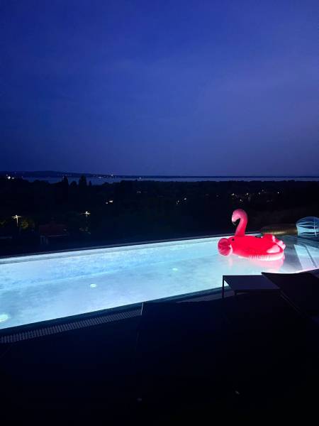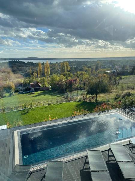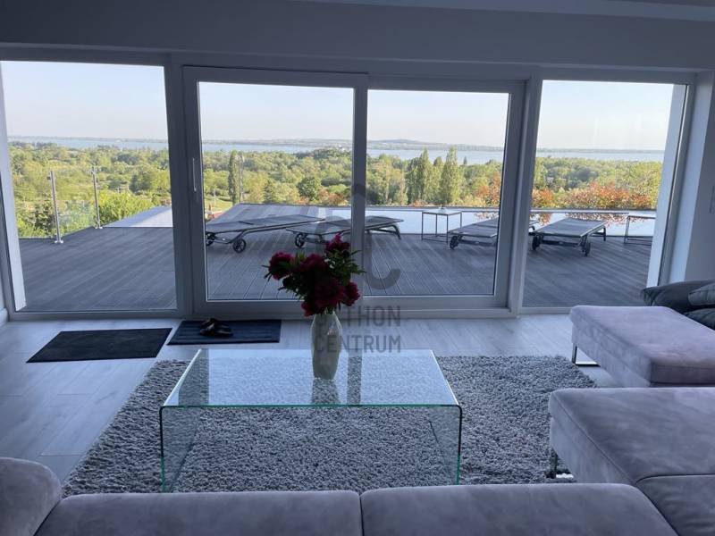 Lélegzetelállító panoráma, hatalmas terek, modern elegancia- ezek jellemzik ezt a gyönyörű ,újszerű örök panorámás villát. Az ingatlan 260 négyzetméteres alapterületével és 1080 négyzetméteres telek méretével ideális választás lehet családok, de akár befektetési célokra is. A házban öt tágas szoba és három fürdőszoba található, amely biztosítja a kényelmet és a magánszférát minden lakó számára. Az ingatlanhoz tartozó 150 négyzetméteres teraszról lenyűgöző panoráma nyílik a Balatonra, amelyet a nagy méretű, fűthető feszitett vizű medencéből csodálhat, tökéletes helyszín a pihenésre és a baráti összejövetelekre . A ház fűtése megújuló energiaforrásokkal működik, így nemcsak környezetbarát megoldást kínál, hanem a rezsiköltségeket is kedvezően befolyásolja. A klímaberendezés pedig a nyári hónapokban garantálja a kellemes hőmérsékletet. Adottságok- Örök Balatoni panoráma- Újszerű állapot- Vilagos terek- 4 hálószoba fürdőszobával- 45m2 konyha- ebédlő-nappali- fűthető medence- pezsgő fürdő- kert pázsittal- 150m2 terasz- riasztó- napelem Vonyarcvashegy nem csupán egy gyönyörű település, hanem egy igazi ékszerdoboz a Balaton partján. Az ingatlan elhelyezkedésének köszönhetően könnyedén hozzáférhet a környék számos szolgáltatásához, beleértve a helyi boltokat, éttermeket és szabadidős lehetőségeket. A település csendes, biztonságos környezete ideális otthont biztosít családoknak, míg a közeli Balaton partja számos vízi sportolási lehetőséget kínál. A közlekedési lehetőségek is kiemelkedőek: autóval könnyen megközelíthető a közeli városok, a főbb települések és látnivalók könnyen elérhetőek. A környék széleskörű lehetőségeket kínál a természet szerelmeseinek is, hiszen a közeli erdők és túraútvonalak felfedezése új kalandokat ígér. Ez az ingatlan nem csupán egy ház, hanem egy életstílus, amely a nyugalmat és a természet közelségét ötvözi a modern kényelmi megoldásokkal. Ha kérdései lennének vagy szeretné megtekinteni ezt a különleges ingatlant, ne habozzon bizalommal keresni! Az Ön elégedettsége és a legjobb döntés meghozatala érdekében állok rendelkezésére.