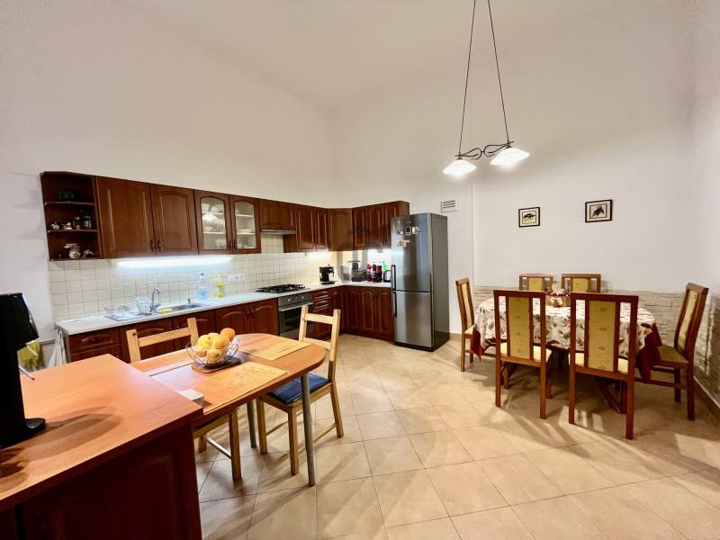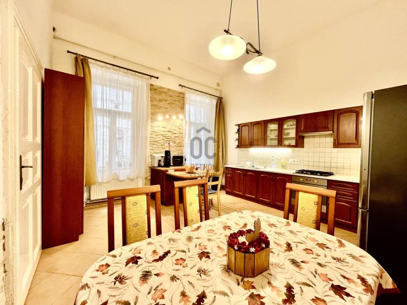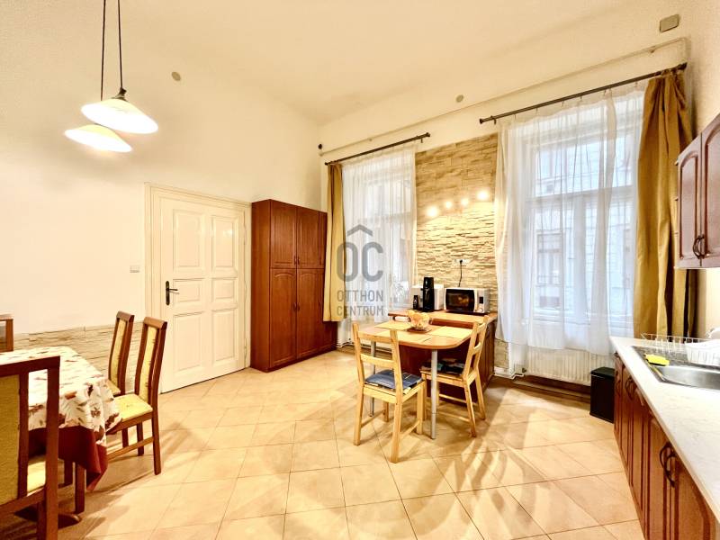 Fedezze fel Budapest egyik legvonzóbb helyén, az Nyugati pályaudvar és az Oktogon között található tágas, körbejárható lakást! Ideális választás otthonnak, irodának vagy befektetésnek!Ez a 114 m²-es, remek elrendezésű lakás a belváros szívében, a VI. Kerületben várja új tulajdonosát. A tágas konyha-étkező (20 m²) modern beépített gázfőzőlappal és hőlégkeveréses sütővel felszerelt, a fürdőszoba és a WC külön helyiségben található, míg a lakás fűtését és meleg víz ellátását korszerű turbós cirkó biztosítja. A lakás teljes gépészeti felújításon esett át, így biztos lehet abban, hogy minden technikai részlet megbízható és energia hatékony. A lakáshoz tartozik egy saját zárt pincerész (7 m2), a pincébe körbe kiépített motoros szellőztető rendszer gondoskodik a folyamatos légcseréről valamint a száraz alagsorról. A közös udvar pedig rendezett, térkövezett és növényekkel díszített. A ház nem körfolyosós, így maximális privát szférát biztosít, ráadásul a társasházat folyamatosan karbantartják: a fő vízvezeték hálózatot kicserélték, és a szennyvízcsatorna-hálózat is teljes körű felújításon esett át.Ne hagyja ki ezt a szuper lehetőséget! A lakás tökéletes választás lehet befektetőknek is, hiszen két lakássá alakítható. A Nyugati pályaudvar és az Oktogon mindössze 5 perc sétára található, a Parlament, Margitsziget és a Városliget is csak pár percre. További információért és megtekintésért keressen minket még ma!