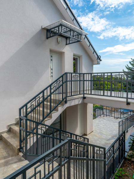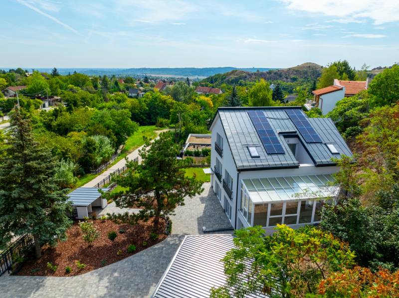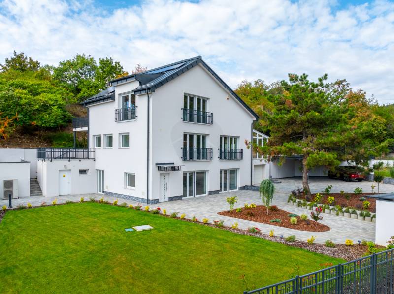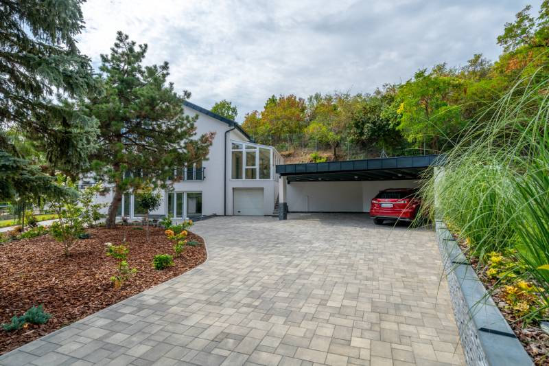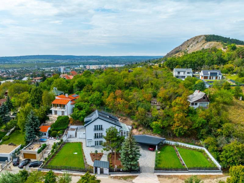 EXKLUZÍV ÖRÖKPANORÁMÁS LUXUSVILLA BUDAÖRS LEGKIEMELKEDŐBB LOKÁCIÓJÁN!!!!!!!!!!!! Fedezze fel ezt a páratlan adottságokkal rendelkező, háromszintes luxusvillát Budaörs egyik legelőkelőbb részén, a Zengő utcában! Ez a 2023–2024-ben újjáépített, 300 m²-es, hét szobás rezidencia a modern építészet és az időtlen elegancia tökéletes harmóniáját nyújtja. A 1178 m²-es, gondosan parkosított kerttel körülvett ingatlan nem csupán egy otthon, hanem egy életstílus, ahol a kényelem, a kifinomultság és a természet közelsége egyesül.Az ingatlan különlegességei:Három teljesen önálló, exkluzív lakótér – mindhárom szint saját konyhával és fürdőszobával rendelkezik, így ideális többgenerációs családoknak vagy befektetési célra.Lenyűgöző örökpanoráma – a hatalmas ablakokon keresztül páratlan kilátás nyílik a budai hegyekre és a városra, amely minden napot különlegessé varázsol.Magas minőségű anyaghasználat – minden szinten exkluzív gránit padlóburkolat található, amely nemcsak esztétikus, hanem rendkívül tartós és könnyen karbantartható.Modern és fenntartható fűtés-hűtés rendszer – energiatakarékos hőszivattyú gondoskodik a téli és nyári komfortérzetről, padlófűtéssel és fan-coil rendszerekkel kombinálva.Intelligens energiafelhasználás – a napelemek napi 7 kWh teljesítménnyel biztosítják a háztartási gépek energiaellátását, miközben az automata öntözőrendszer esővízgyűjtő ciszternákhoz csatlakozik, fenntartható víz felhasználást biztosítva.Prémium kategóriás konyhák – minden szinten teljesen gépesített, beépített konyhabútorokkal felszerelt, exkluzív kivitelezésű főzőterek várják a gasztronómia szerelmeseit.Luxus fürdőszobák – gránitburkolattal, exkluzív szaniterekkel és elegáns kialakítással.Magas szintű biztonság – emeletenként külön riasztórendszer, videós kaputelefon és igényesen kialakított kovácsoltvas utcai kerítés garantálja a zavartalan nyugalmat.Exkluzív pincehelyiség – a földszinti lakáshoz tartozó boltíves, téglaburkolatú borospince tökéletes helyszíne lehet baráti összejöveteleknek vagy borkóstolóknak.A gondosan tervezett kert és kültér:Igényesen parkosított, gyönyörű gyepszőnyeggel, térkőburkolattal és dísznövényekkel kialakított privát kert.Hangulatos napelemes díszkivilágítás, amely különleges atmoszférát teremt az esti órákban.Modern automata öntözőrendszer, amely biztosítja a növényzet frissességét és gondozottságát egész évben.Lokáció és megközelíthetőség:Páratlan elhelyezkedés – csendes, zöldövezeti környezetben, mégis kiváló közlekedési kapcsolatokkal.Autóval: mindössze 19 perc a Széll Kálmán tértől, 5 perc az M7-es autópályától és 3 perc a balatoni főútvonaltól.Tömegközlekedéssel is könnyedén elérhető, így Budapest belvárosa gyorsan és kényelmesen megközelíthető.Kiváló parkolási lehetőségek:1 db házba épített garázs,3 db fedett kocsibeálló.Ez a tehermentes, prémium kategóriás ingatlan nem csupán egy otthon, hanem egy életérzés – egy olyan hely, ahol a természet közelsége, a korszerű technológia és az elegáns dizájn tökéletes egyensúlyban találkozik. Ne hagyja ki ezt az egyedülálló lehetőséget! Lépjen kapcsolatba velünk, és fedezze fel személyesen ezt a varázslatos, exkluzív rezidenciát!