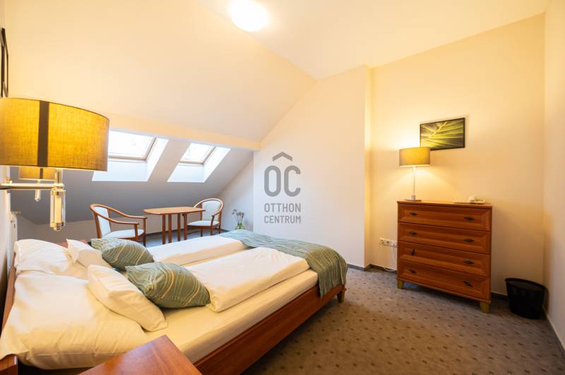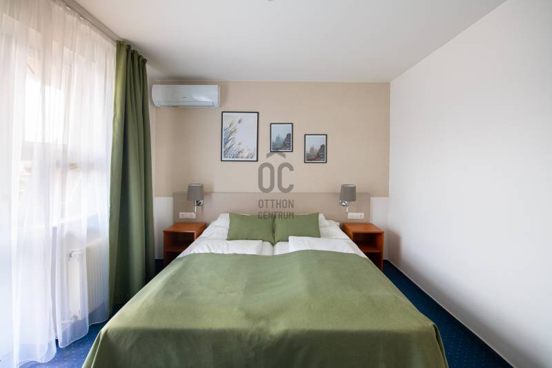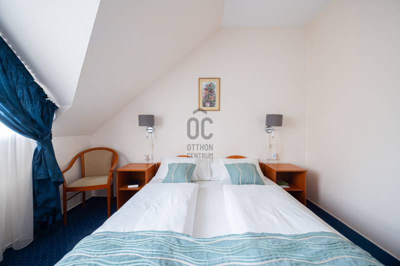 Kiváló befektetési lehetőségű ingatlant kínálunk megvételre! Az ingatlan a Balato-part déli végén, üdülőövezetben, közvetlenül a vízparti, gondozott zöld, füvesített, virágokkal parkosított területen helyezkedik el. A 3451 m2 vízparti teleknek jelenleg 14 %-a beépített (az össz beépíthetőség: 30%)! Az ingatlan étteremként, szállodaként azonnal üzemeltethető, jól bejáratott, a brand ismert. Kiemelkedő adottságainak köszönhetően az ingatlan több más üzleti lehetőséget is rejt magában.A telekehez tartozik egy 796m2 strandfürdő terület is.A hivatalosan 3 csillagosra minősített Hotel több mint 30 éve üzemel, jól bejáratott, sok törzsvendéggel rendelkezik. Rendelkezik külön működési engedéllyel külön a szállodára és külön az étteremre.A Főépületet (a szálloda nagyobbik része) 2001-ben teljesen felújították, a tetőteret beépítették. Az ekkor elnyert formáját igényes, aprólékos újabb és újabb felújításokkal, folyamatos karbantartással nemcsak megóvták, hanem évről-évre fejlesztették is.Az 54 db napelem biztosítja az elektromos energiaellátás jelentős részét. (15 kW) A teljes épület tűzjelzővel kiépített. A fűtést gázkazánok biztosítják, amiket ki tudnak egészíteni a szobákban elhelyezett hűtő-fűtő klímák.A hotel Főépületében 23 szoba, (ebből 2 lakosztály), és 2 apartmanház található, fürdőszobával, WC-vel, kiépített wifi rendszerrel, lapos TV-vel, teljesen felújított lobbyval, recepcióval mely kiválóan alkalmas igényes vendégek fogadására. Saját strandröplabda-pálya, nagy, fáktól árnyas, kamerával felszerelt parkoló, elektromos kapuval várja a vendégeket.A külön működési engedéllyel rendelkező étterem 60 fő, a lobby-bár 20 fő, a nagyméretű terasz 100 fő leültetésére alkalmas. Az étterem-konyha kiszolgálja a saját szállodai és az utcáról betérő vendégeket is. (Reggeli, ebéd, vacsora). A konyha modern felszereléssel, fehér, fekete mosogatóval, (a fehérben mosogatógéppel) hús-, zöldség előkészítő helyiségekkel, raktárral, szociális helyiségekel (személyzeti öltöző, WC, zuhanyzó), a szállítóknak külön zöldség-, hús, szárazáru- és italraktár bejárattal rendelkezik.A Hotel Budapest és Letenye között a 7-es főúton, valamint az M7-es autópályán közelíthető meg, délről pedig az egykor a települést Barccsal (horvát határátkelő) összekötő 68-as főúton érhető el. Vasúton Bp.- Nagykanizsa (Keszthely) fővonalon. A távolsági autóbuszközlekedés is sokrétű, buszmegálló 50 m-re található. 17 km-re található a sármelléki Hévíz-Balaton Airport. A balatoni kerékpárút a hotel előtt halad el. A közelben több gyógyfürdő is található: Hévíz, Zalakaros, Csiszta-fürdő, Marcali.A HIRDETETT IRÁNYÁR NETTÓ ÁR!!!