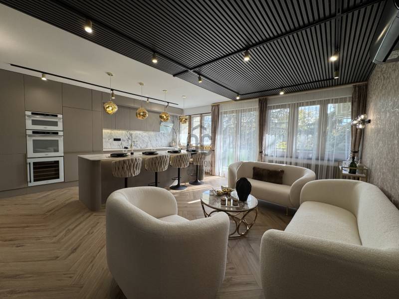 Exkluzív, vadonatúj otthon Rózsadomb szívében – közel a Rózsakerthez!Budapest egyik legkeresettebb részén, a Rózsadombon eladó egy frissen és teljeskörűen felújított, prémium minőségű 66 m²-es lakás+ 8 m²-es erkély - ( +5nm es önálló tárolóval ), amely modern eleganciát és kényelmet kínál. Lakás elrendezése:- Tágas amerikai konyhás nappali- Egy hálószoba - Dolgozó- vagy gardróbszoba- Zuhanyzós és kádas fürdőszoba - Erkély, amely új burkolatot és festést kapott A felújítás és kialakítás prémium minőségű elemei: - Hangszigetelt nyílászárók elektromos redőnnyel és szúnyoghálóval - Tokban nyíló beltéri ajtók a letisztult hatás érdekében - Teljesen új villamos hálózat életvédelmi relével - Új vízhálózat - Gázcirkó fűtés design radiátorokkal egyedi színekben és formákban - 2 db 3,5 kW-os klíma a tökéletes hőmérsékletért - Olasz minőségi hidegburkolatok és vízálló parketta - Design tapéták és falpanelek a különleges atmoszféráért Egyedileg tervezett bútorok és prémium felszereltség A lakás asztalos által méretre szabott, beépített bútorokkal készült: - LED világítással ellátott épített ágyak- Egyedi konyhabútor étkezőasztallal és 4 székkel - Médiabútor a nappaliban - Gardróbszekrények a hálószobákban - L-alakú nagyméretű kanapé - Függönyök és kiegészítők a vételárban Teljes gépesítés: - Beépített hűtő, mosogatógép, sütő, főzőlap, páraelszívó, mikrohullámú sütő- Mosógép és szárítógép - Gránit mosogató Luxus fürdőszoba: Szaunával- Walk-in zuhanyfal - Falsík alatti szerelvények (Grohe termosztátos)- Mosdószekrény, falsík alatti WC tartály Minden helyiségben TV és internet előkészítés, valamint modern világítótestek, rejtett LED-világítások biztosítják a maximális kényelmet és esztétikai élményt. Ez a lakás nem csupán egy ingatlan – hanem egy stílusos, kényelmes, májusban költözhető otthon a Rózsadomb egyik legjobb részén! Érdeklődj most, és lépj be álmaid otthonába!
